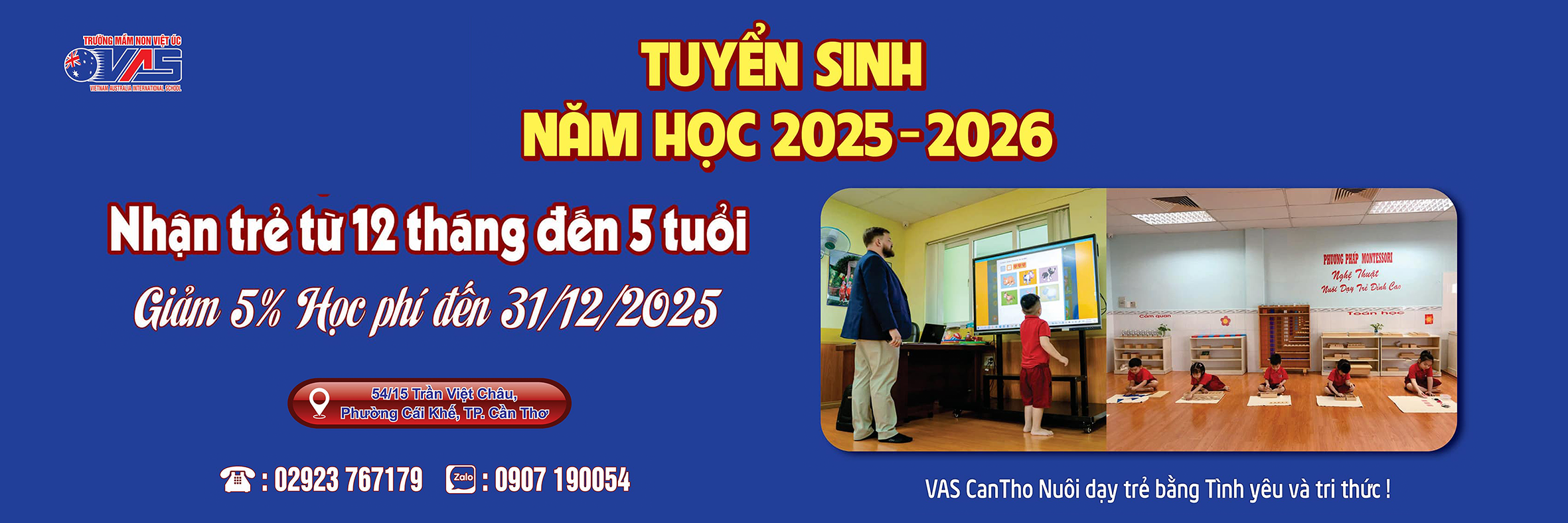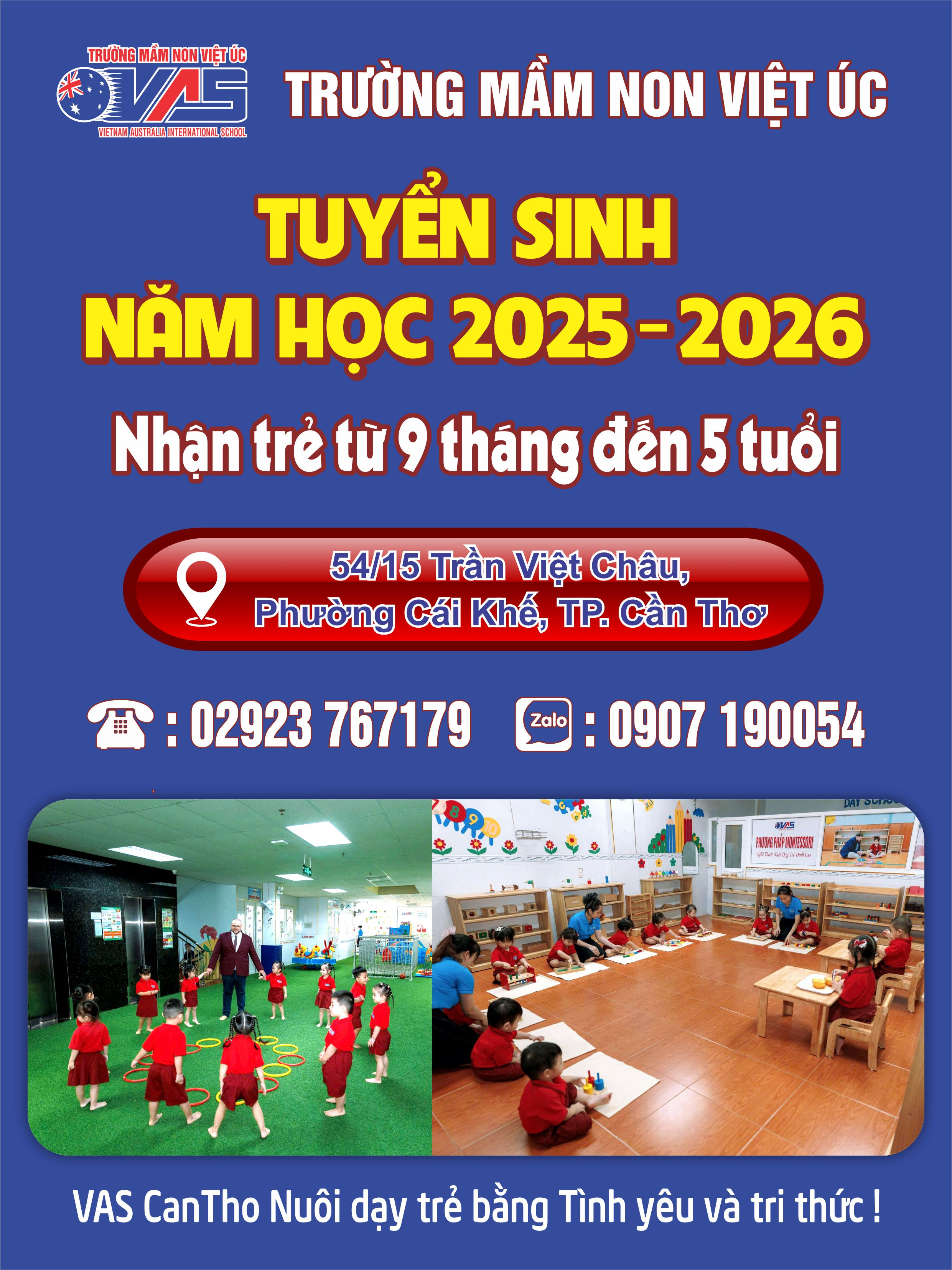 VASchool CanTho chúng tôi đặt mục tiêu cao nhất đó là quý trọng con người, nâng niu và quý mến trẻ thơ; chúng tôi luôn coi trọng việc nuôi dưỡng là ưu tiên hàng đầu, với một chế độ dinh dưỡng tốt nhất để trẻ phát triển một cách toàn diện về trí tuệ, ngôn ngữ, vận động và khả năng nhận thức; Với phương châm “VASchool CanTho là căn nhà lớn của Bé – Cô giáo như mẹ hiền” nơi đây chắc chắn sẽ là địa chỉ tin cậy để Quý phụ huynh gởi gắm niềm tin trong việc nuôi dưỡng thế hệ mầm non, tương lai đất nước, nơi mà các bé tập làm quen với các quan hệ xã hội ban đầu, đó là các bạn học và cô giáo đã tận tâm chăm sóc con em của các bậc phụ huynh, “nơi ươm mầm tinh hoa”.