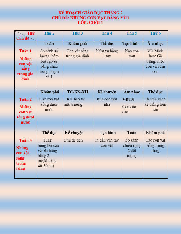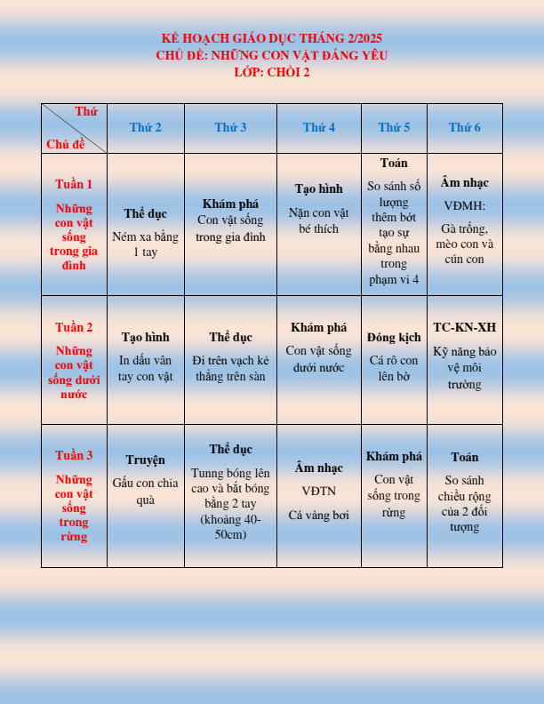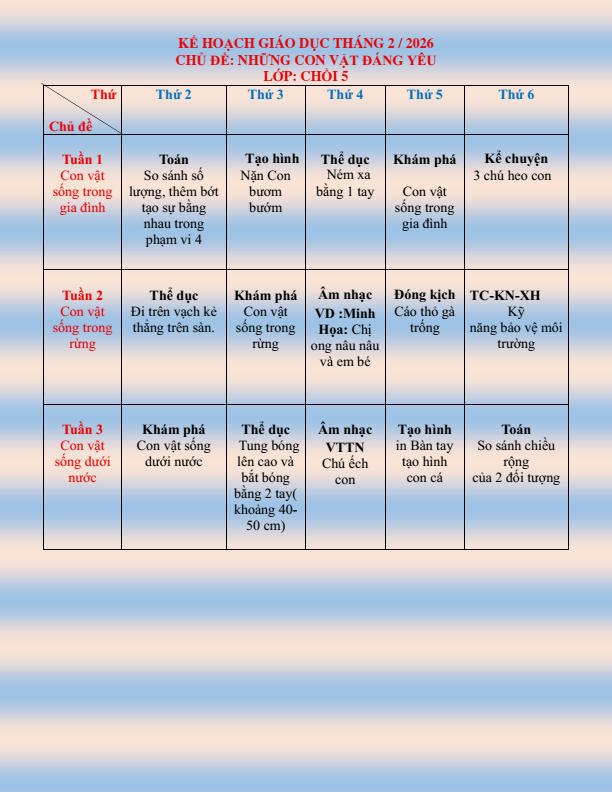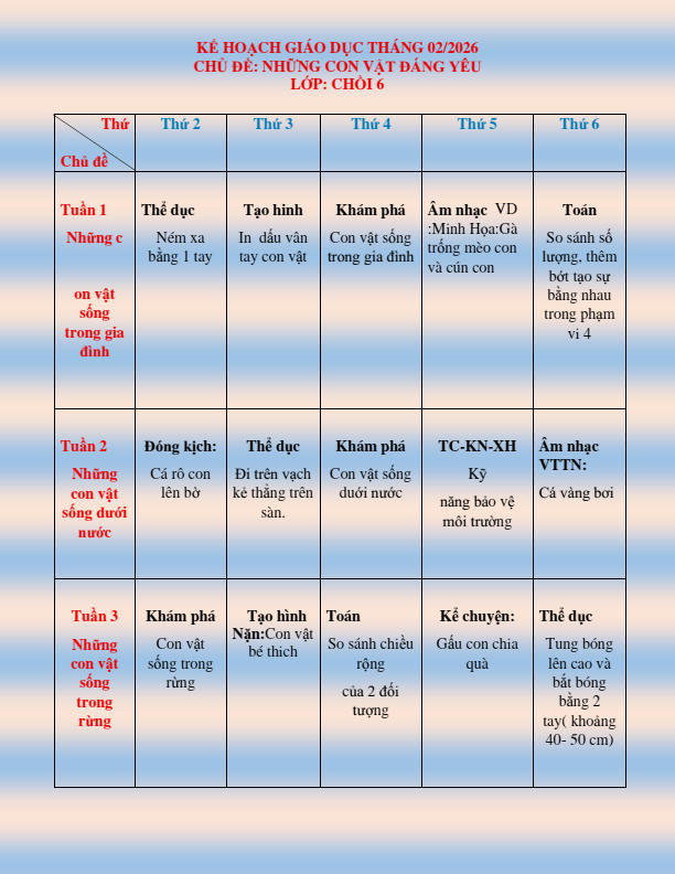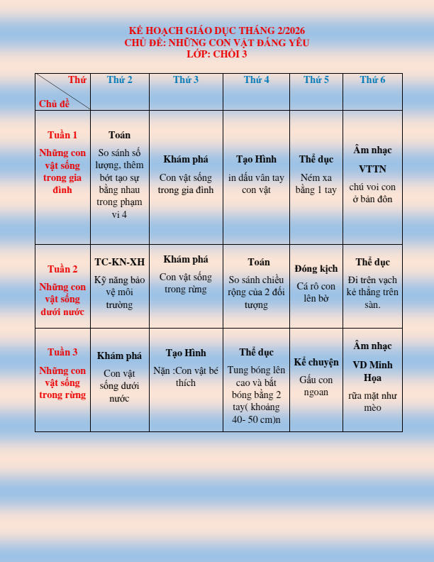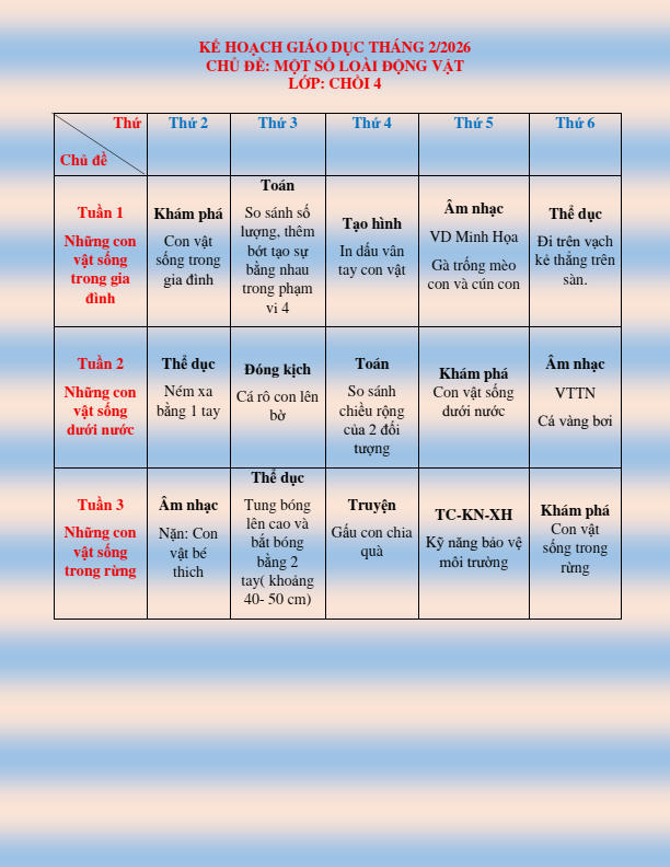 CHƯƠNG TRÌNH HỌC KHỐI CHỒI THÁNG 2.2026