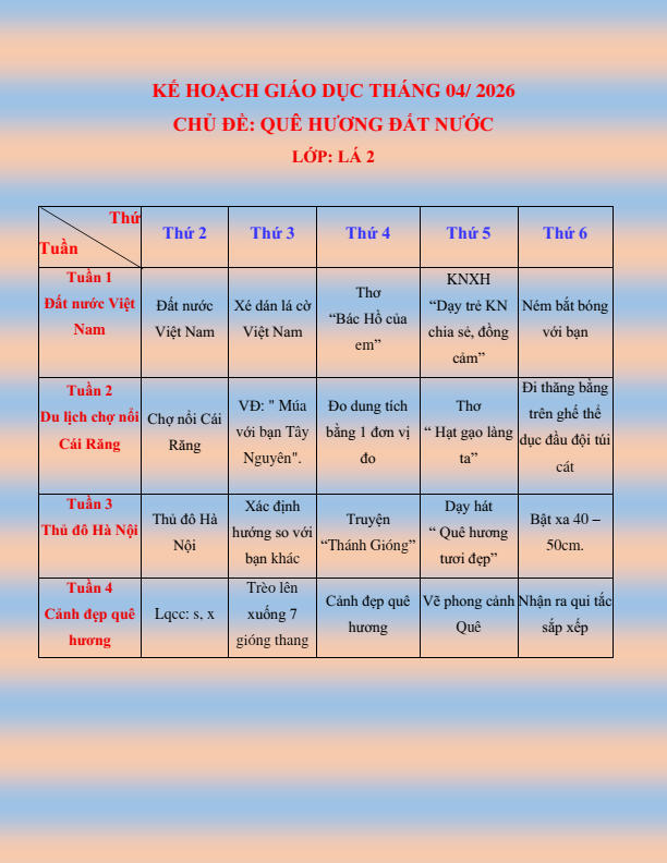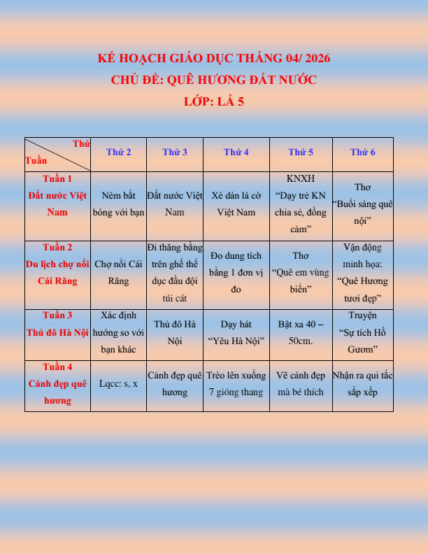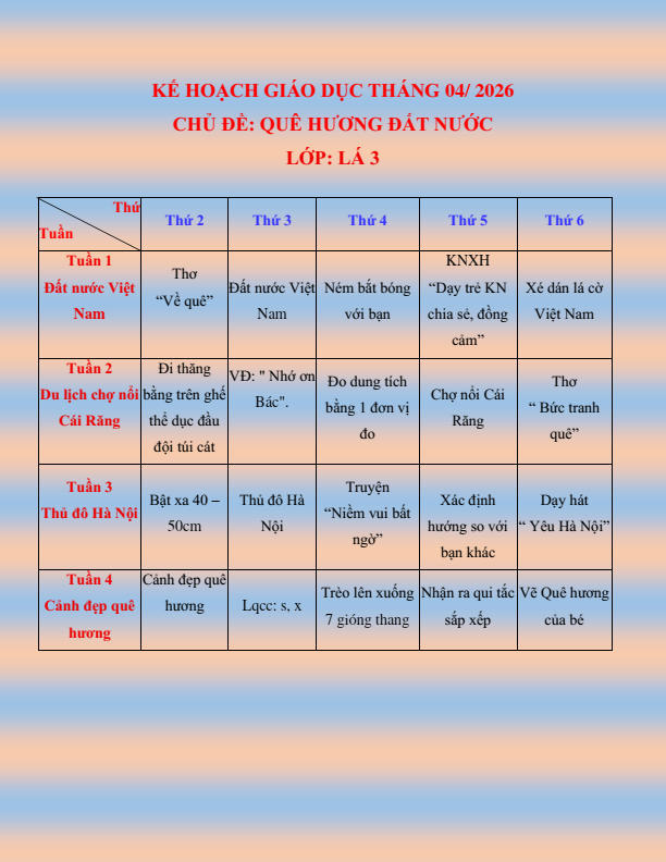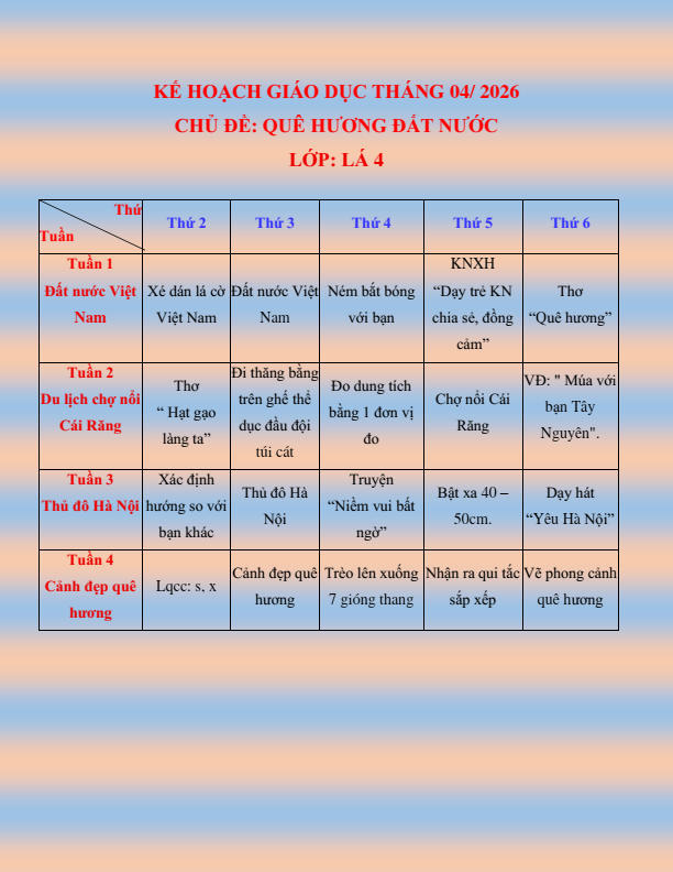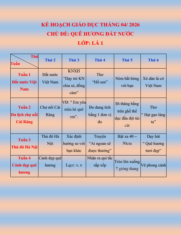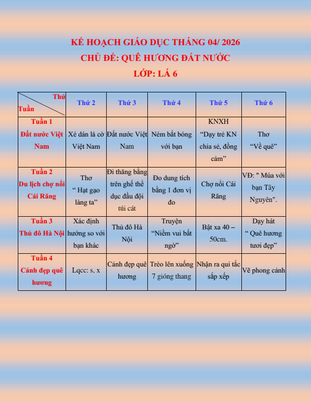 CHƯƠNG TRÌNH HỌC KHỐI LÁ THÁNG 4.2026