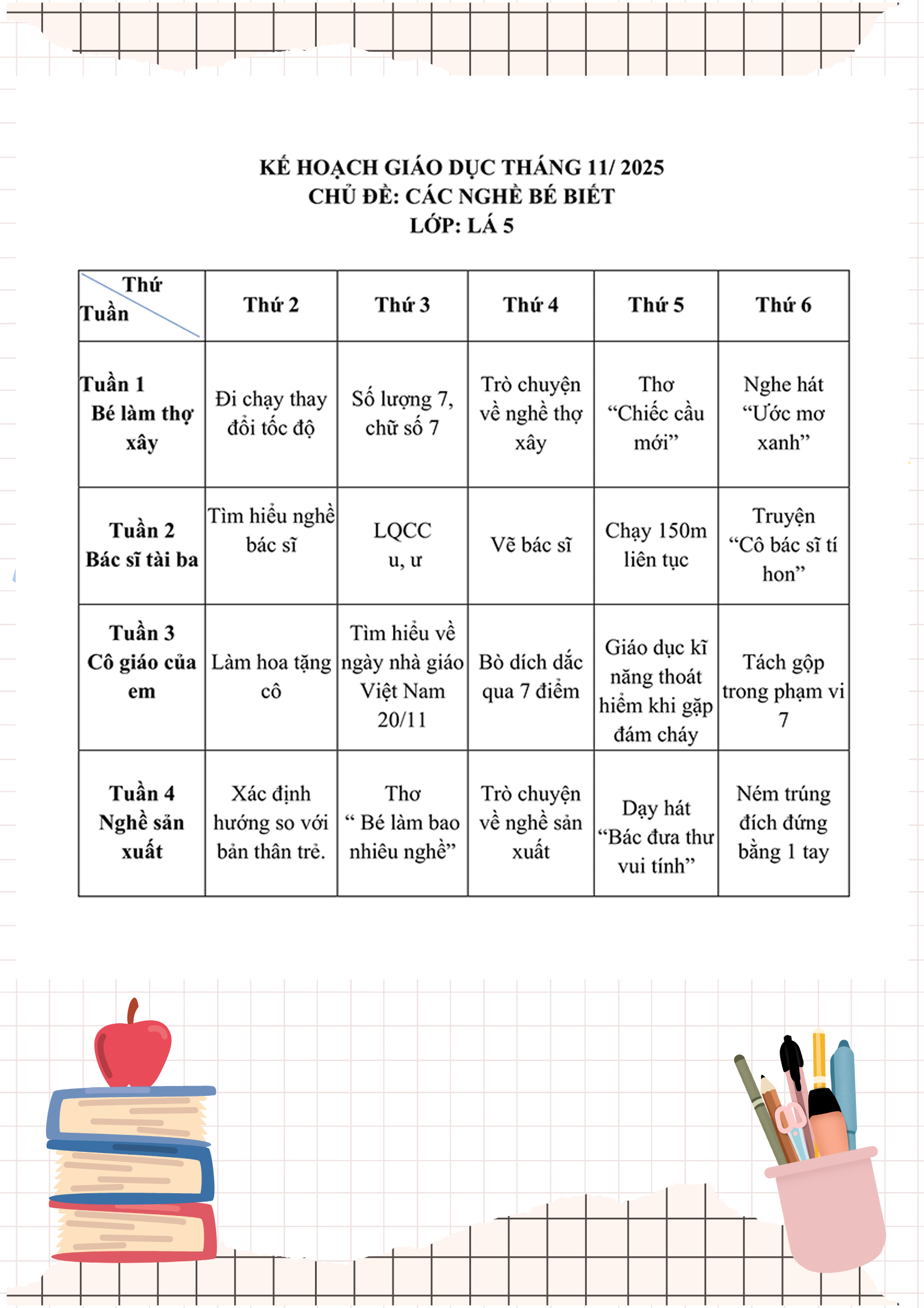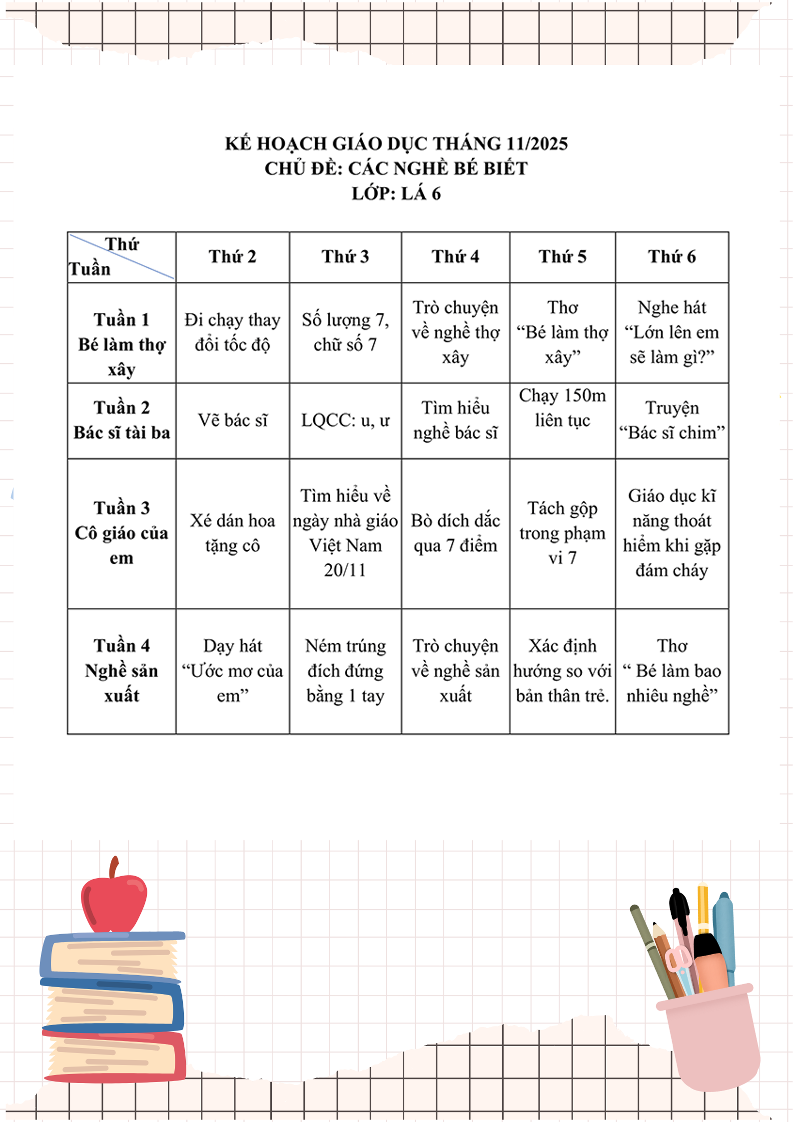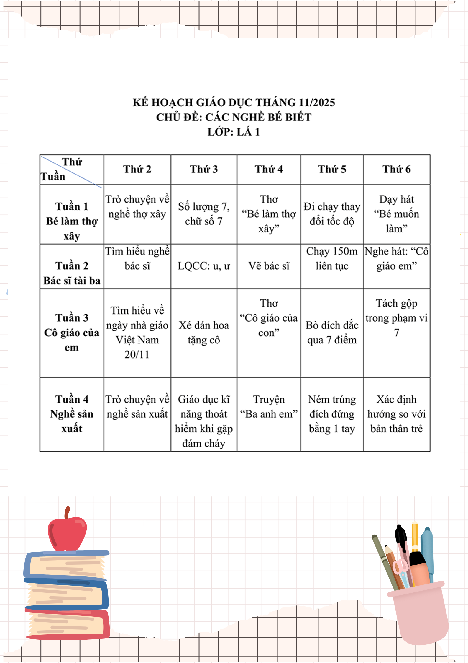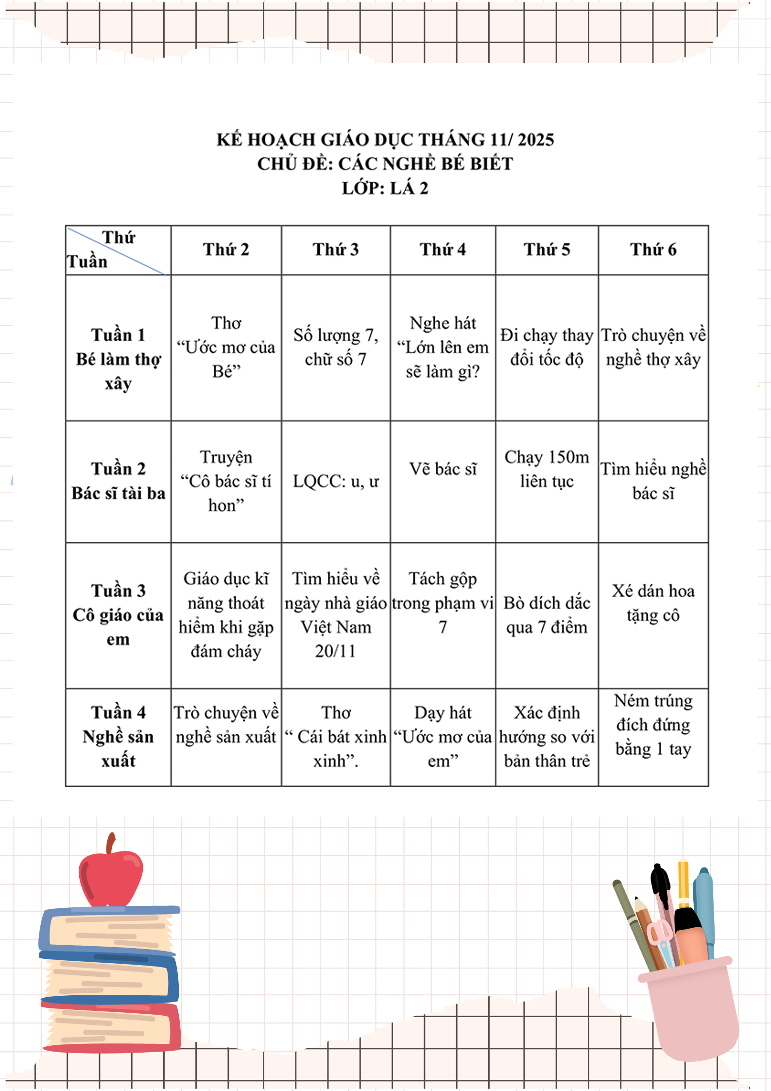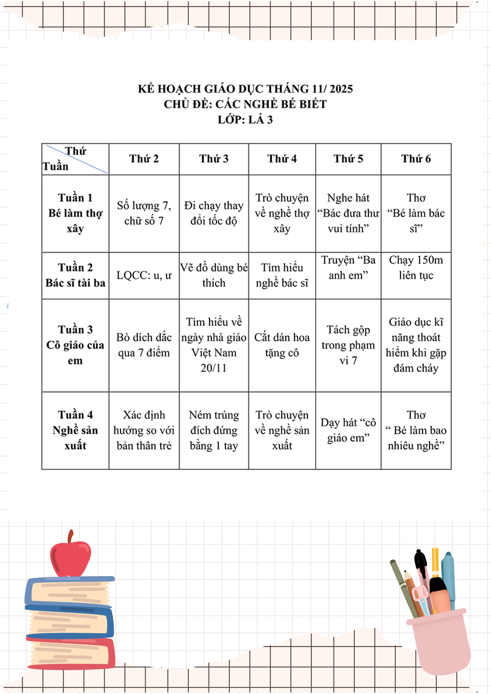 KẾ HOẠCH GIÁO DỤC THÁNG 11/2025 - KHỐI LỚP LÁ