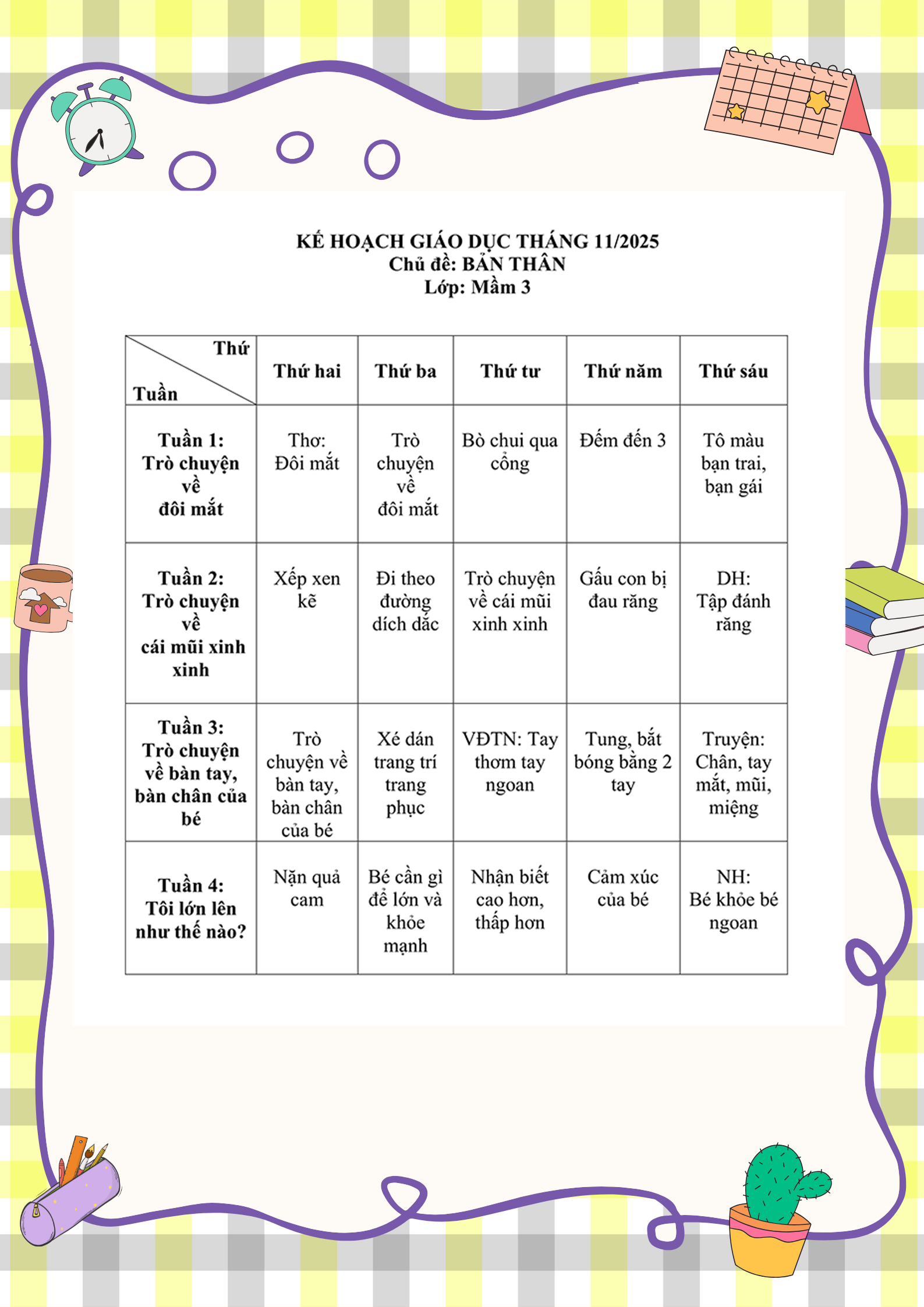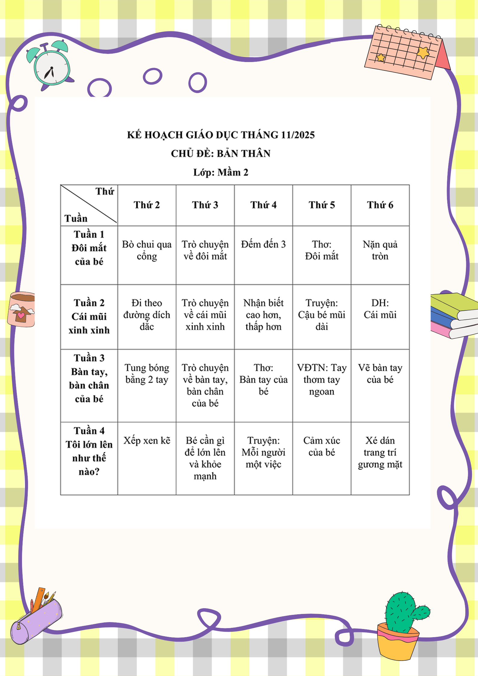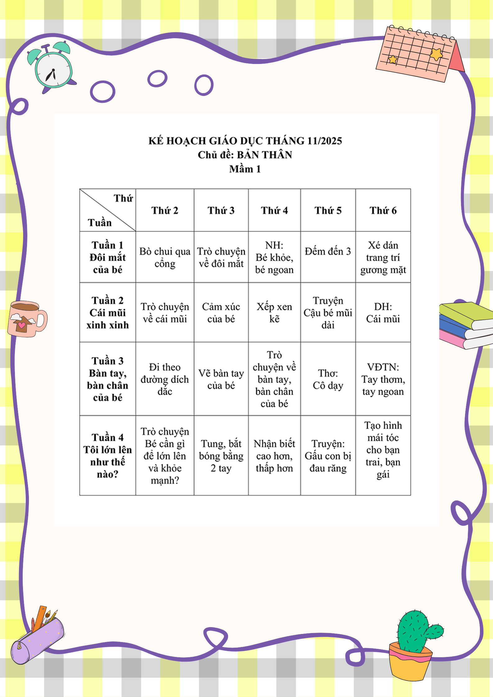 KẾ HOẠCH GIÁO DỤC THÁNG 11/2025 - KHỐI LỚP MẦM