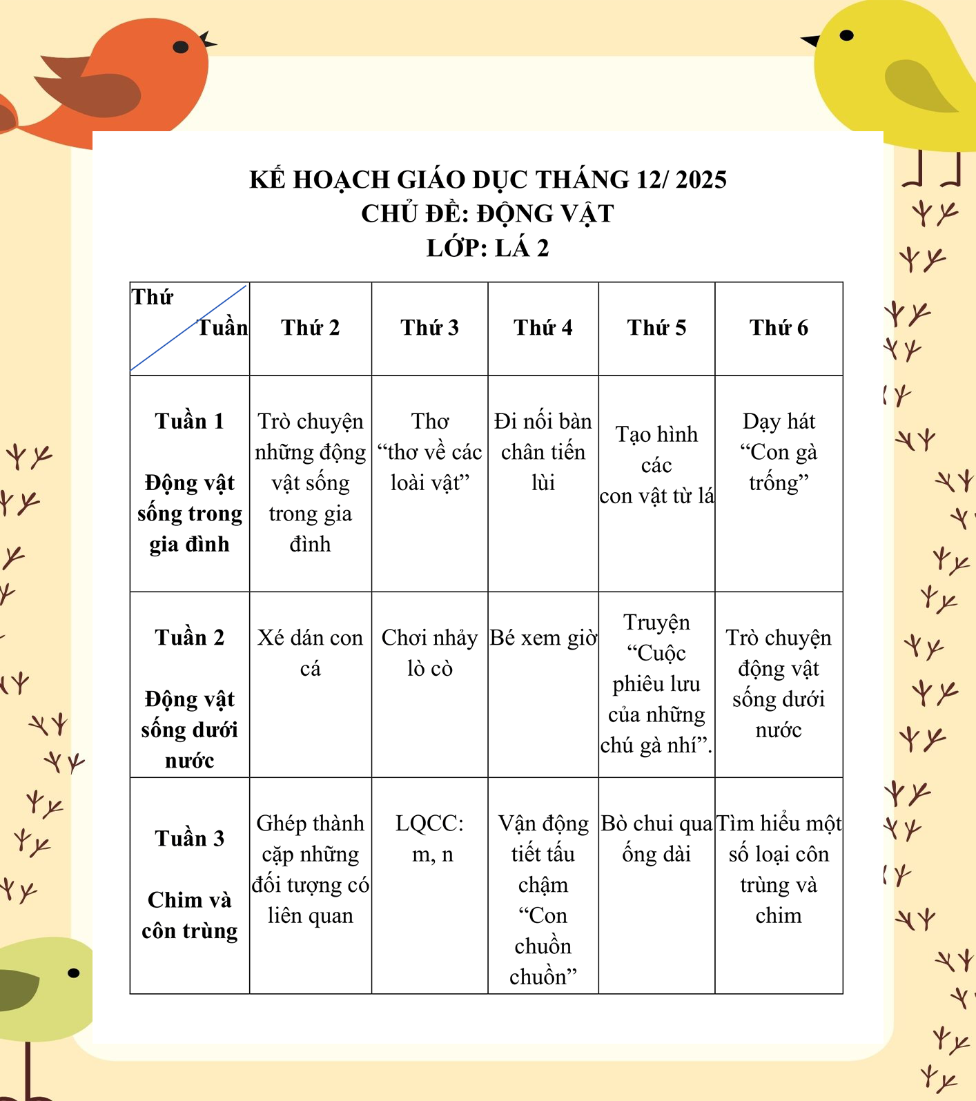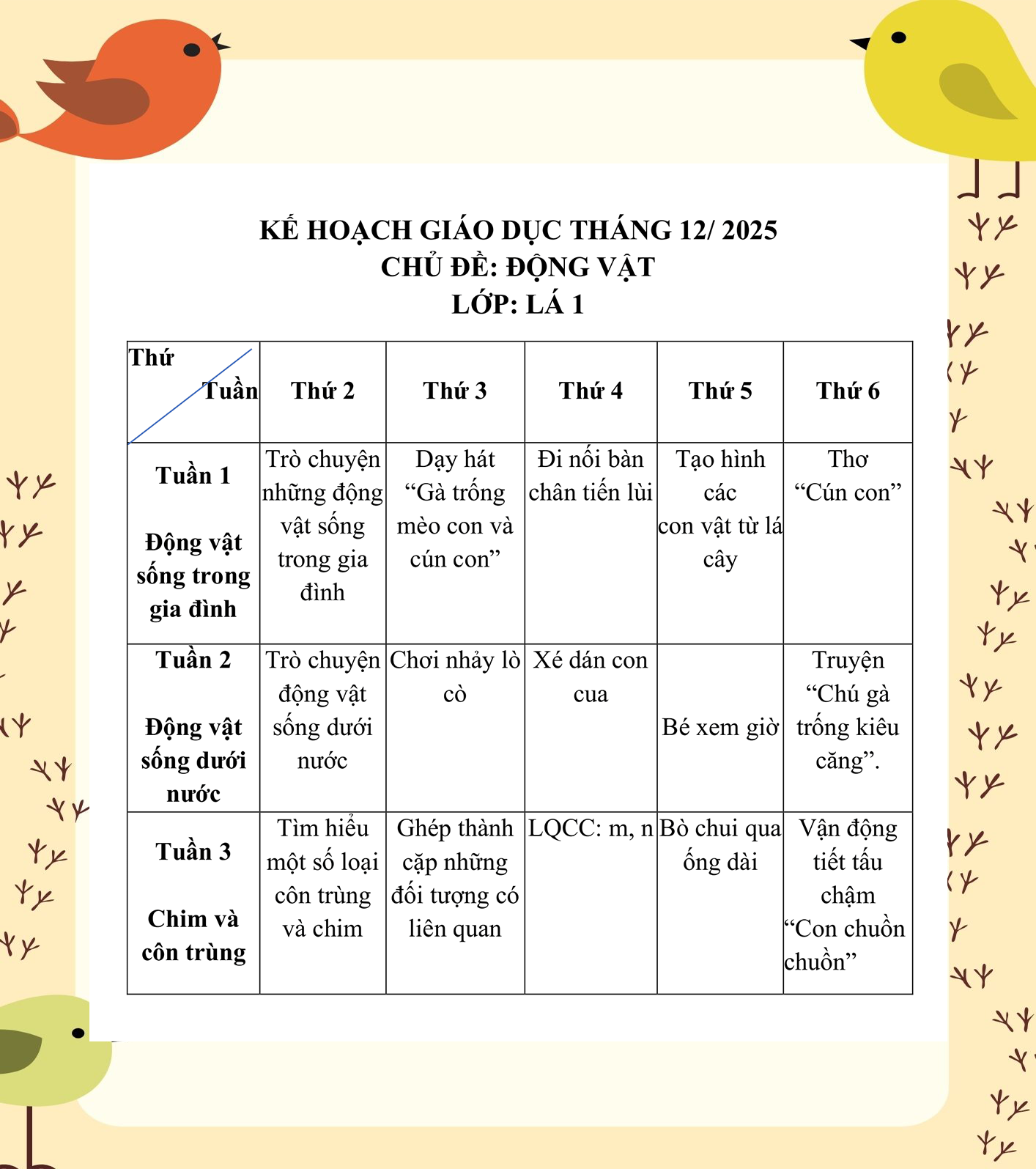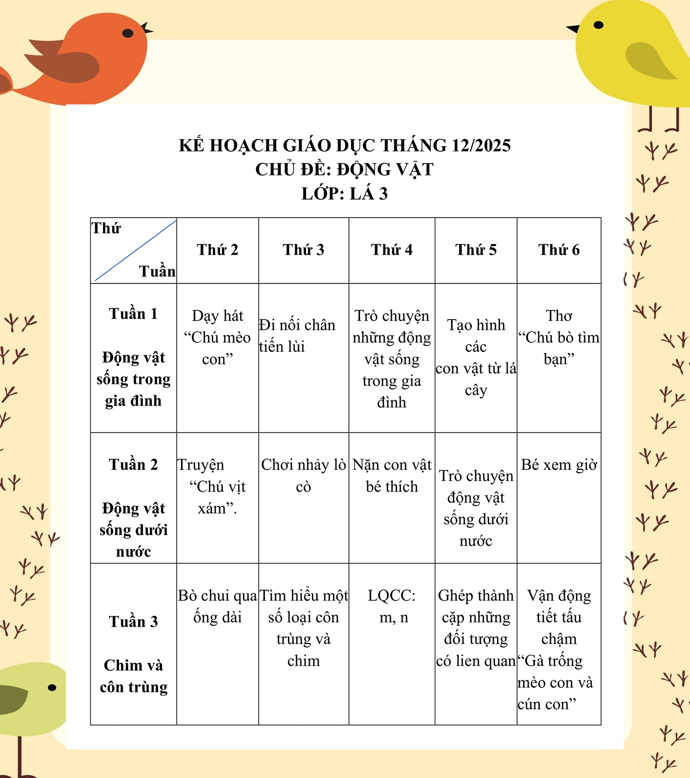KẾ HOẠCH GIÁO DỤC THÁNG 12/2025 - KHỐI LỚP LÁ