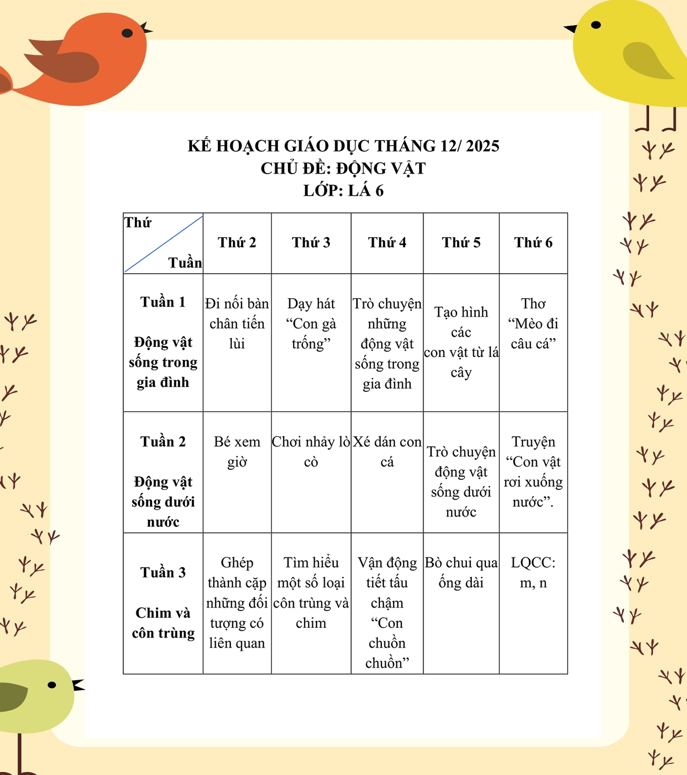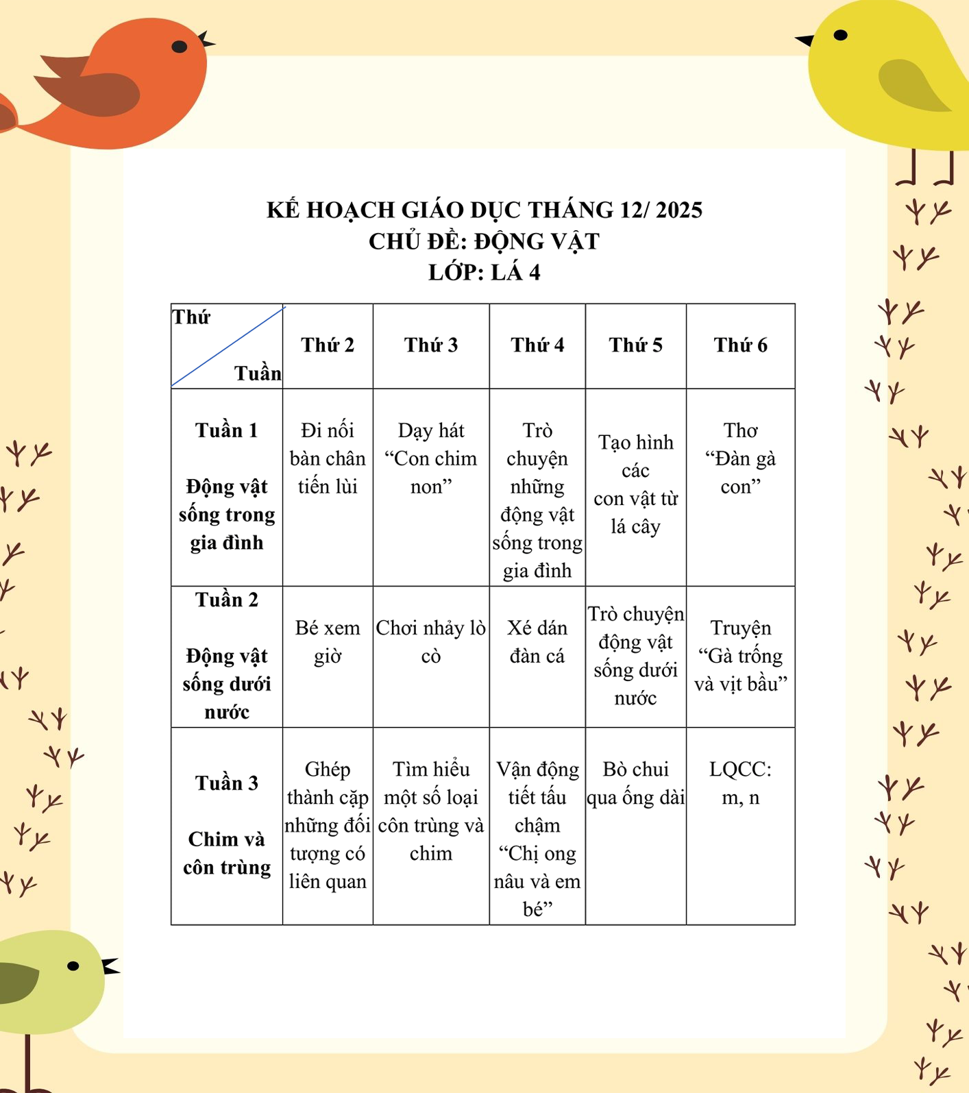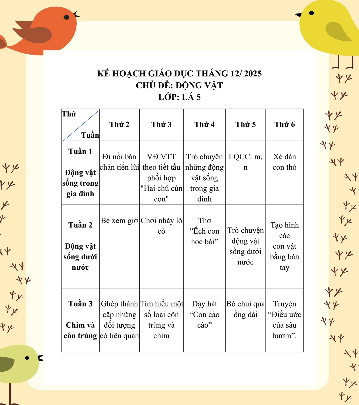 KẾ HOẠCH GIÁO DỤC THÁNG 12/2025 - KHỐI LỚP LÁ