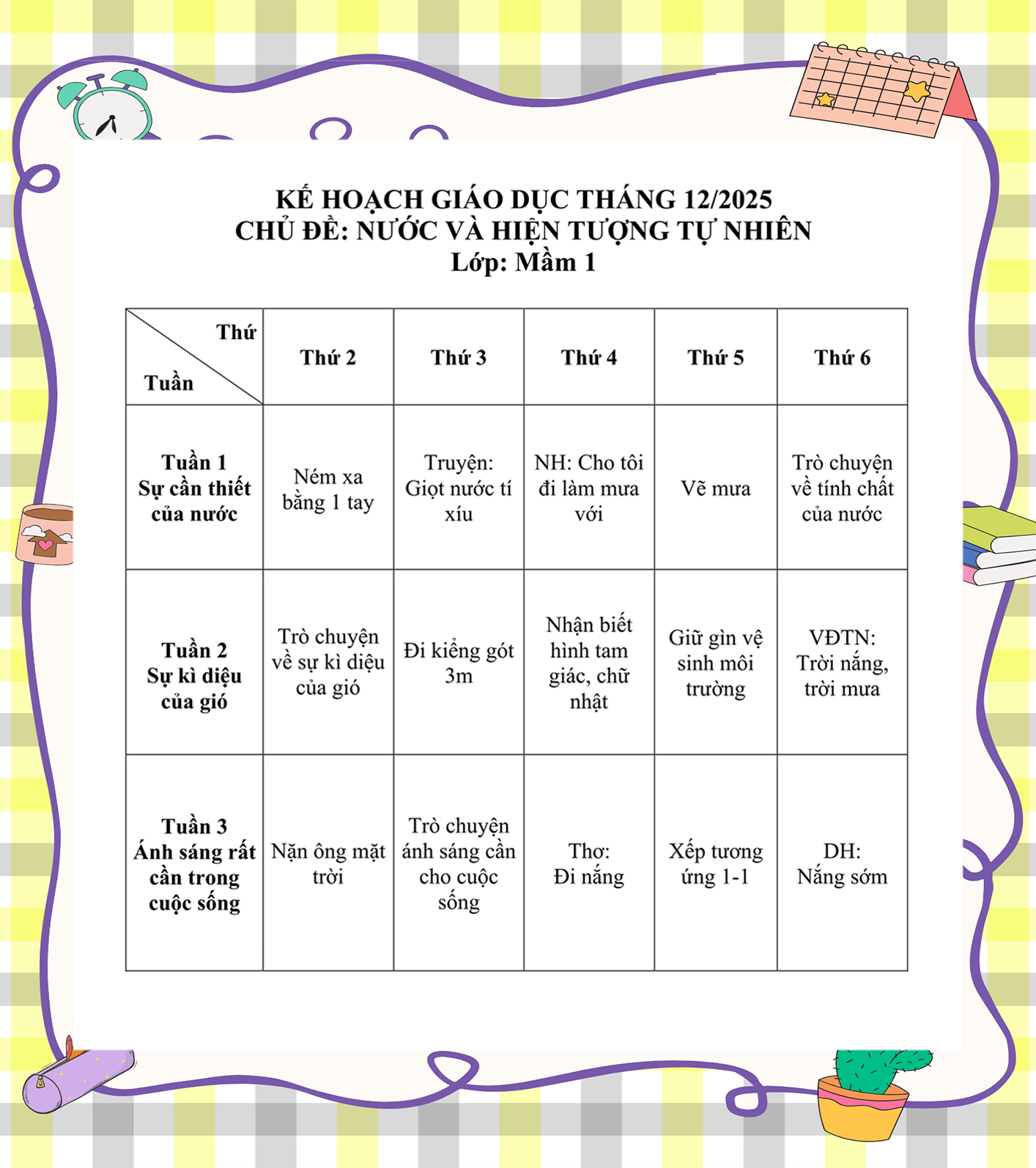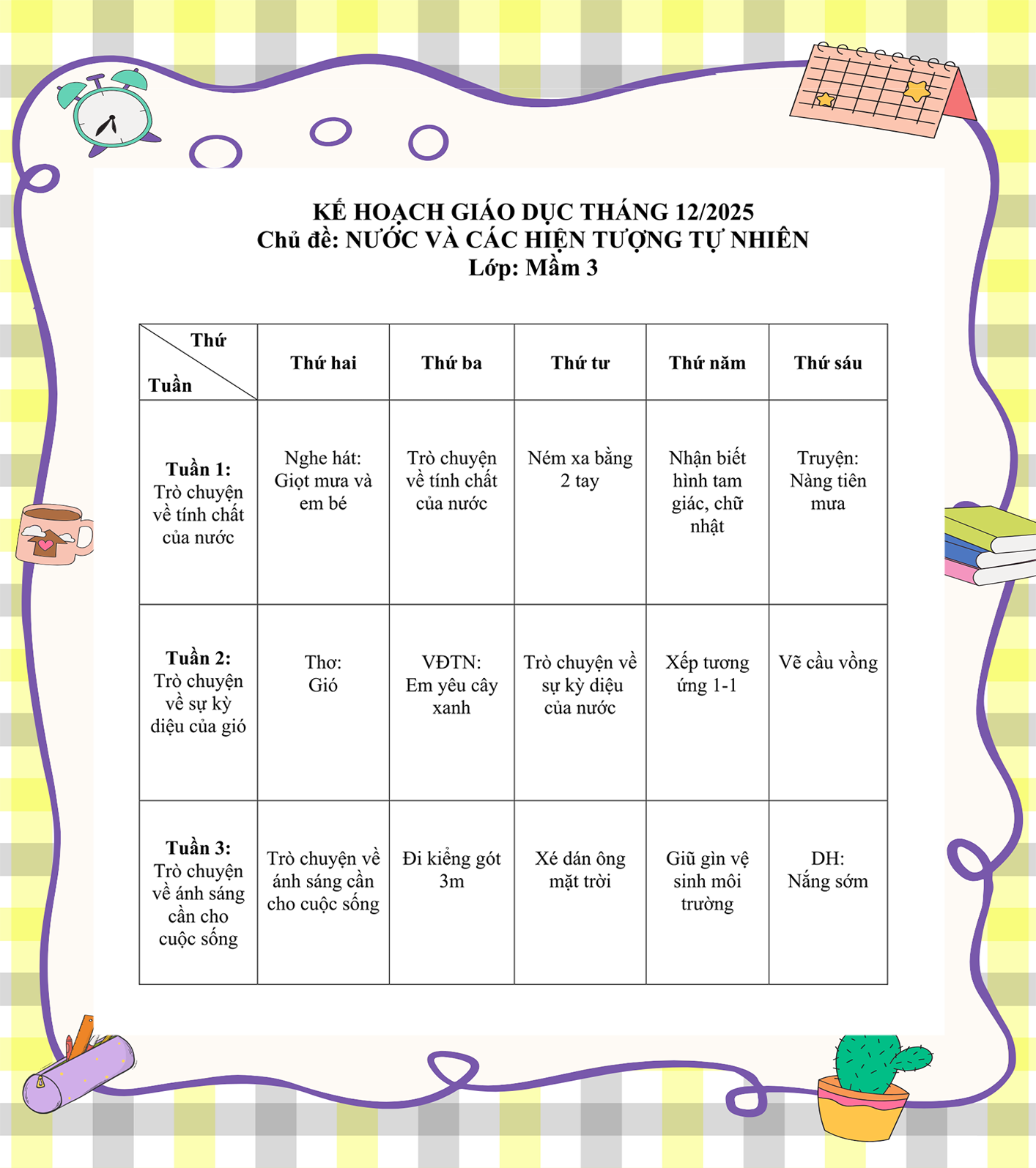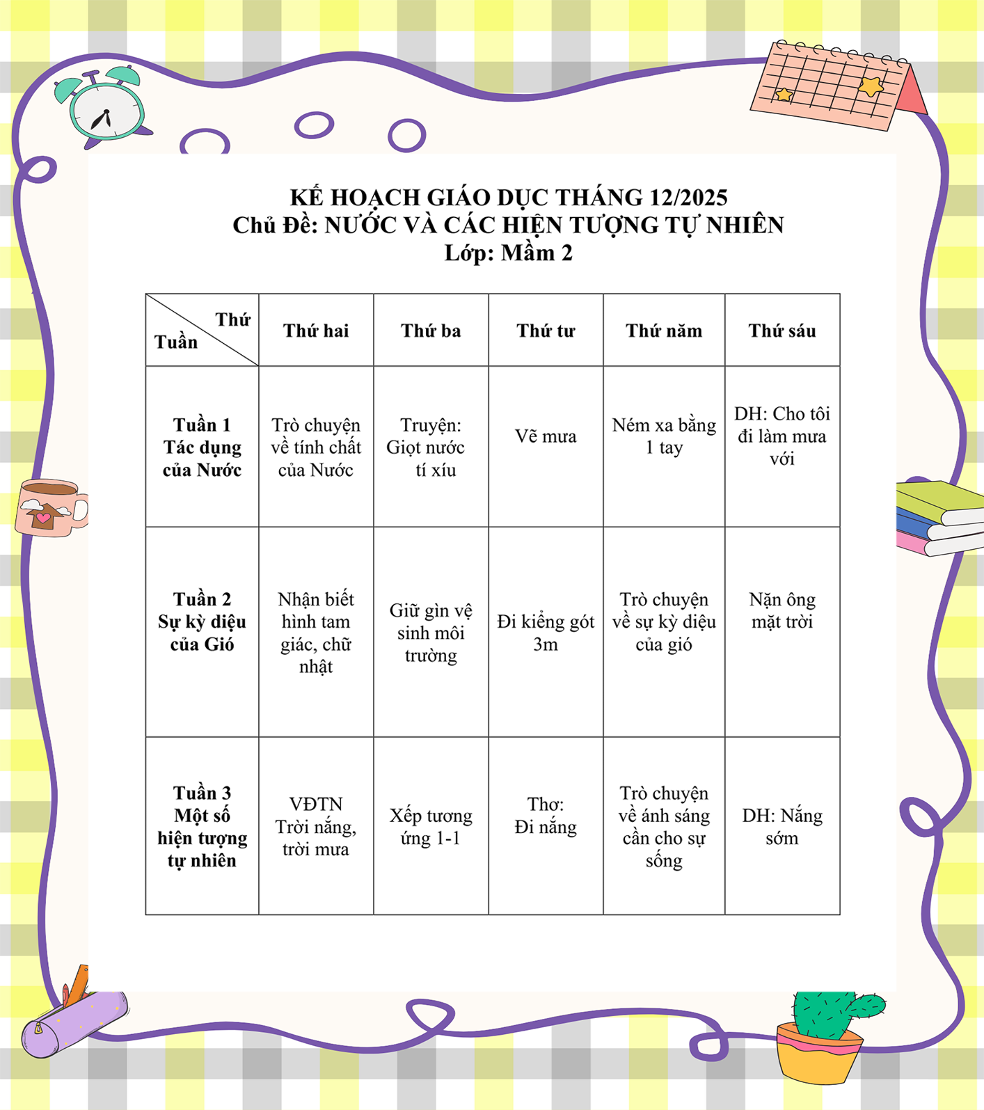 KẾ HOẠCH GIÁO DỤC THÁNG 12/2025 - KHỐI LỚP MẦM
