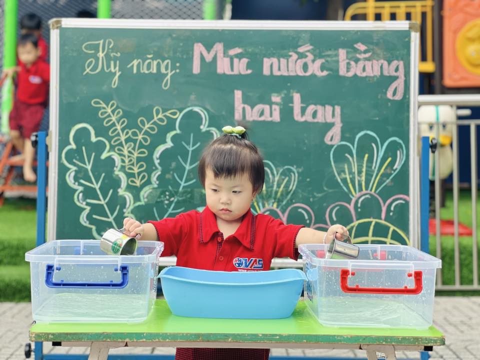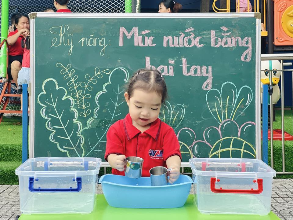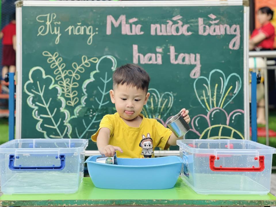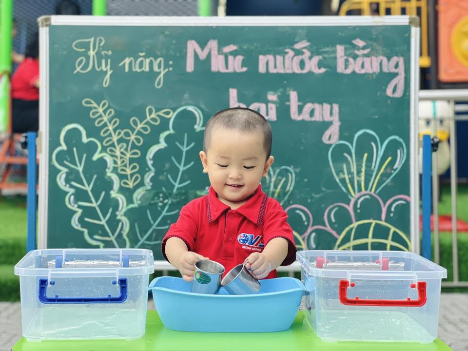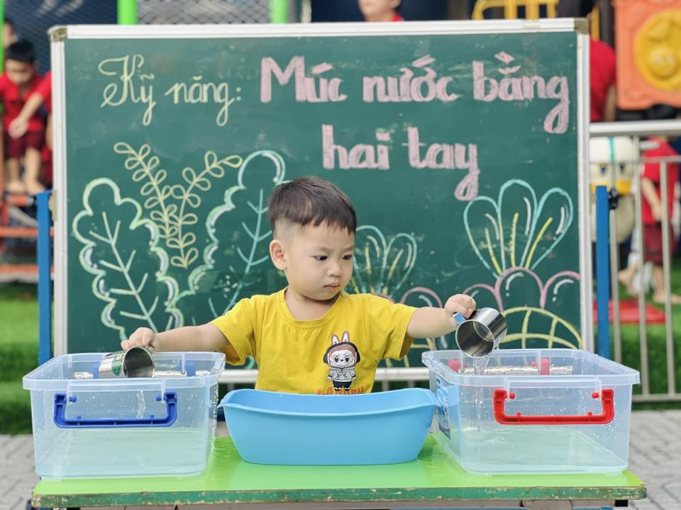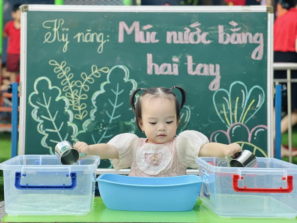 Hôm nay, các bé yêu lớp Misa (25-36th) đã cùng nhau rèn luyện kỹ năng múc nước bằng hai tay – một hoạt động tưởng chừng đơn giản nhưng lại giúp bé phát triển thật nhiều điều thú vị.