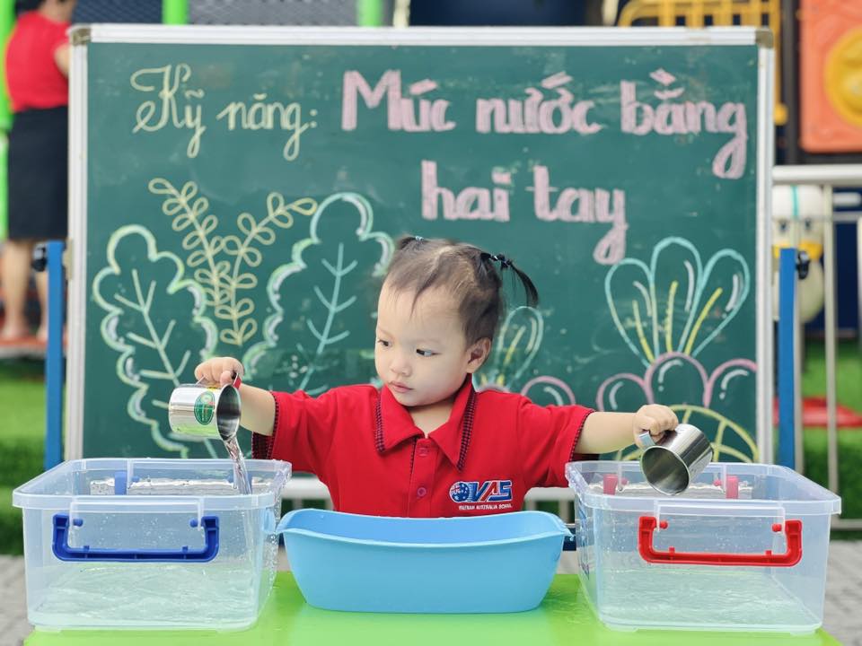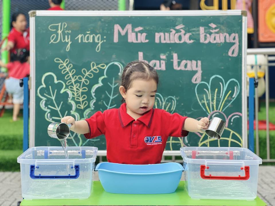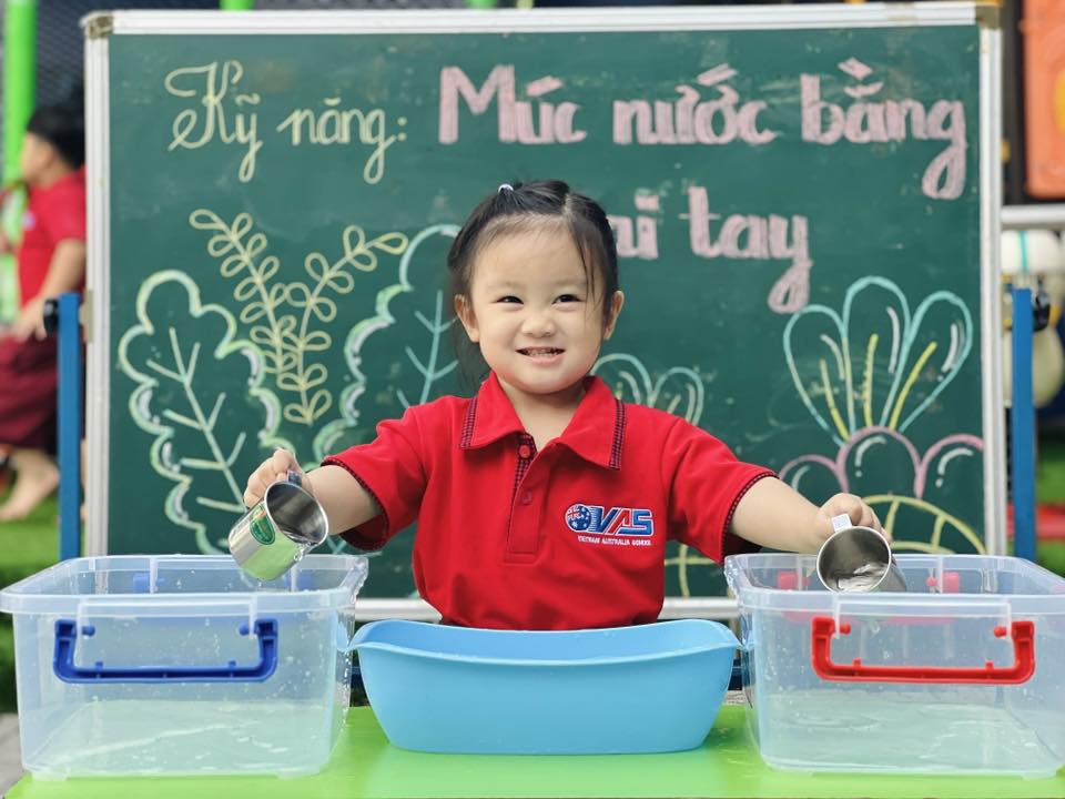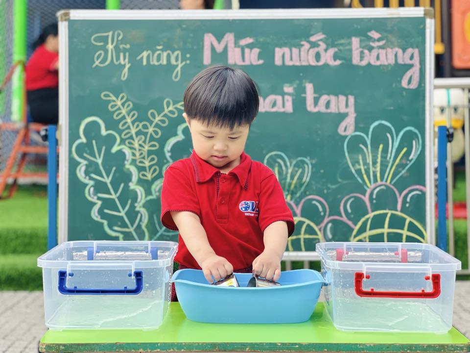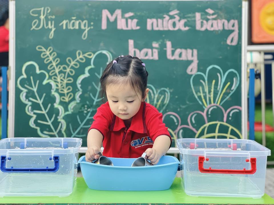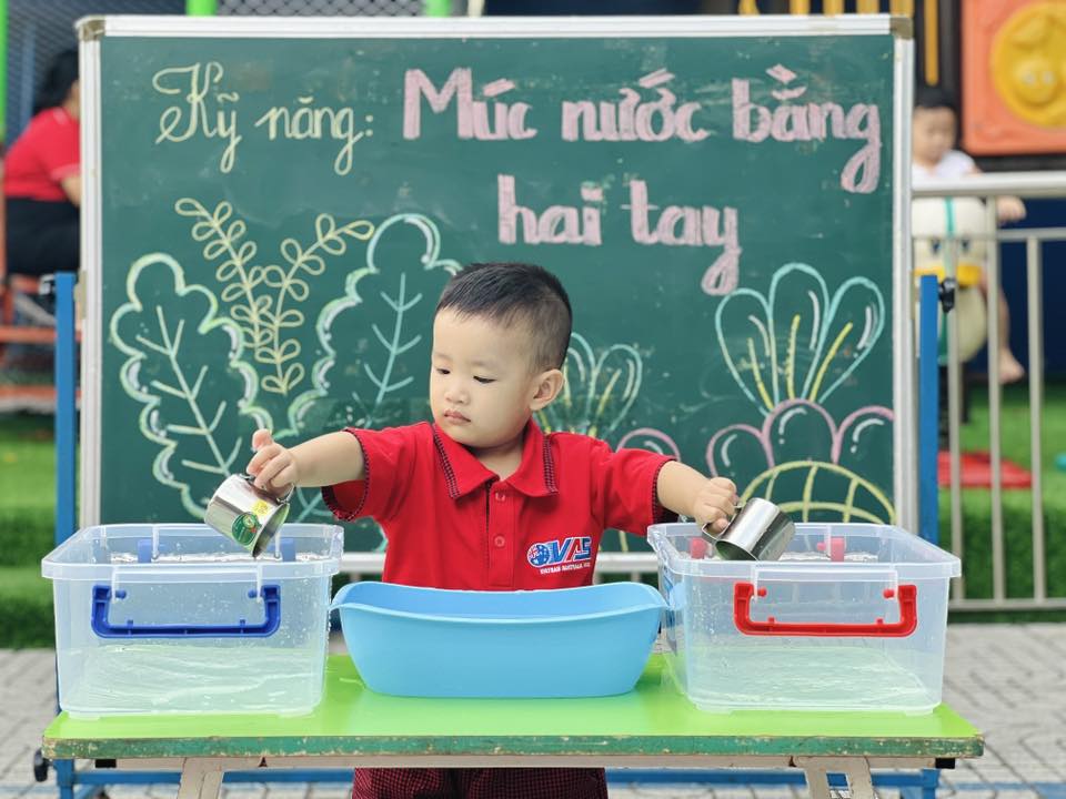 Hôm nay, các bé yêu lớp Misa (25-36th) đã cùng nhau rèn luyện kỹ năng múc nước bằng hai tay – một hoạt động tưởng chừng đơn giản nhưng lại giúp bé phát triển thật nhiều điều thú vị.