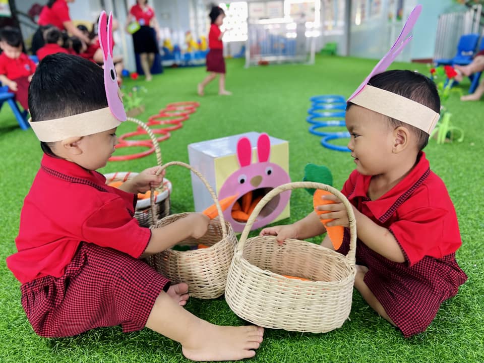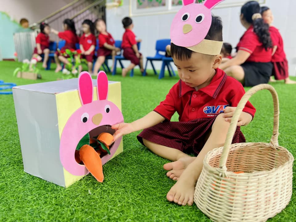 Với đôi tay nhanh nhẹn và tinh mắt, các bé đã khéo léo nhặt những củ cà rốt “ngon lành” để mang tặng cho bạn thỏ đáng yêu.