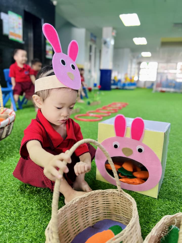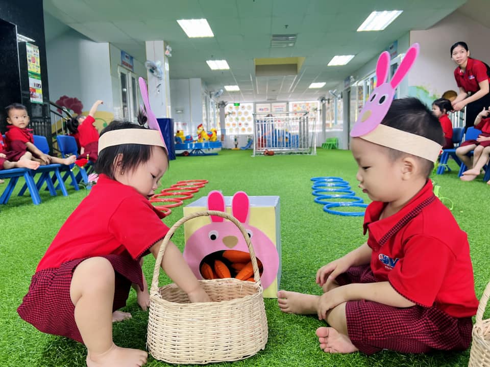 Hôm nay, các bé yêu lớp Lucky (25-36th) đã cùng nhau tham gia trò chơi “Nhặt cà rốt tặng bạn thỏ” thật vui và sôi nổi