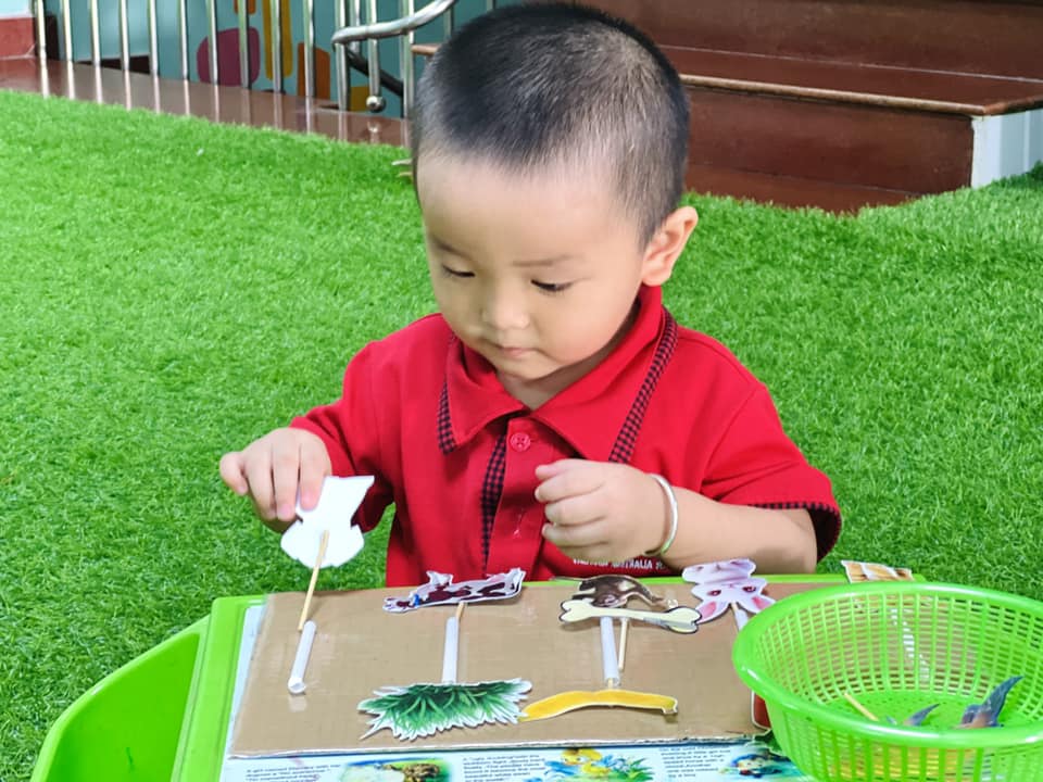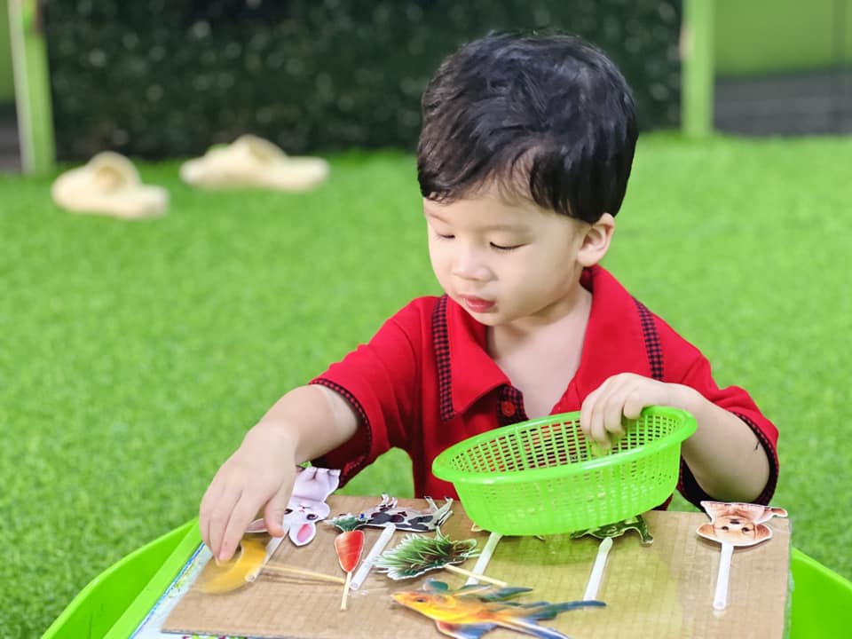 Hôm nay, các bé yêu của các bé yêu lớp Misa (25-36th) đã có một giờ học thật vui và bổ ích với hoạt động “Tìm thức ăn cho con vật”