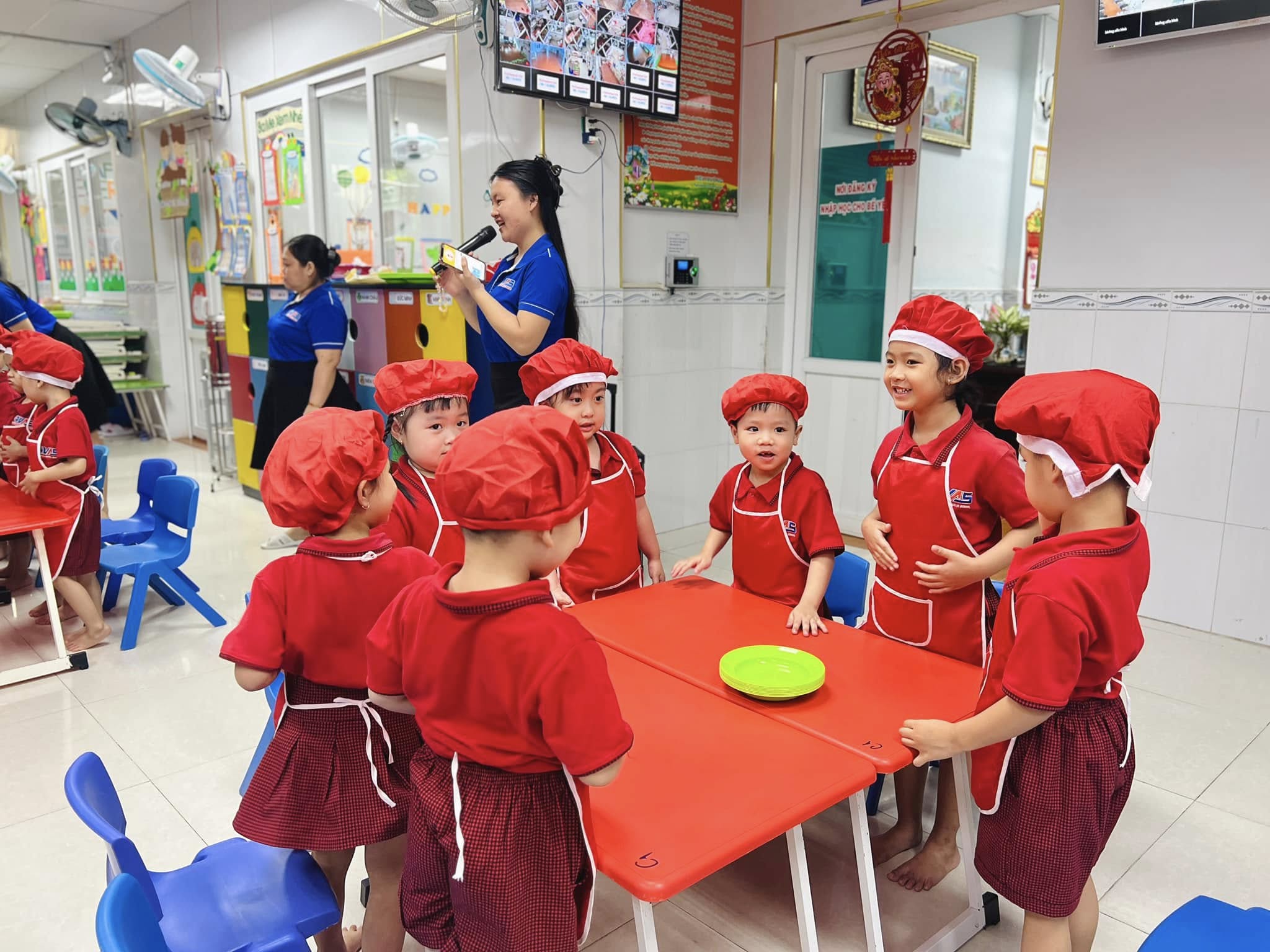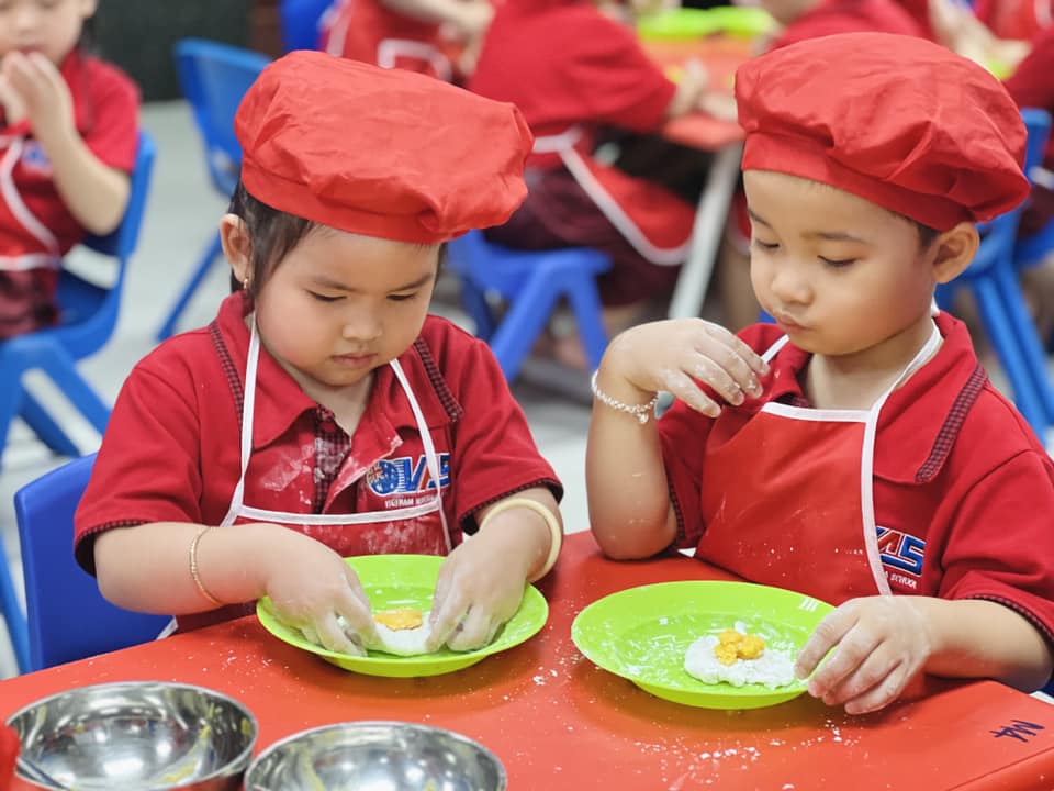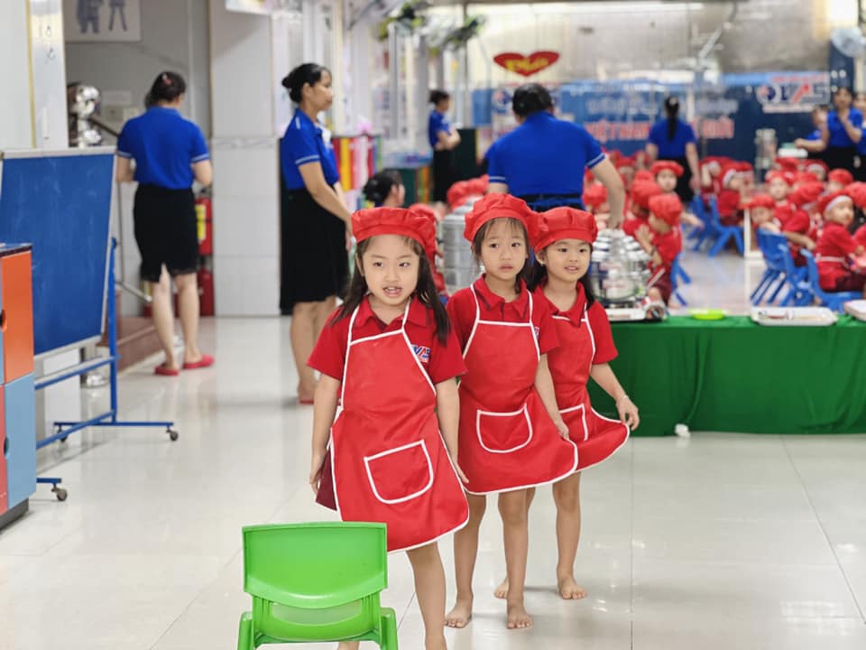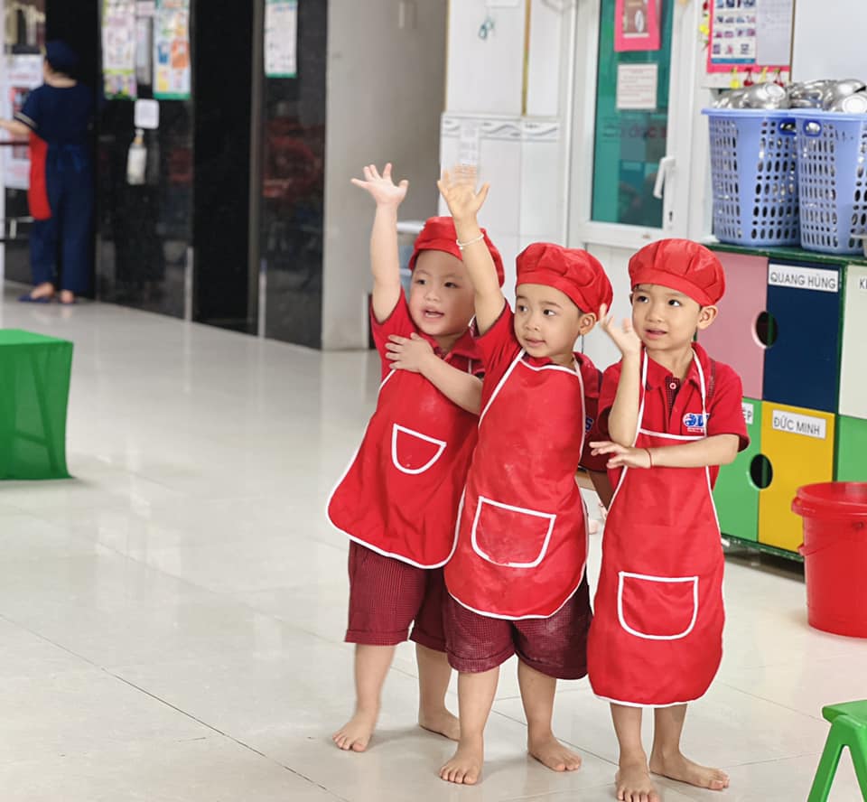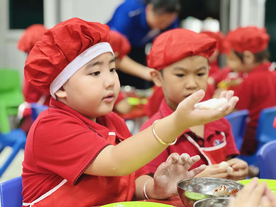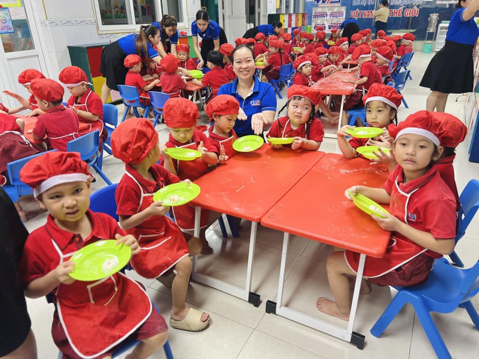 Những “đầu bếp nhí” khối Chồi hôm nay thật đáng yêu với gương mặt lấm tấm bột, đôi tay trắng xóa nhưng ánh mắt thì rạng rỡ niềm vui!