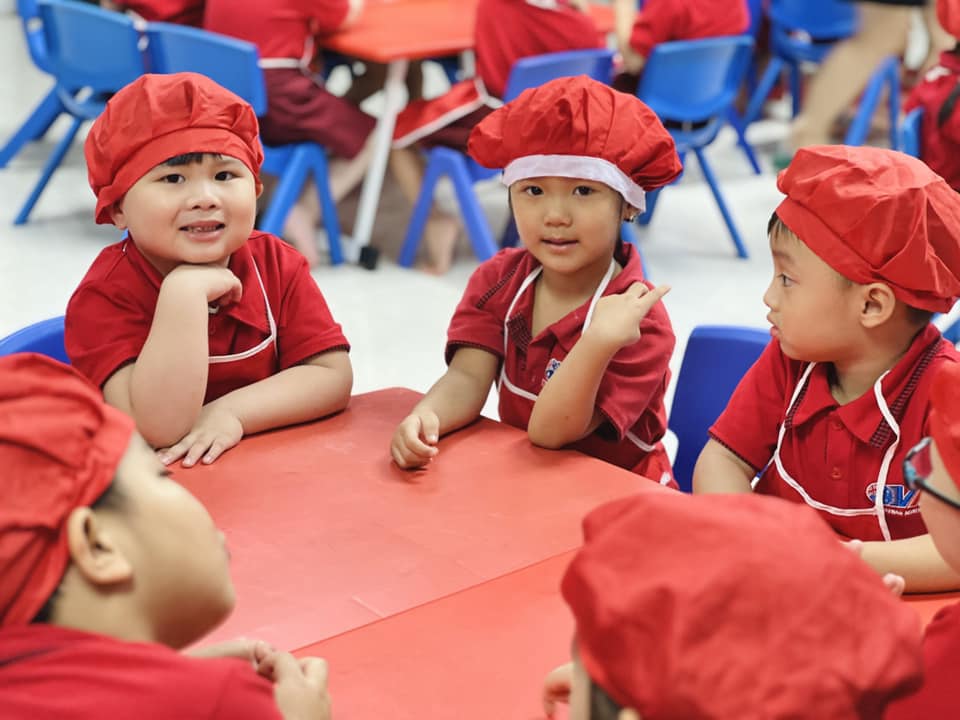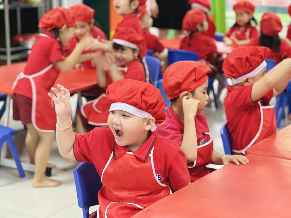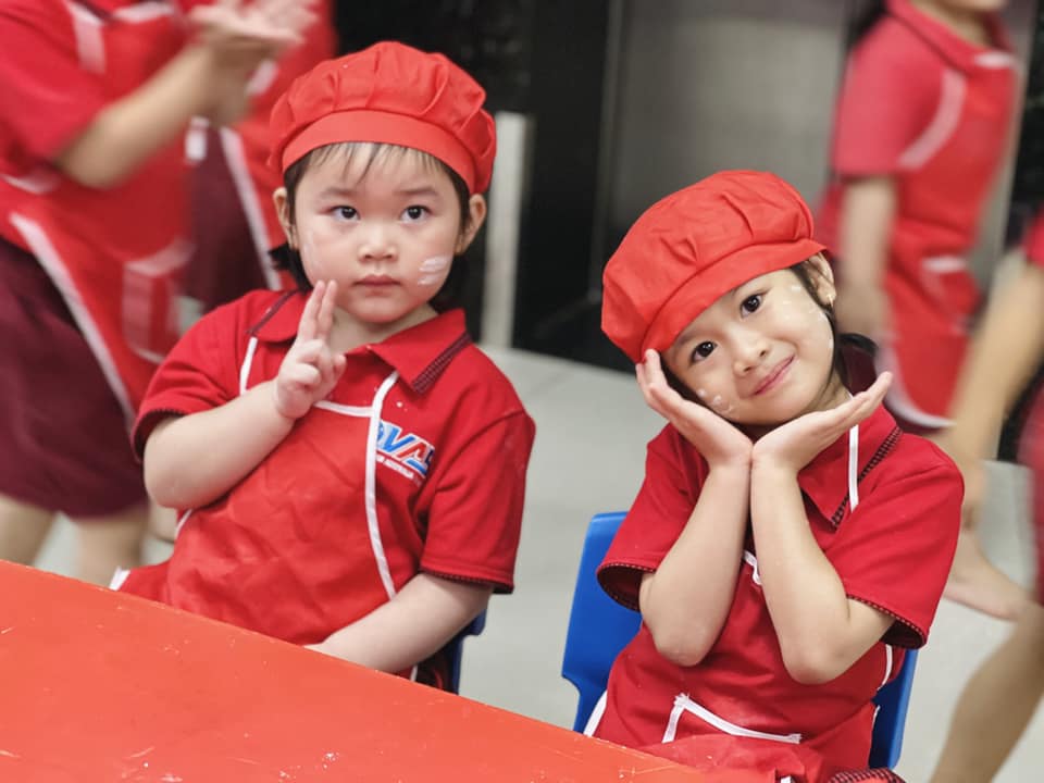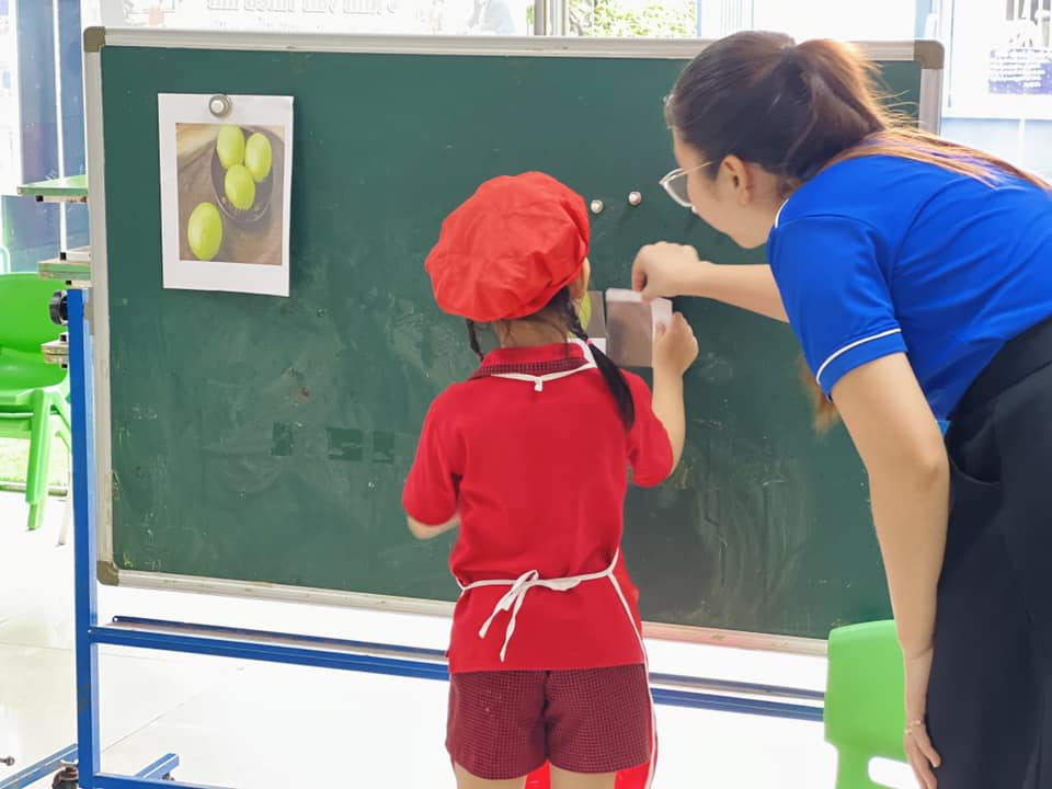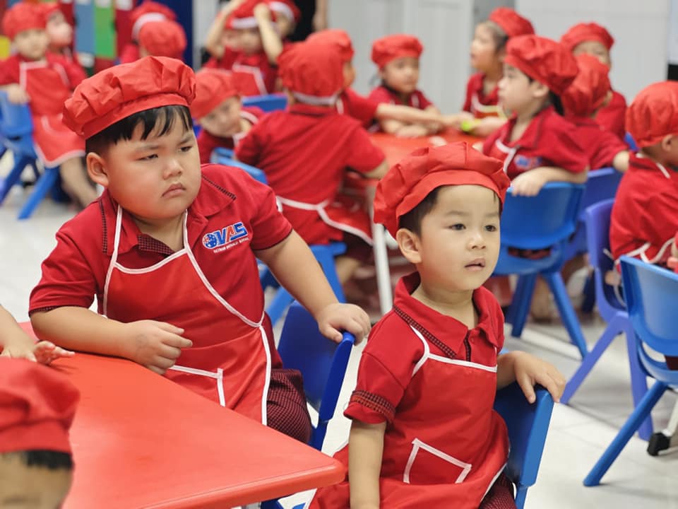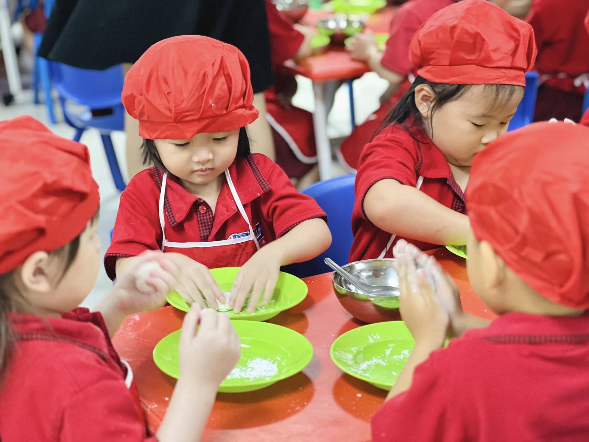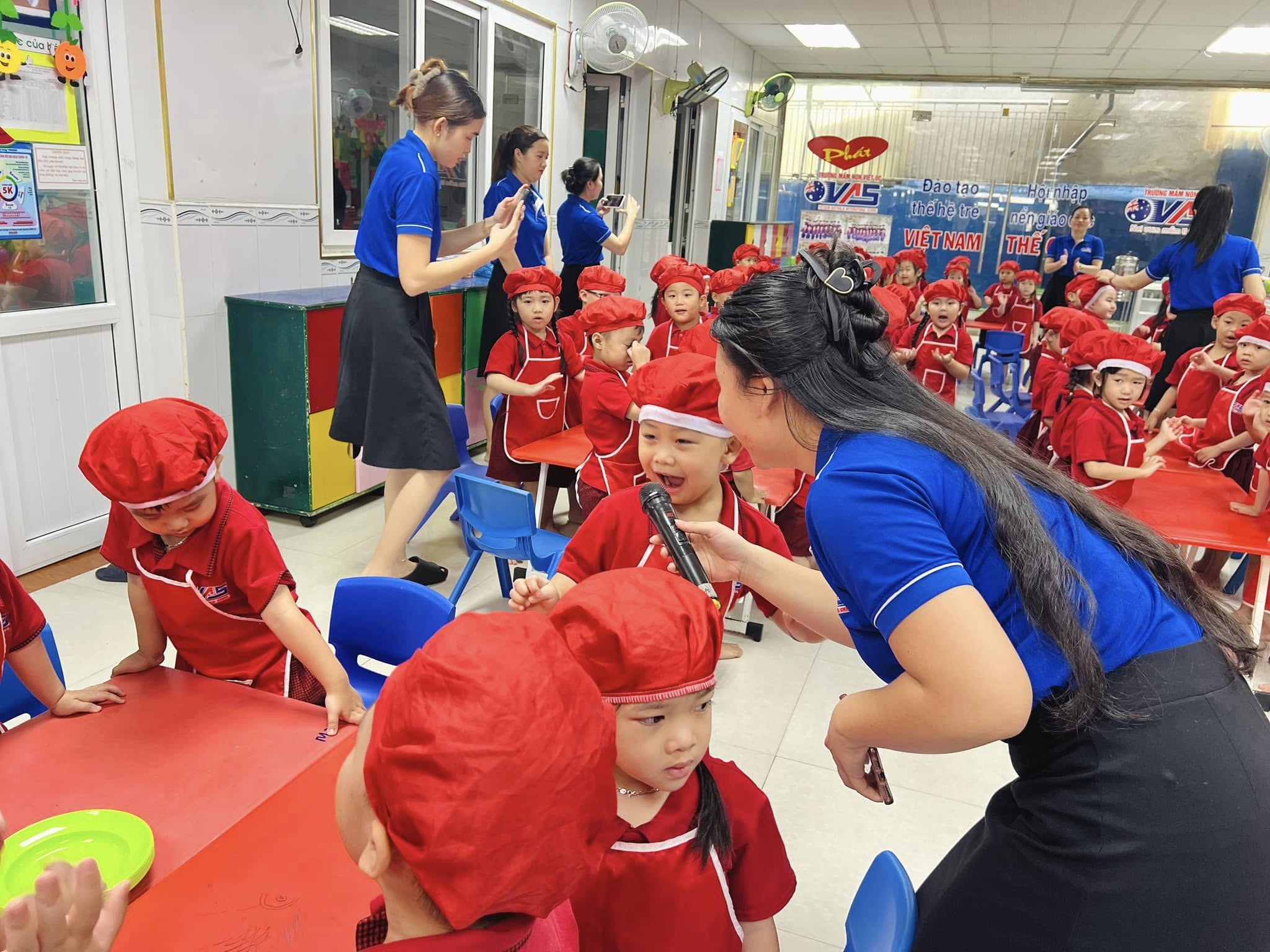 Những “đầu bếp nhí” khối Chồi hôm nay thật đáng yêu với gương mặt lấm tấm bột, đôi tay trắng xóa nhưng ánh mắt thì rạng rỡ niềm vui!