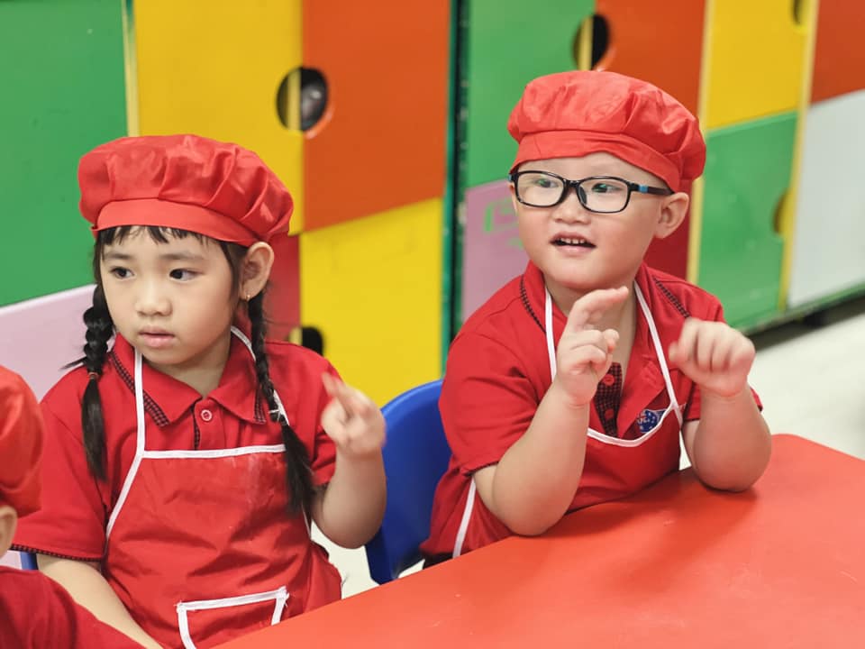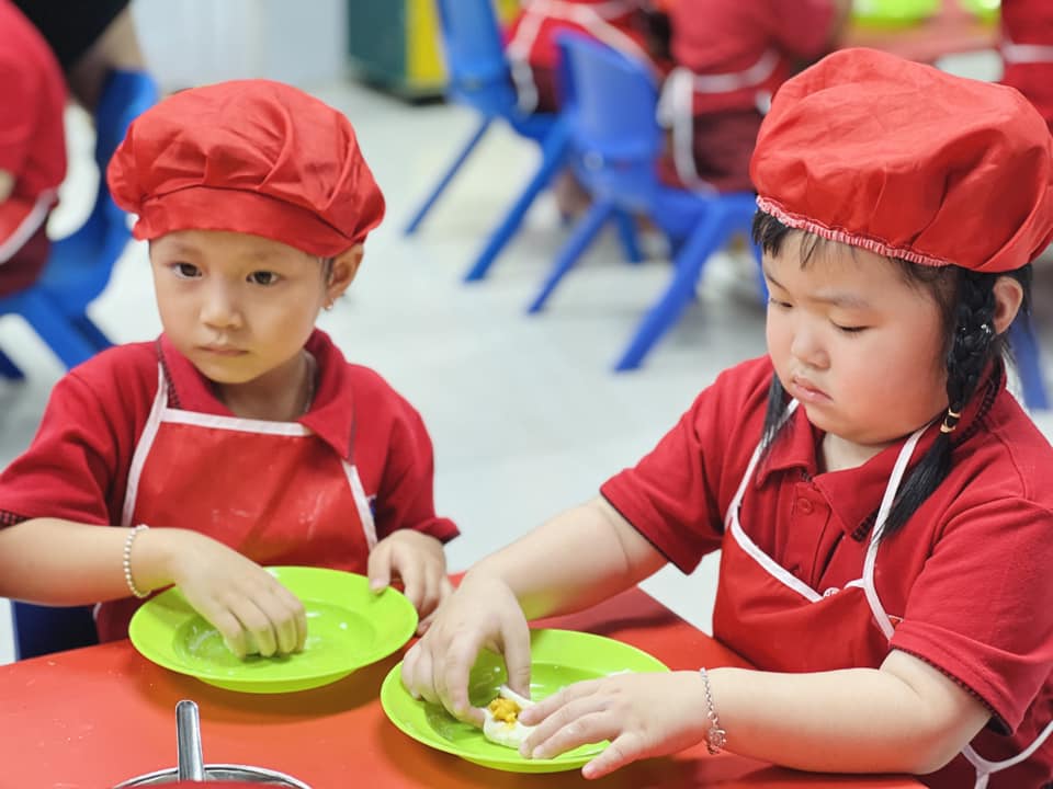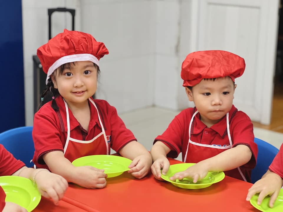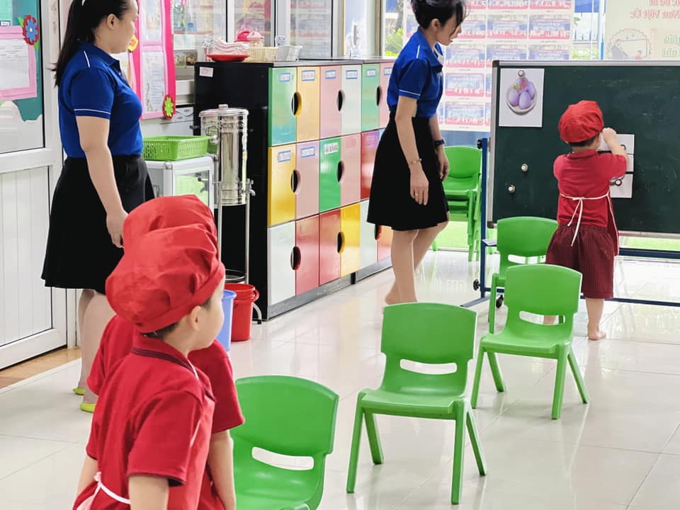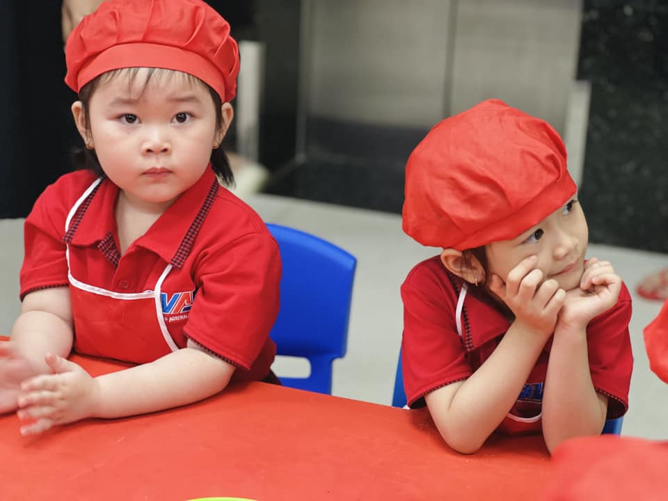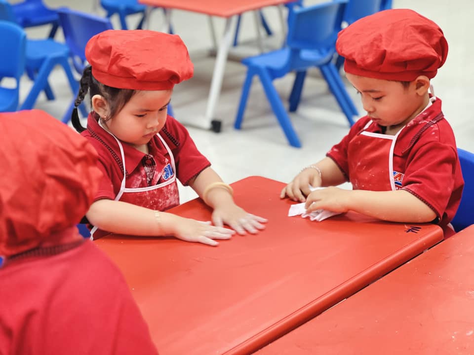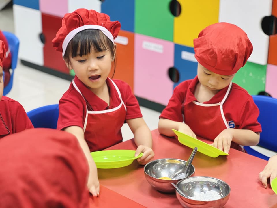 Những “đầu bếp nhí” khối Chồi hôm nay thật đáng yêu với gương mặt lấm tấm bột, đôi tay trắng xóa nhưng ánh mắt thì rạng rỡ niềm vui!