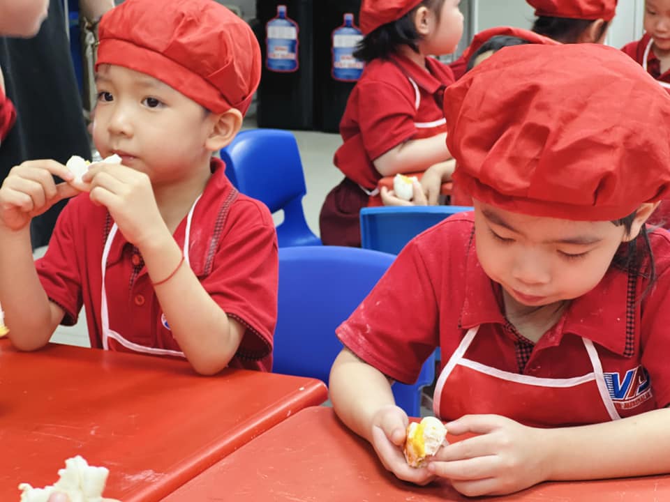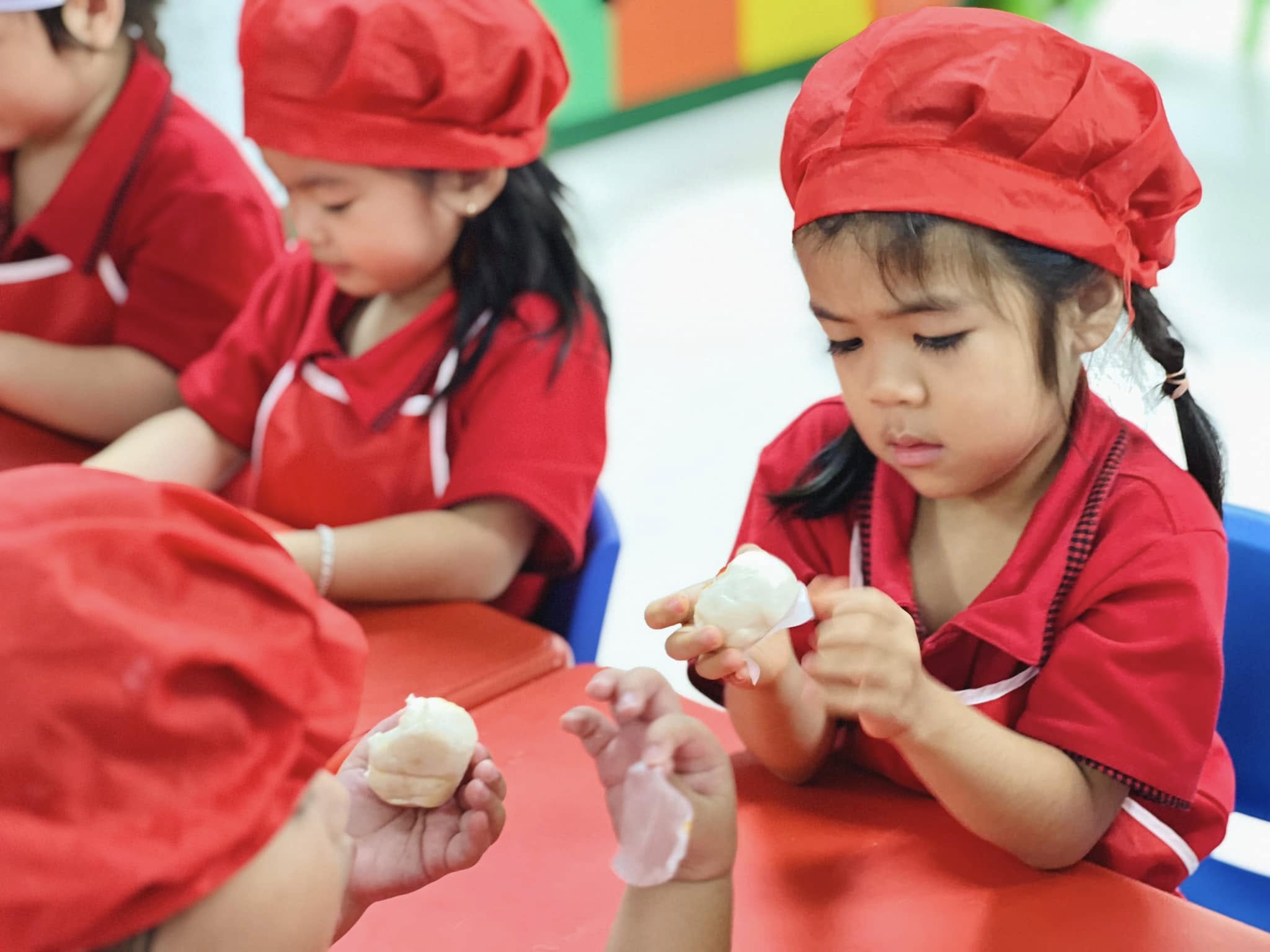Bé nhào bột, nặn bánh, rồi háo hức chờ thành phẩm thơm phức ra lò – mỗi chiếc bánh bao nhỏ xinh là cả một tác phẩm ngọt ngào của các bé!