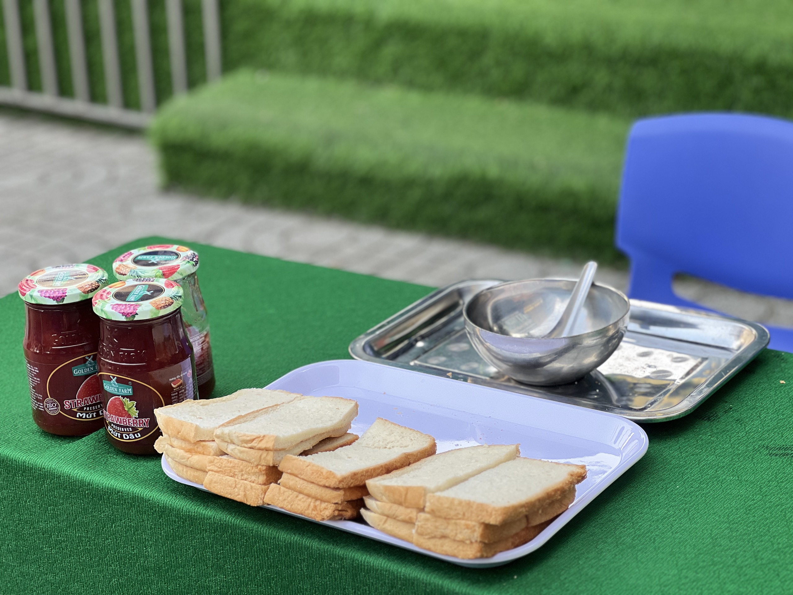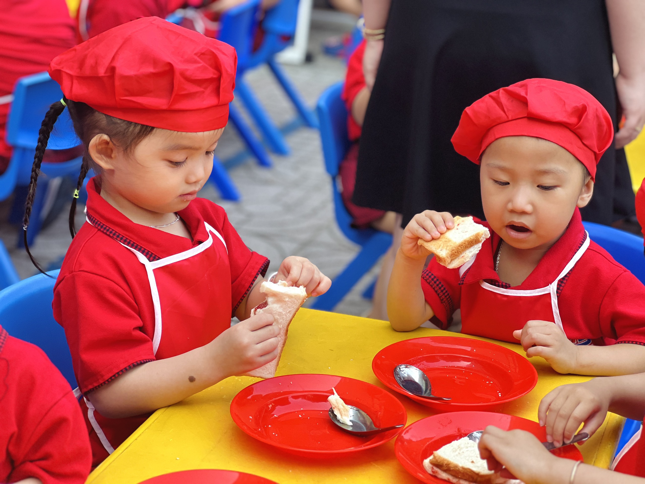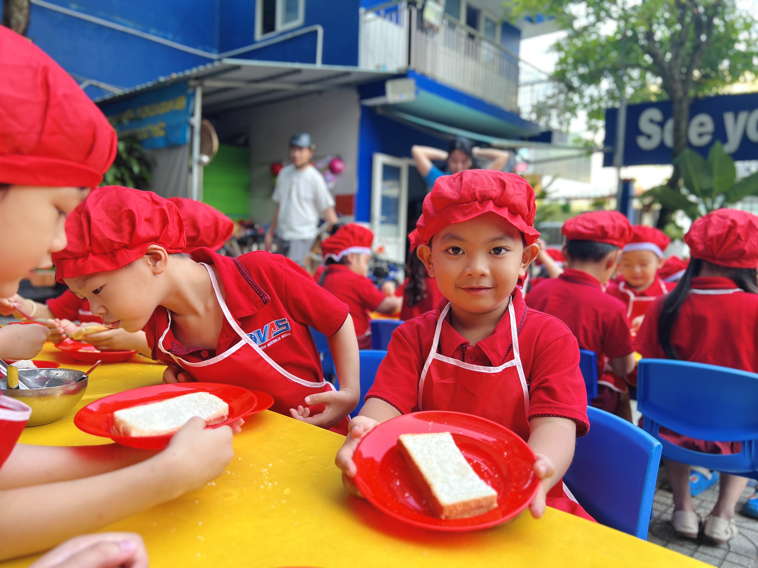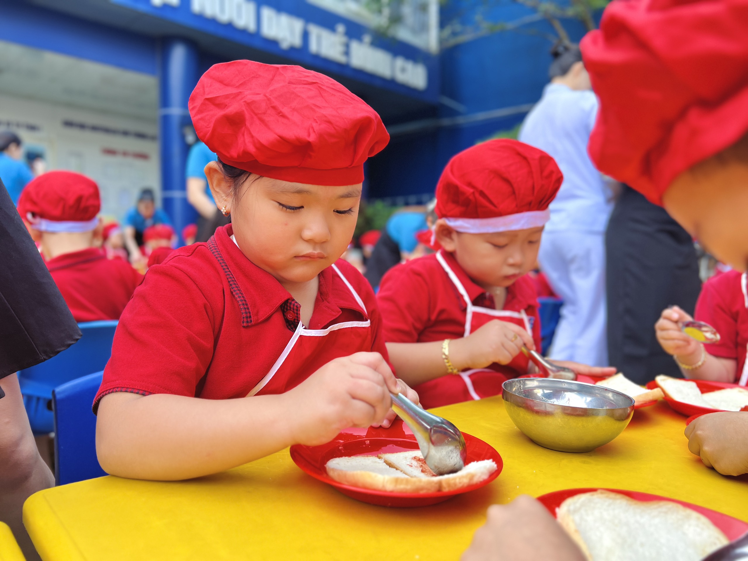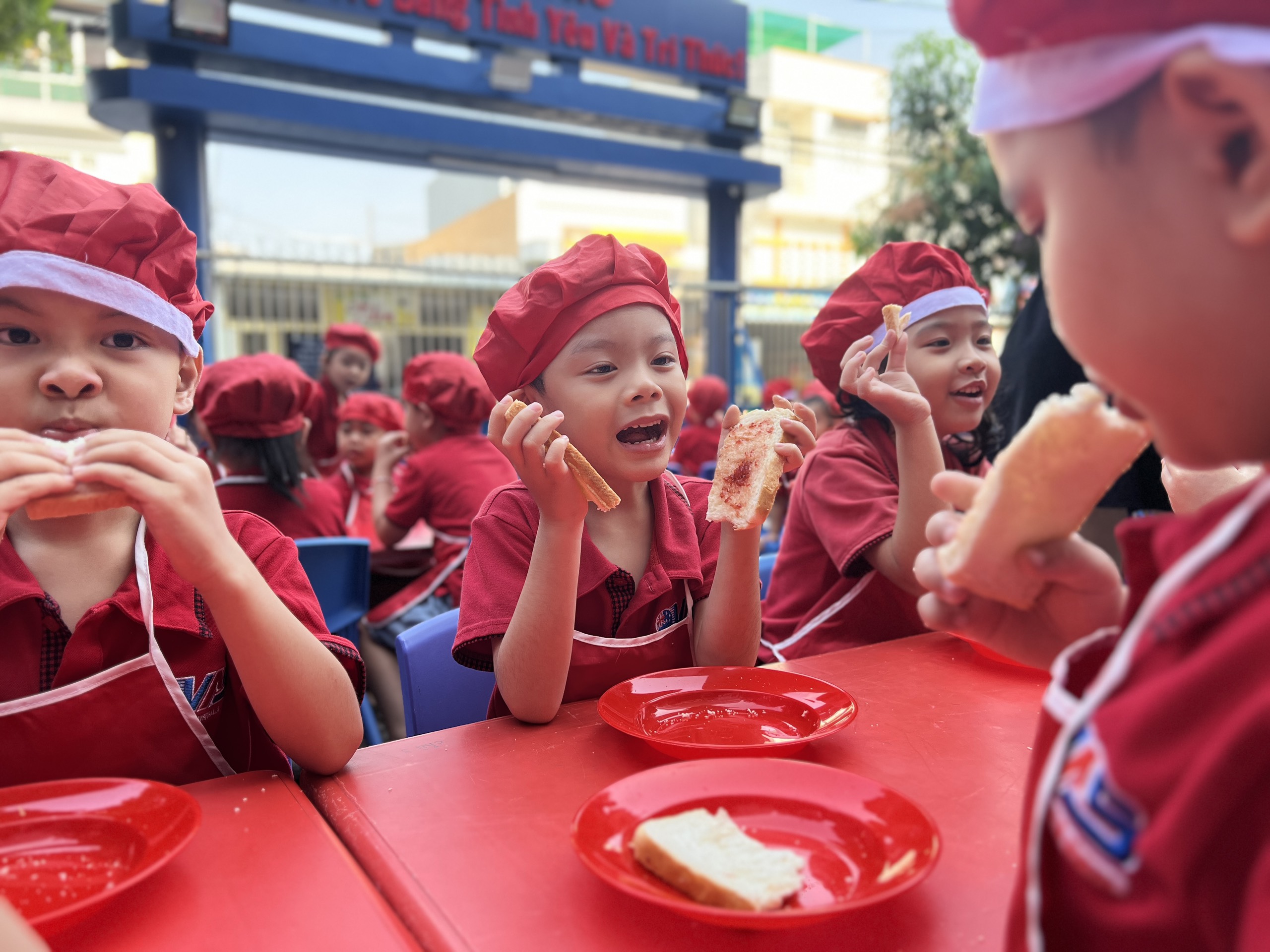 Một buổi trải nghiệm vô cùng thú vị với hoạt động làm bánh mì sandwich phết mứt dâu của các đầu bếp nhí