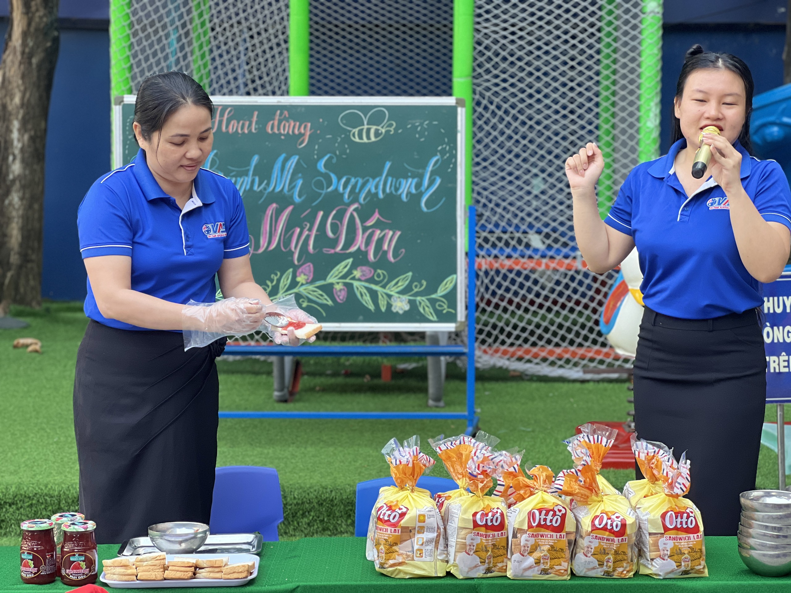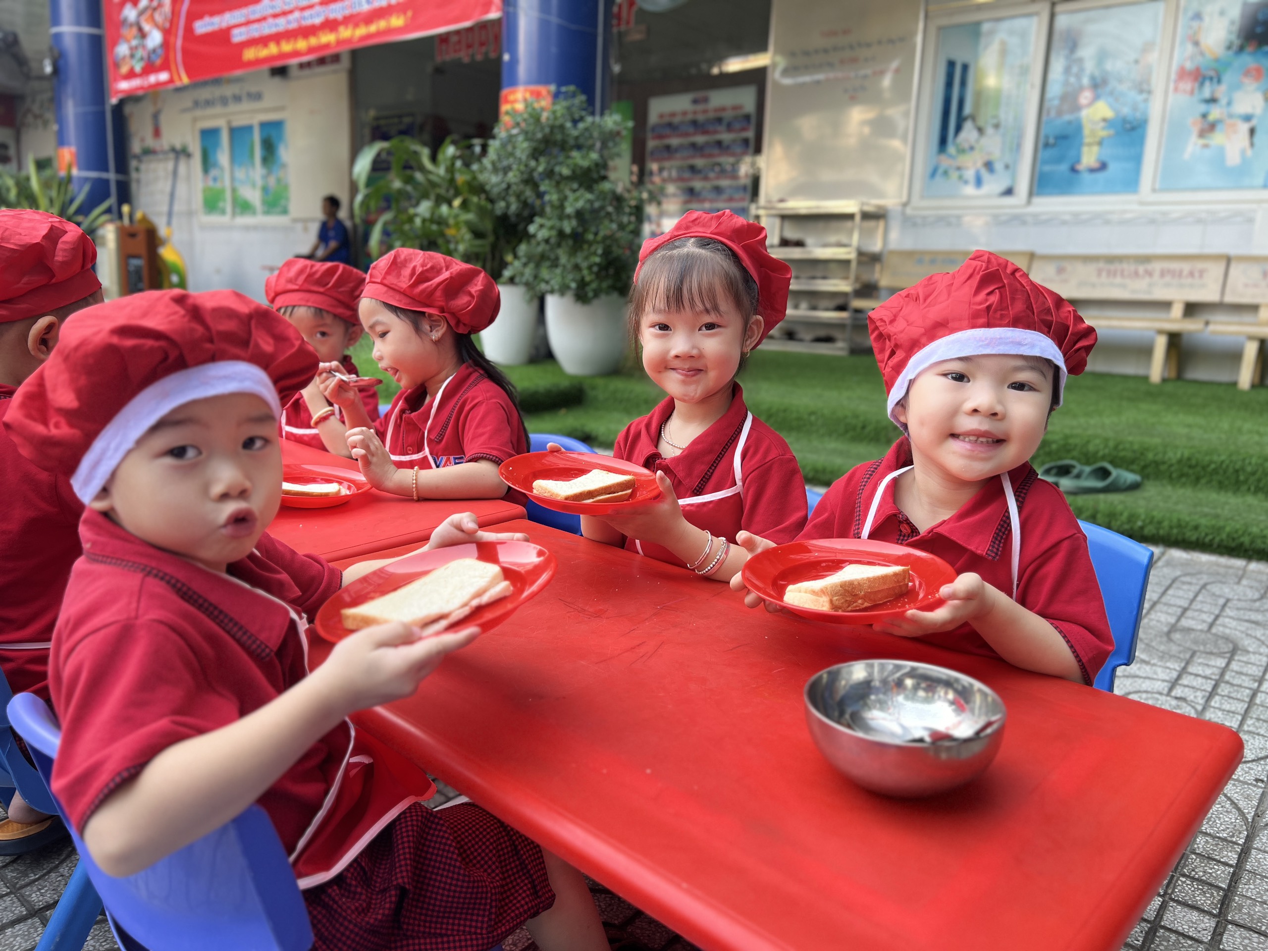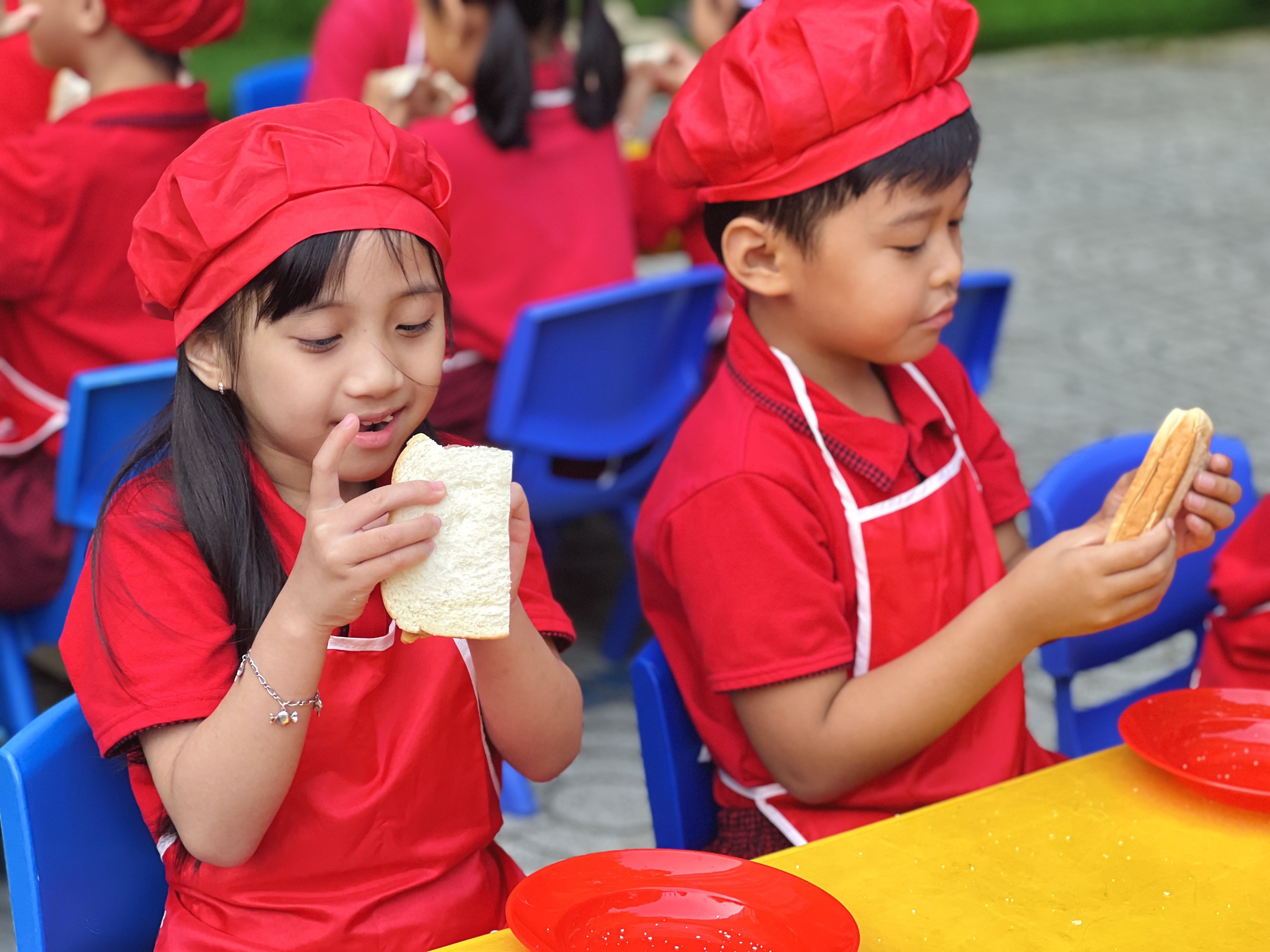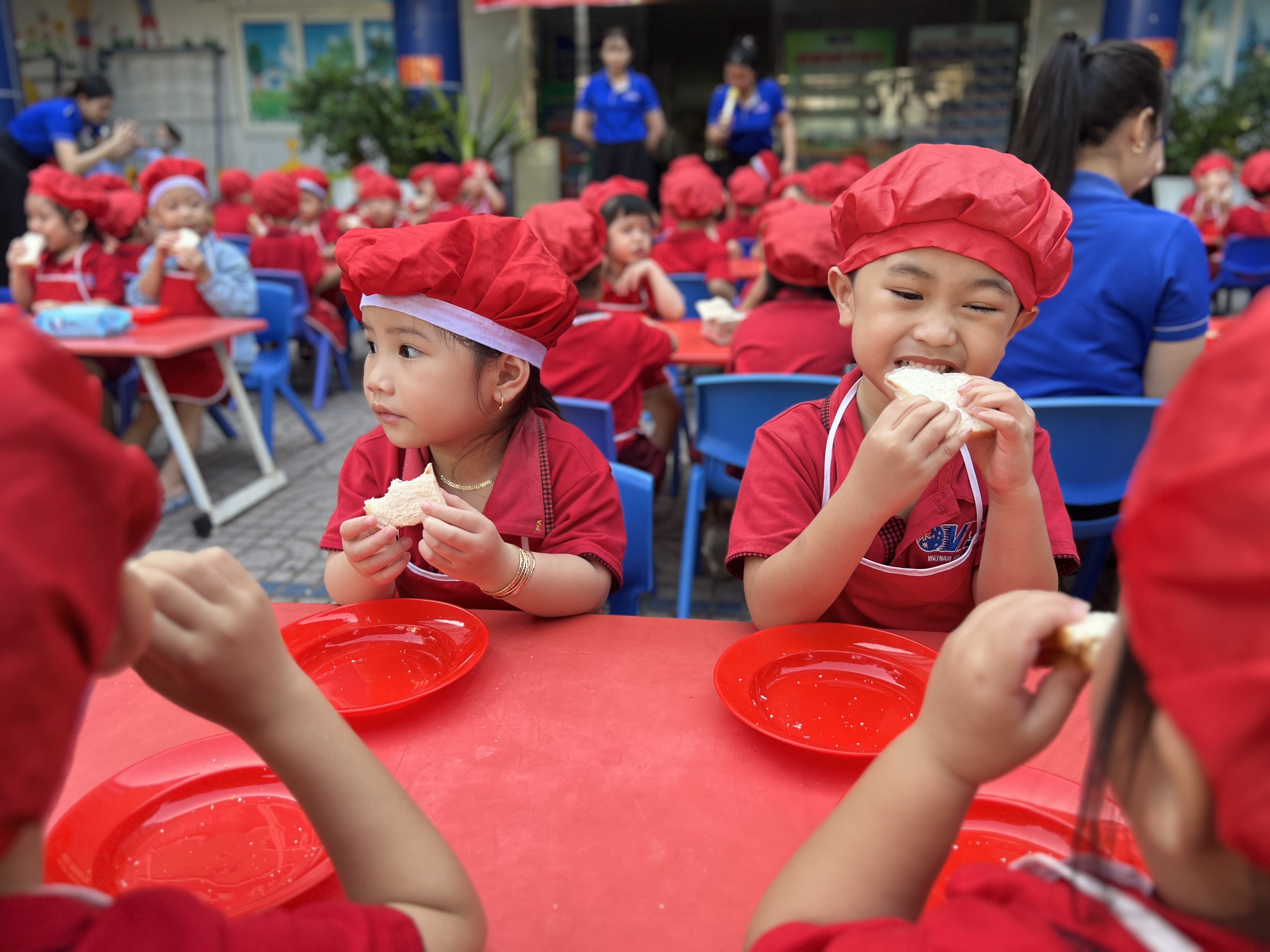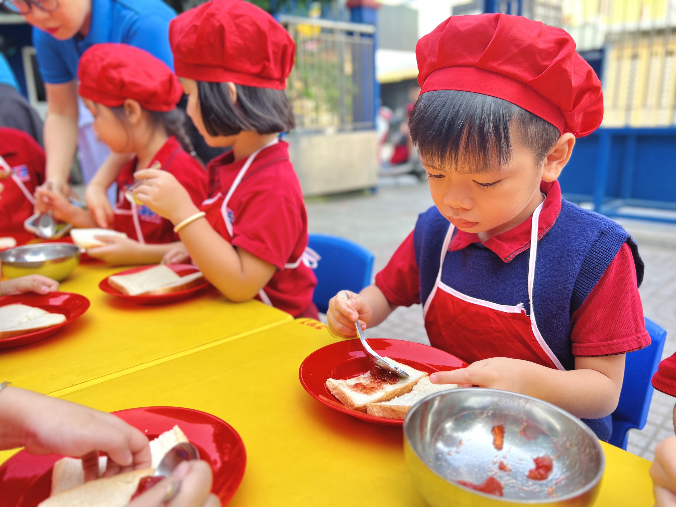 Một buổi trải nghiệm vô cùng thú vị với hoạt động làm bánh mì sandwich phết mứt dâu của các đầu bếp nhí