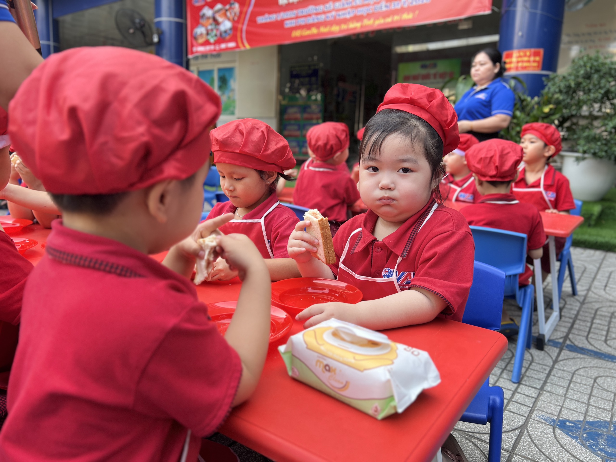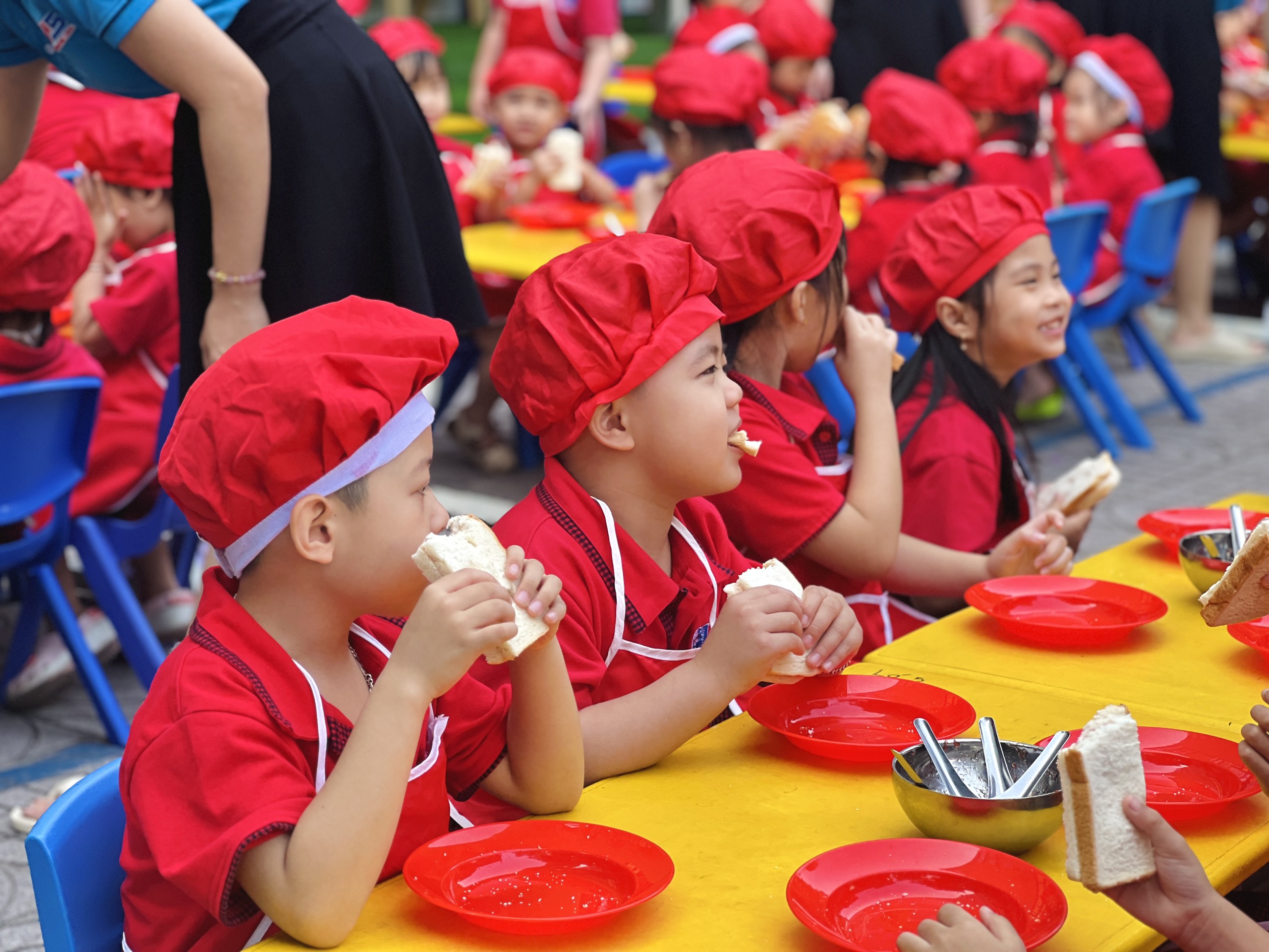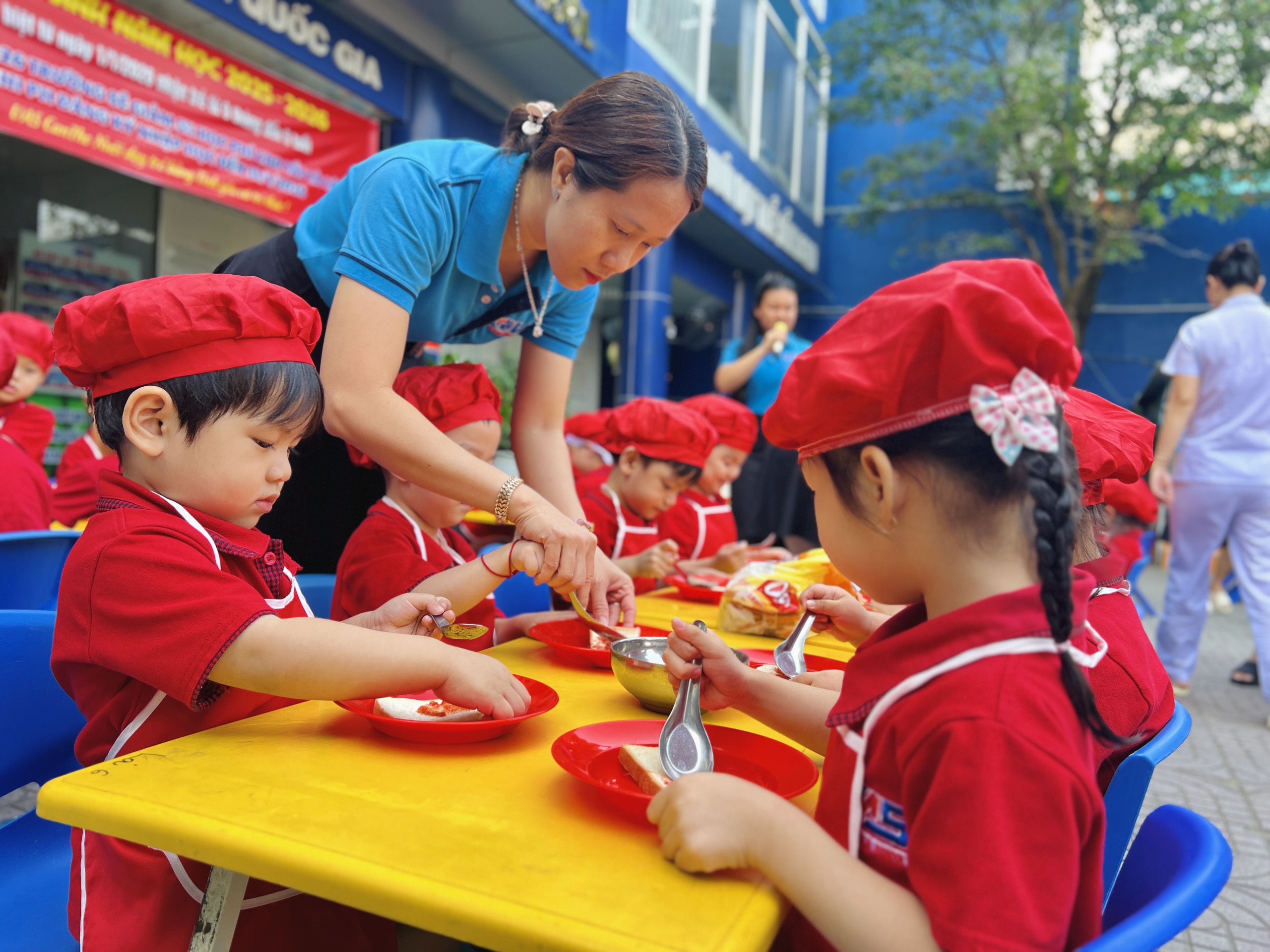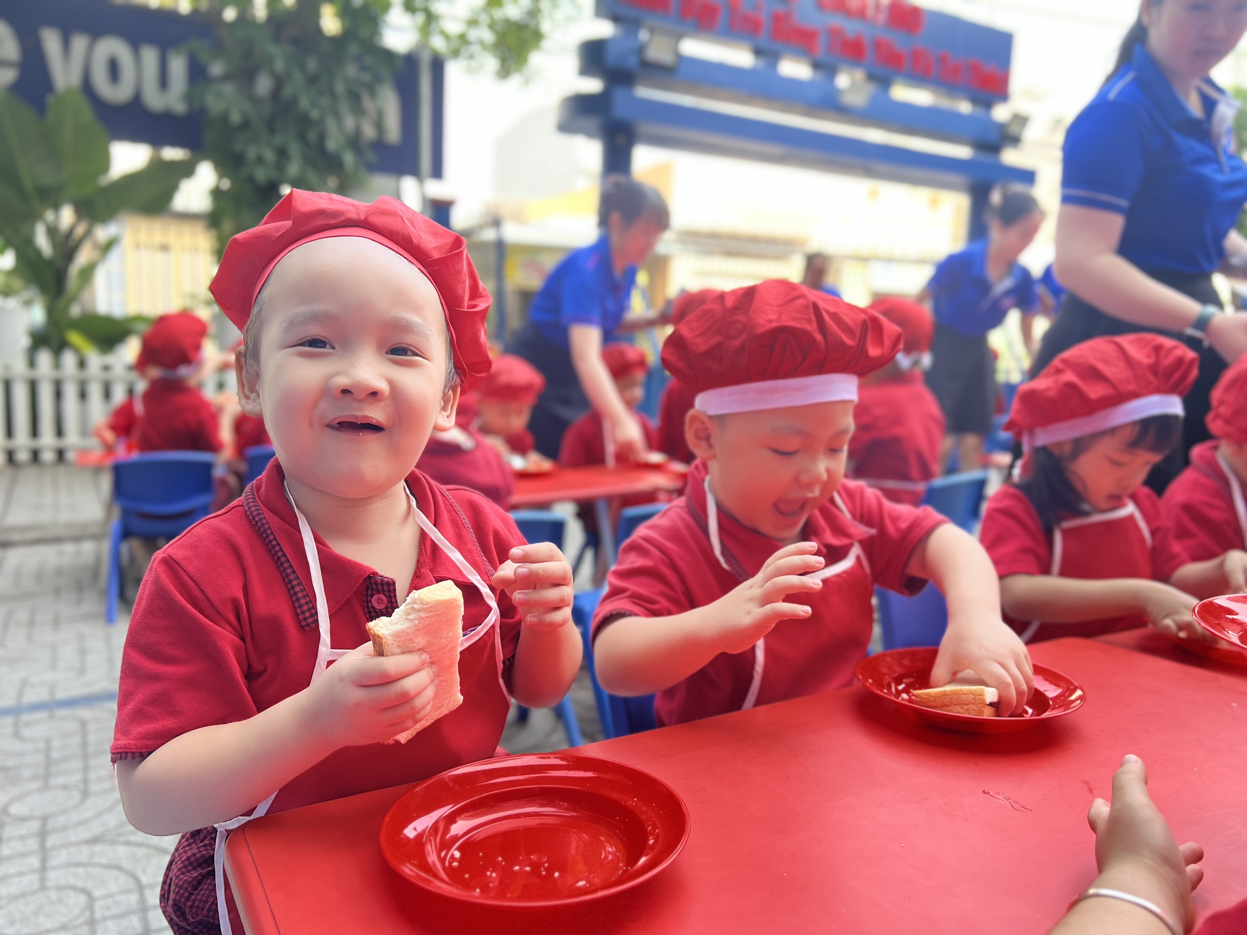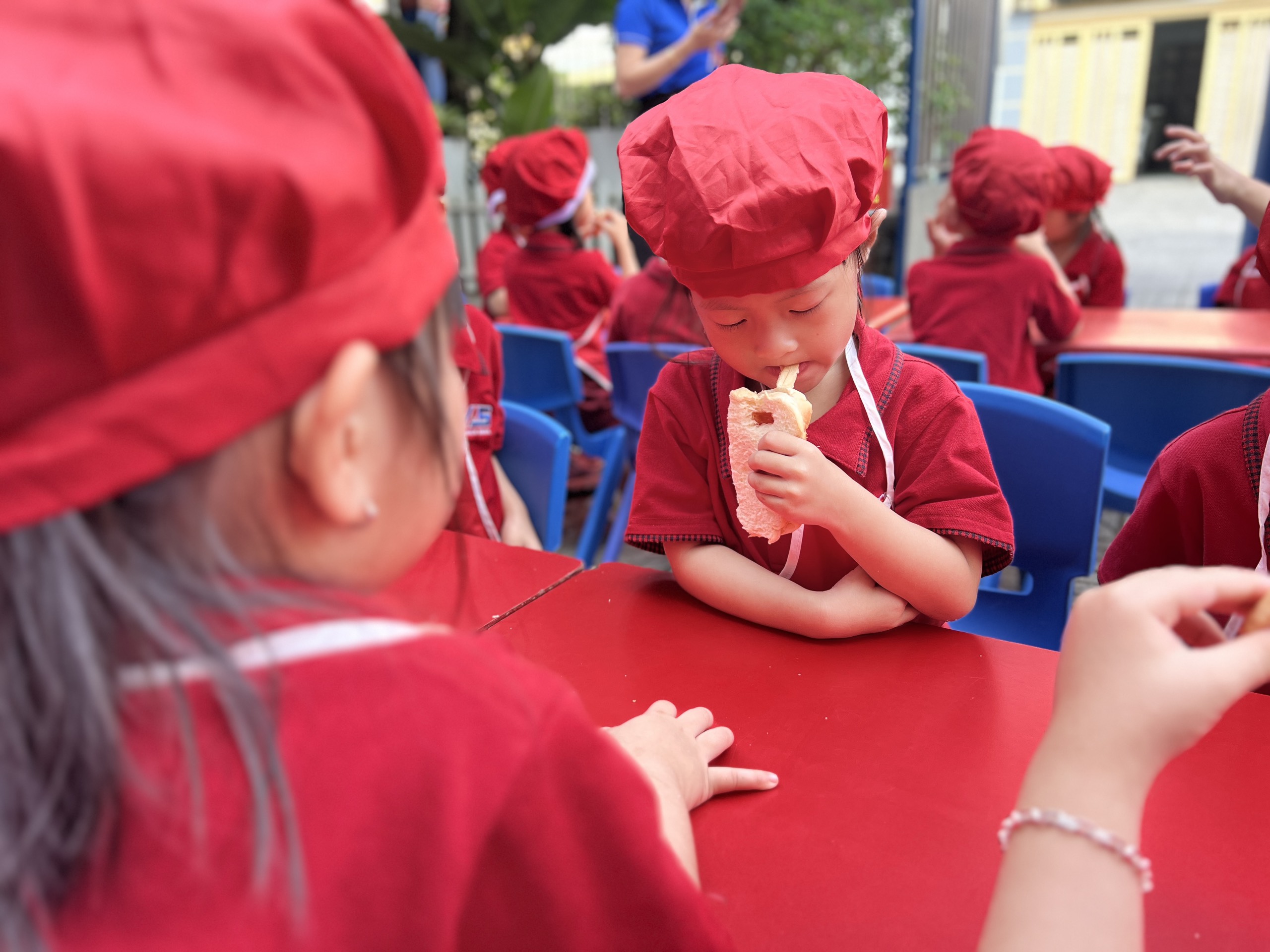 Một buổi trải nghiệm vô cùng thú vị với hoạt động làm bánh mì sandwich phết mứt dâu của các đầu bếp nhí