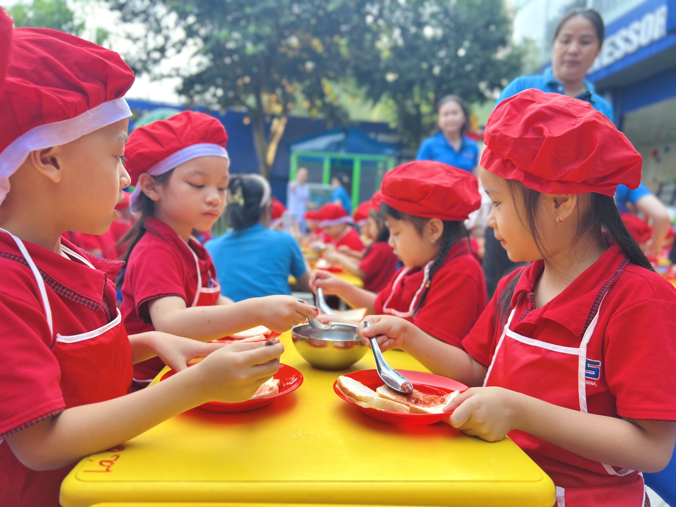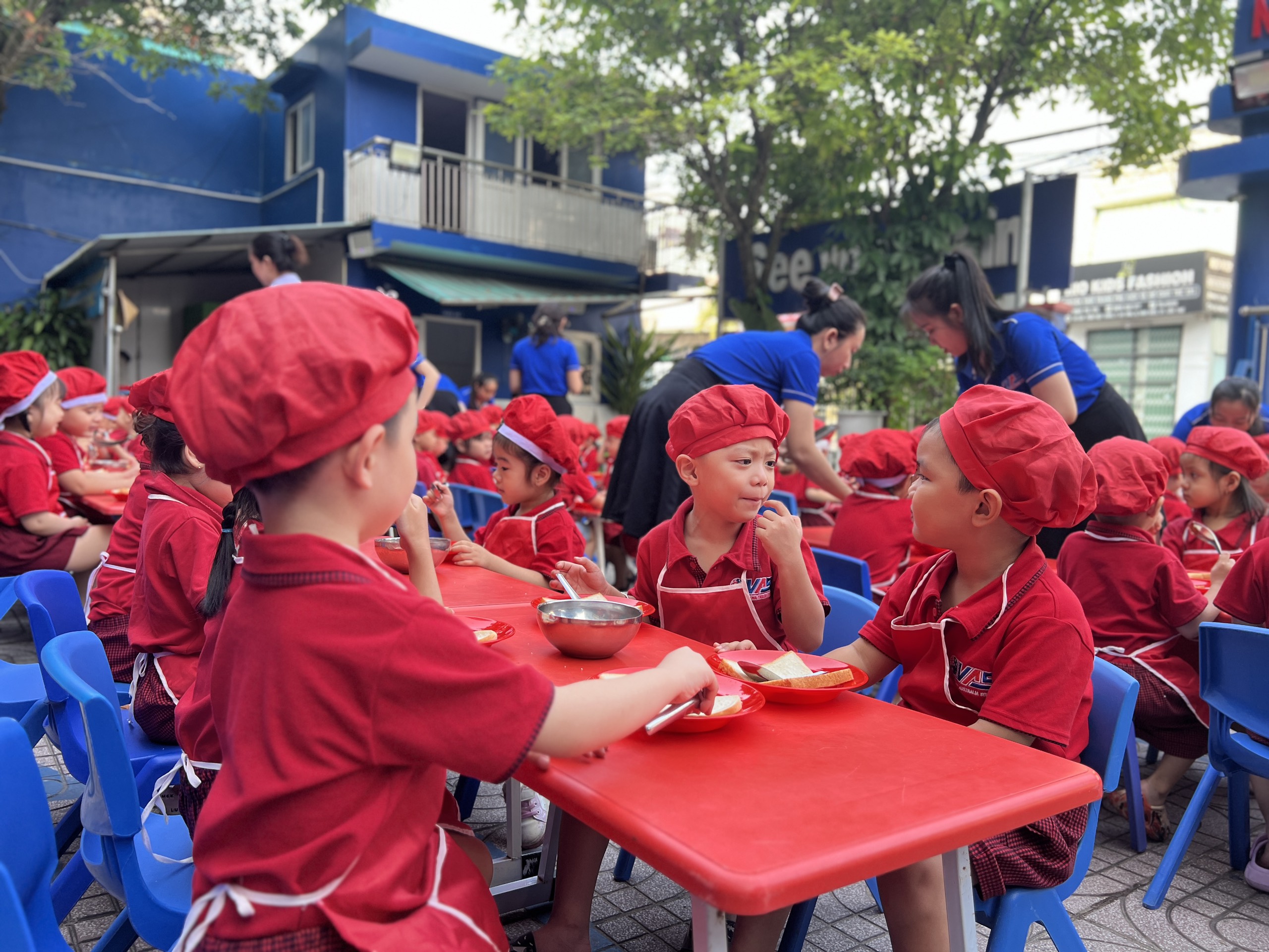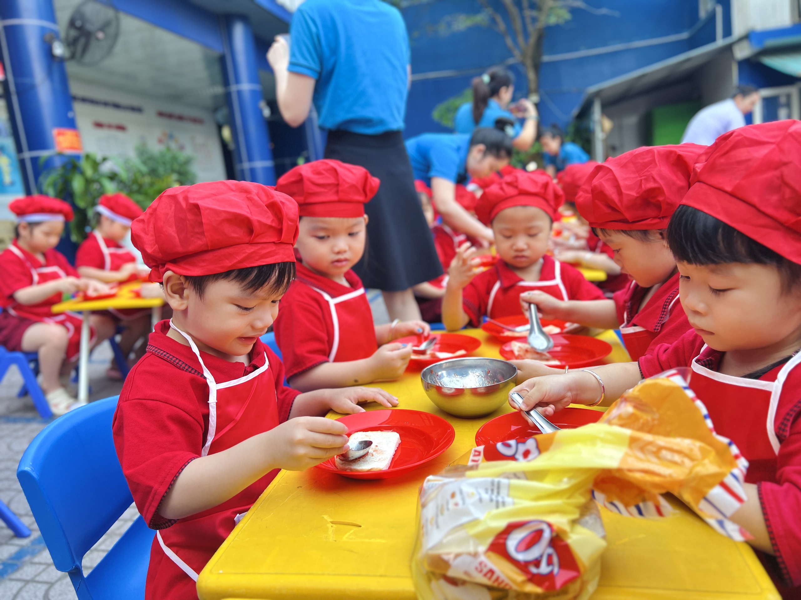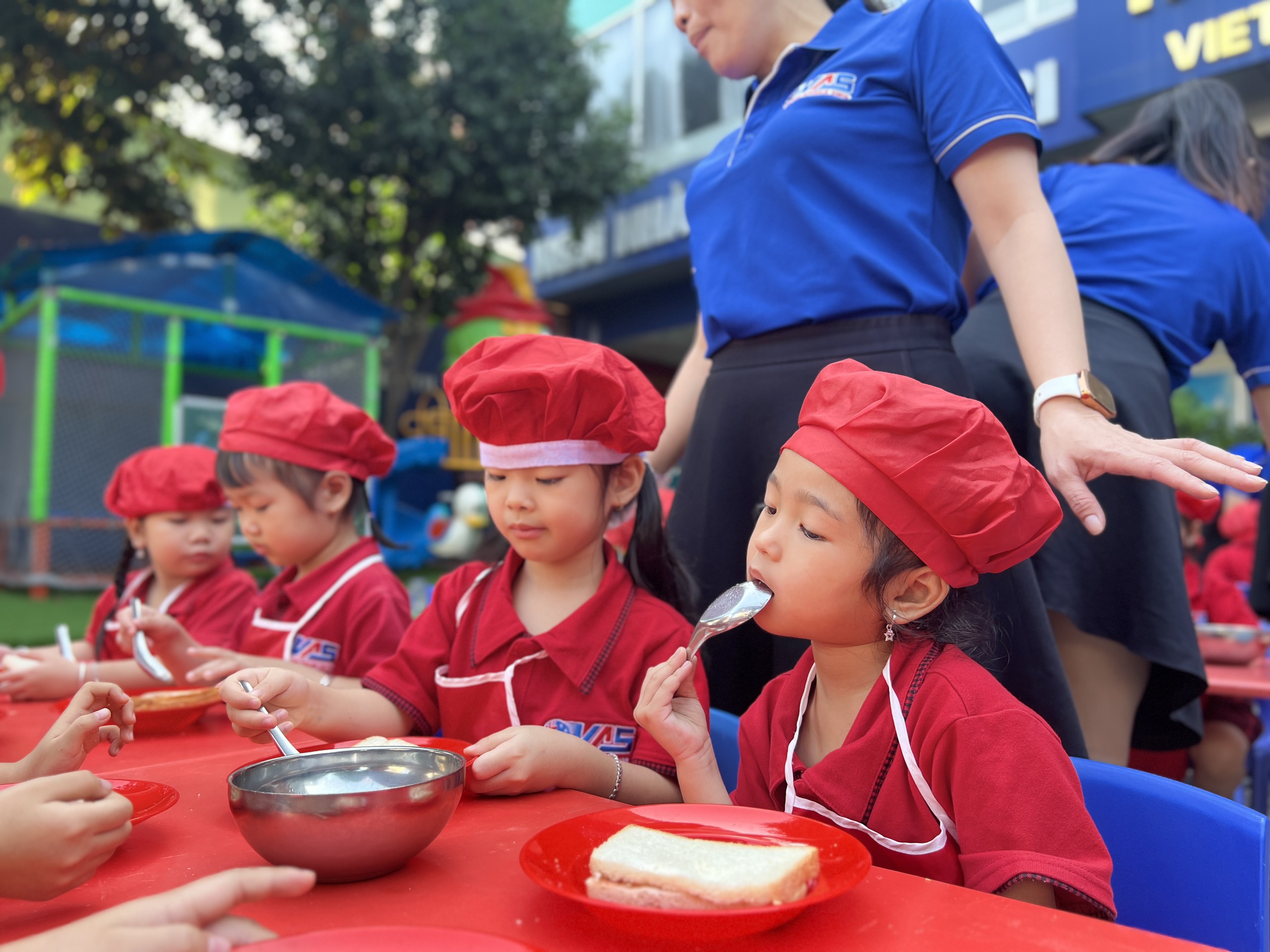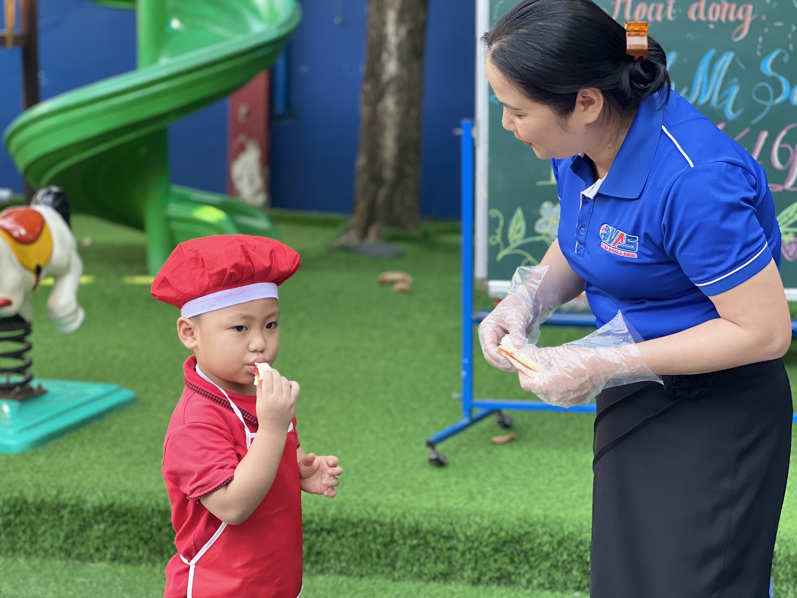 Một buổi trải nghiệm vô cùng thú vị với hoạt động làm bánh mì sandwich phết mứt dâu của các đầu bếp nhí