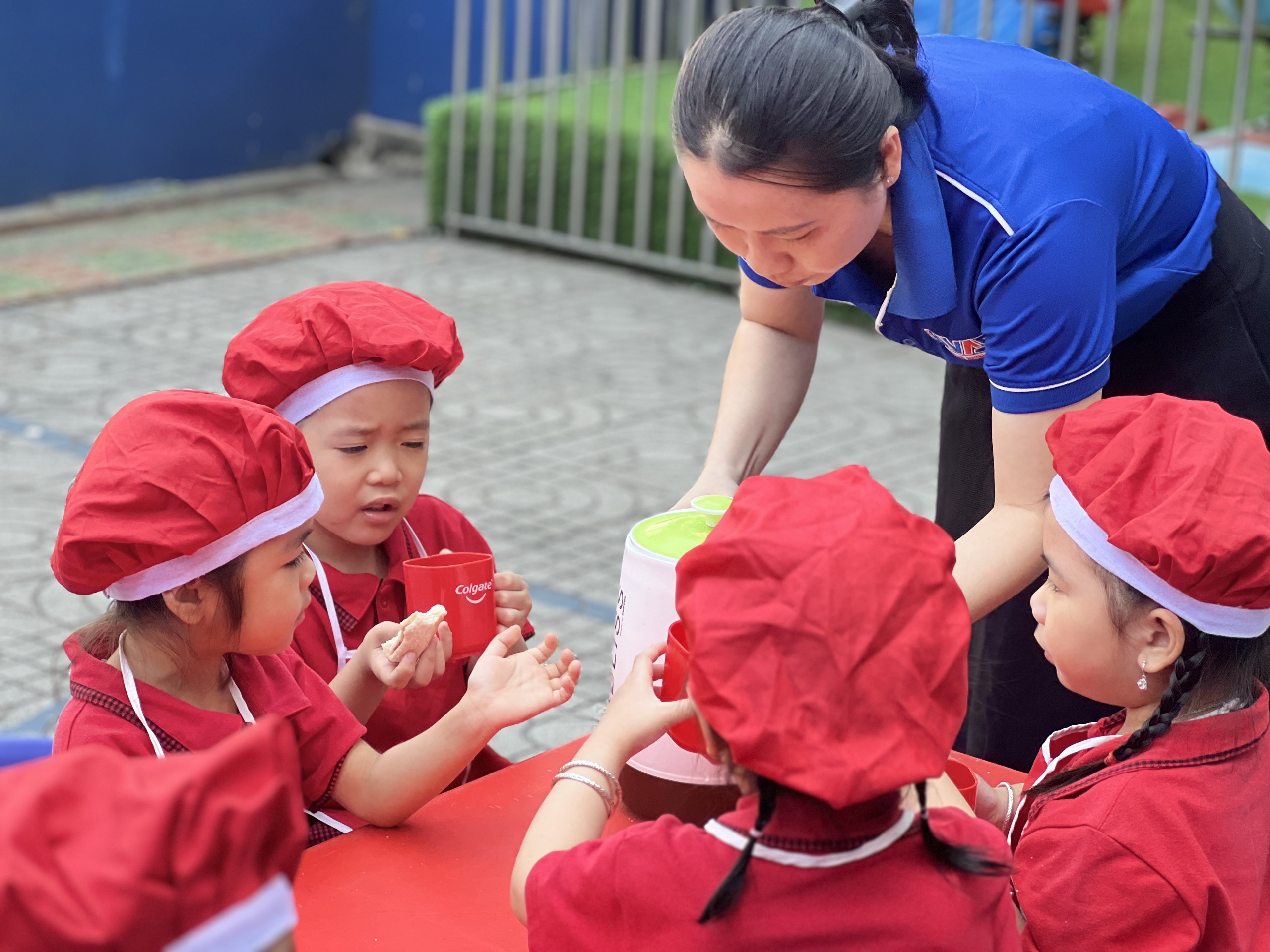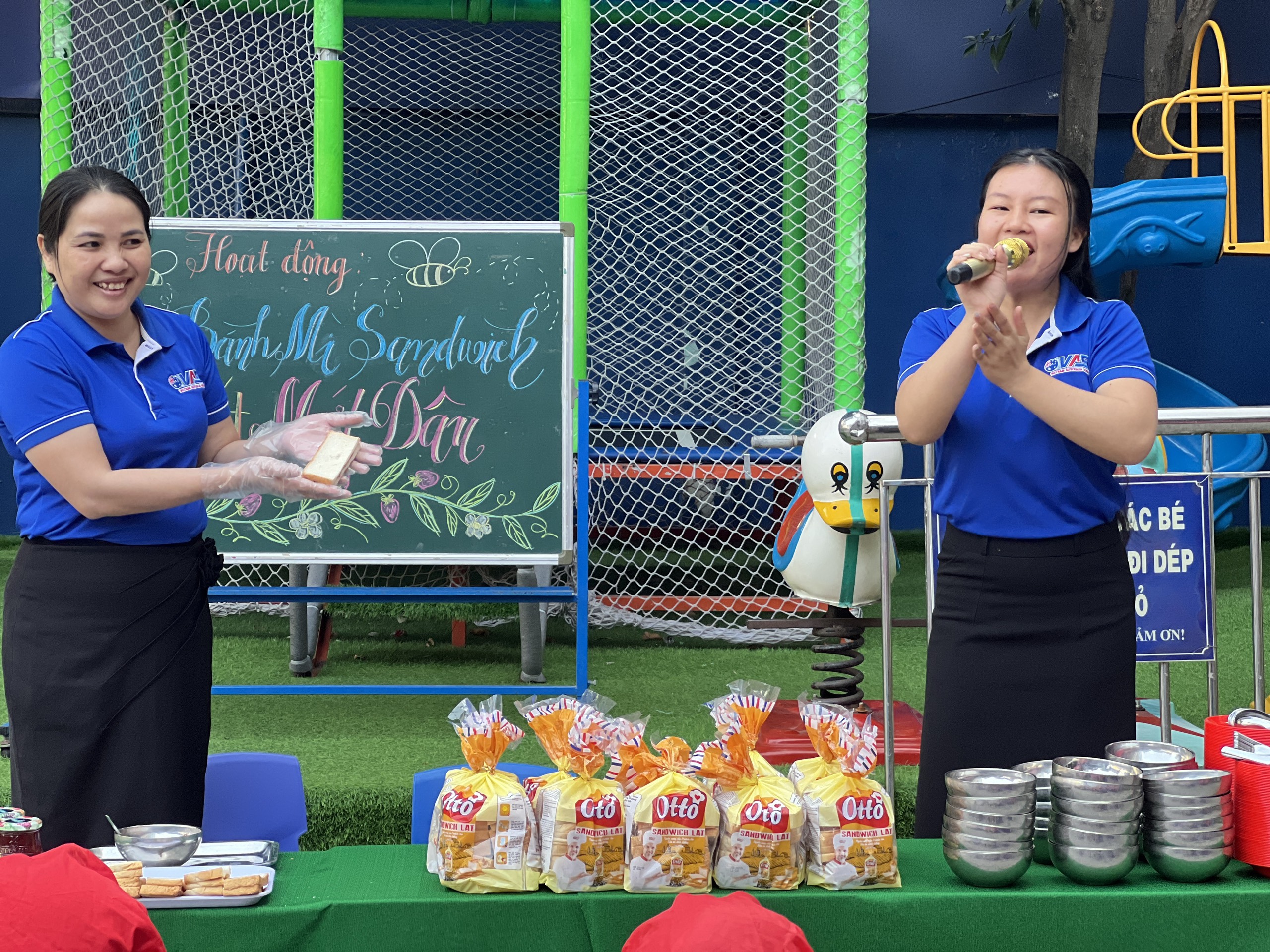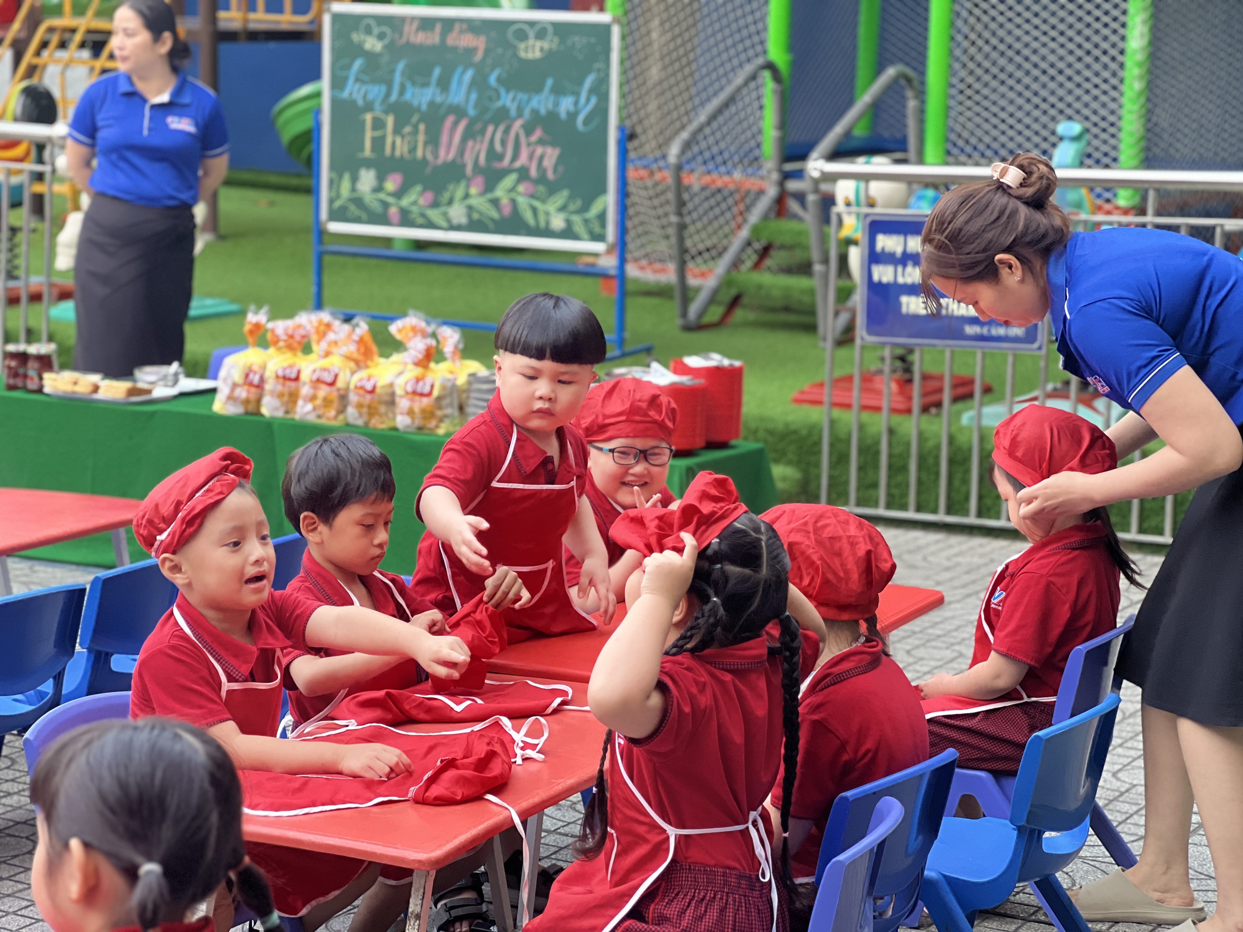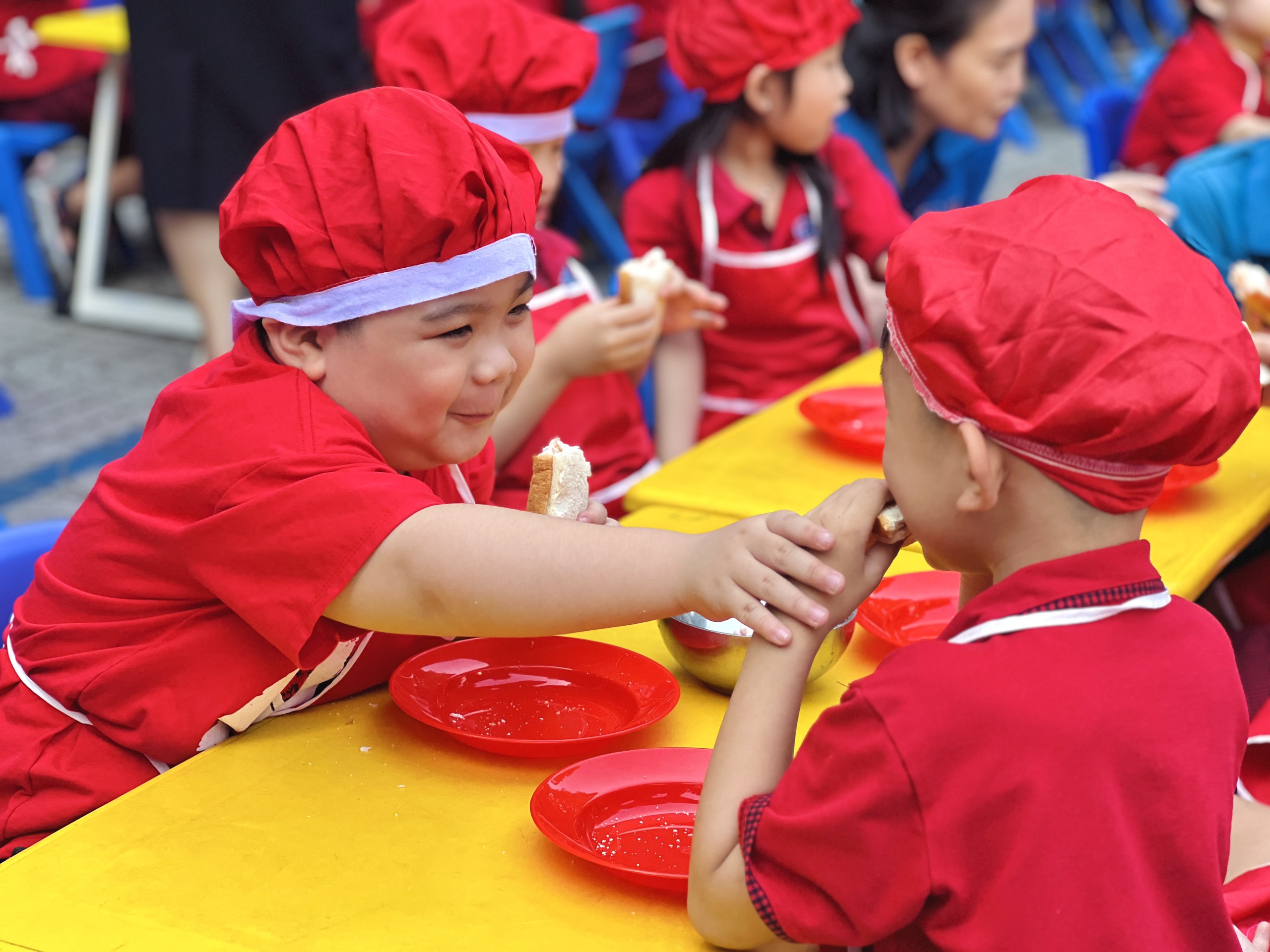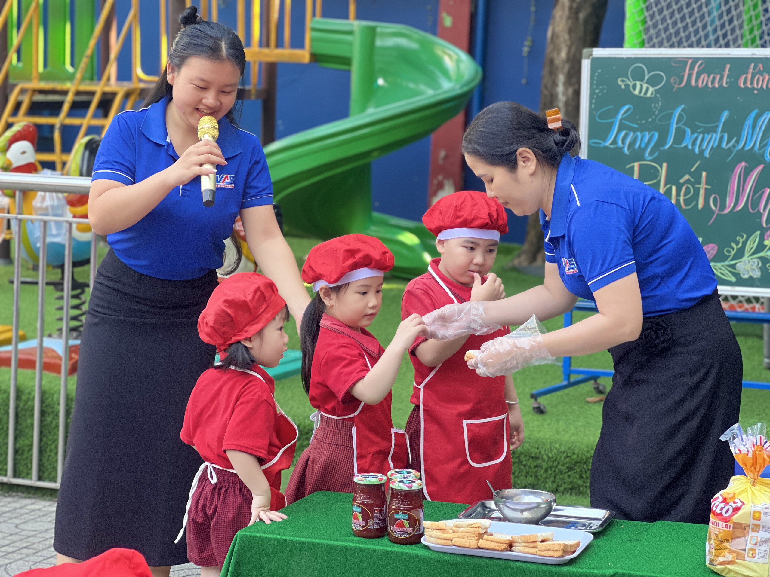 Một buổi trải nghiệm vô cùng thú vị với hoạt động làm bánh mì sandwich phết mứt dâu của các đầu bếp nhí