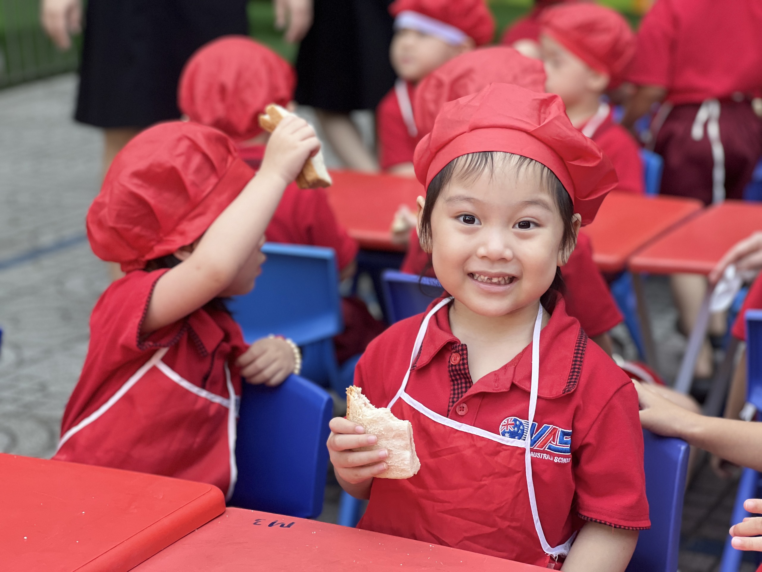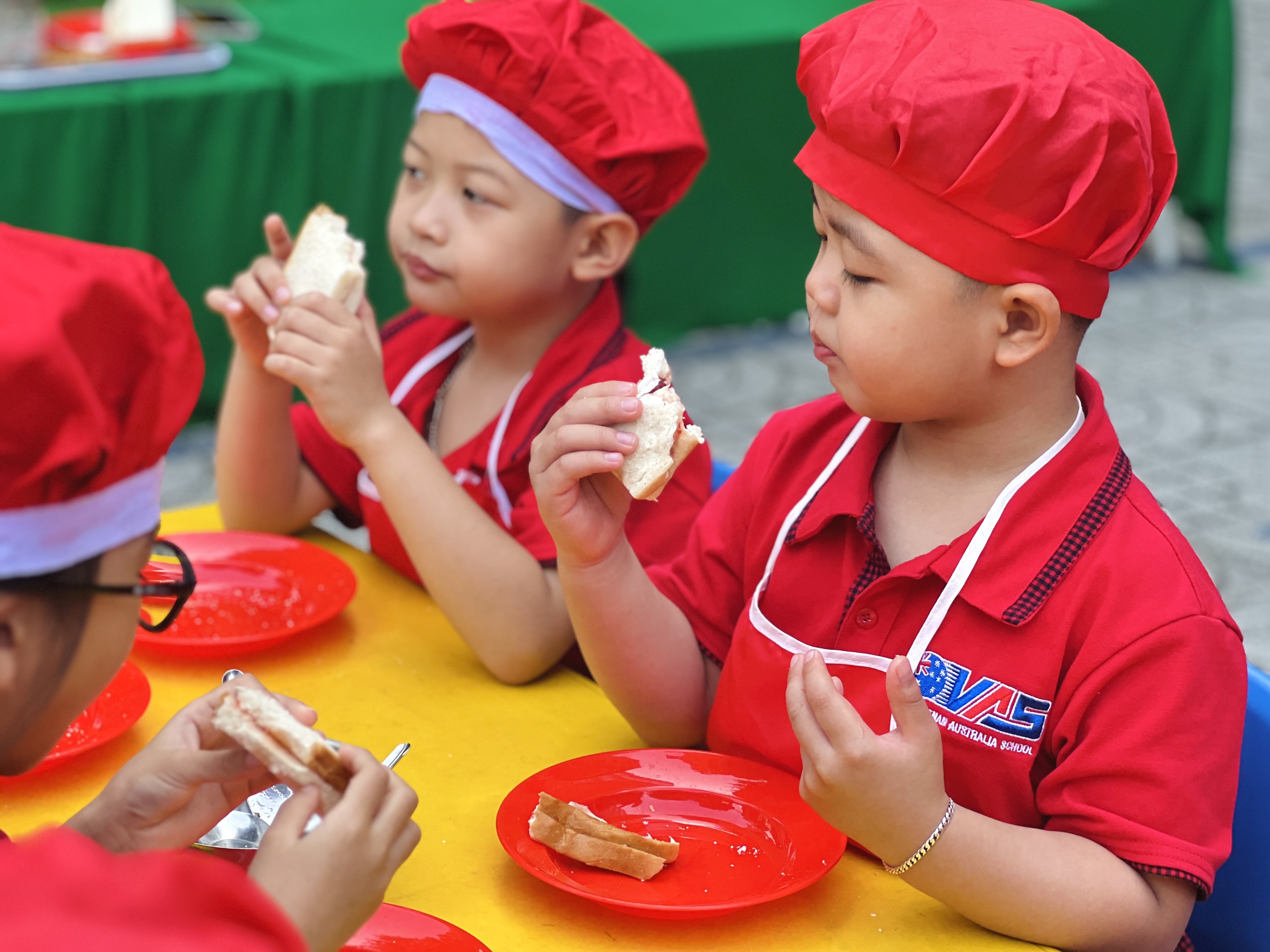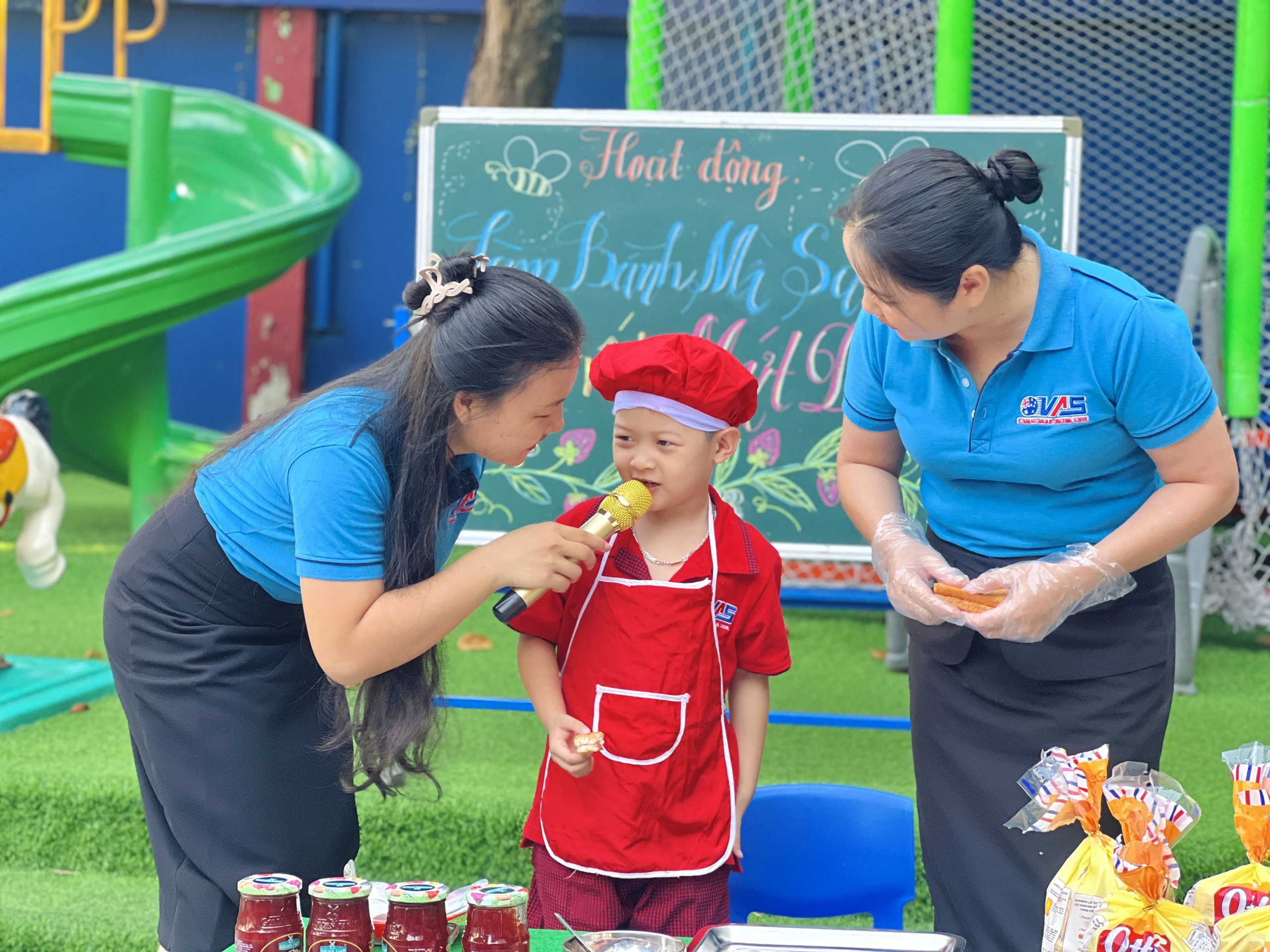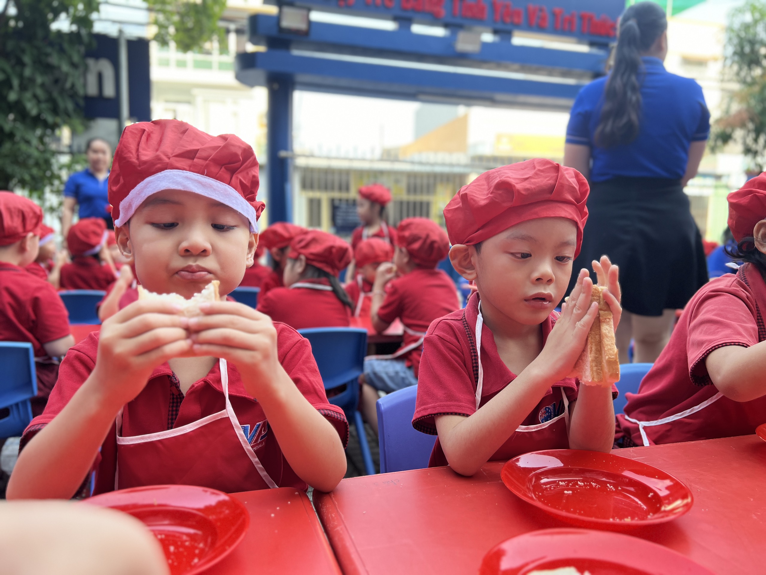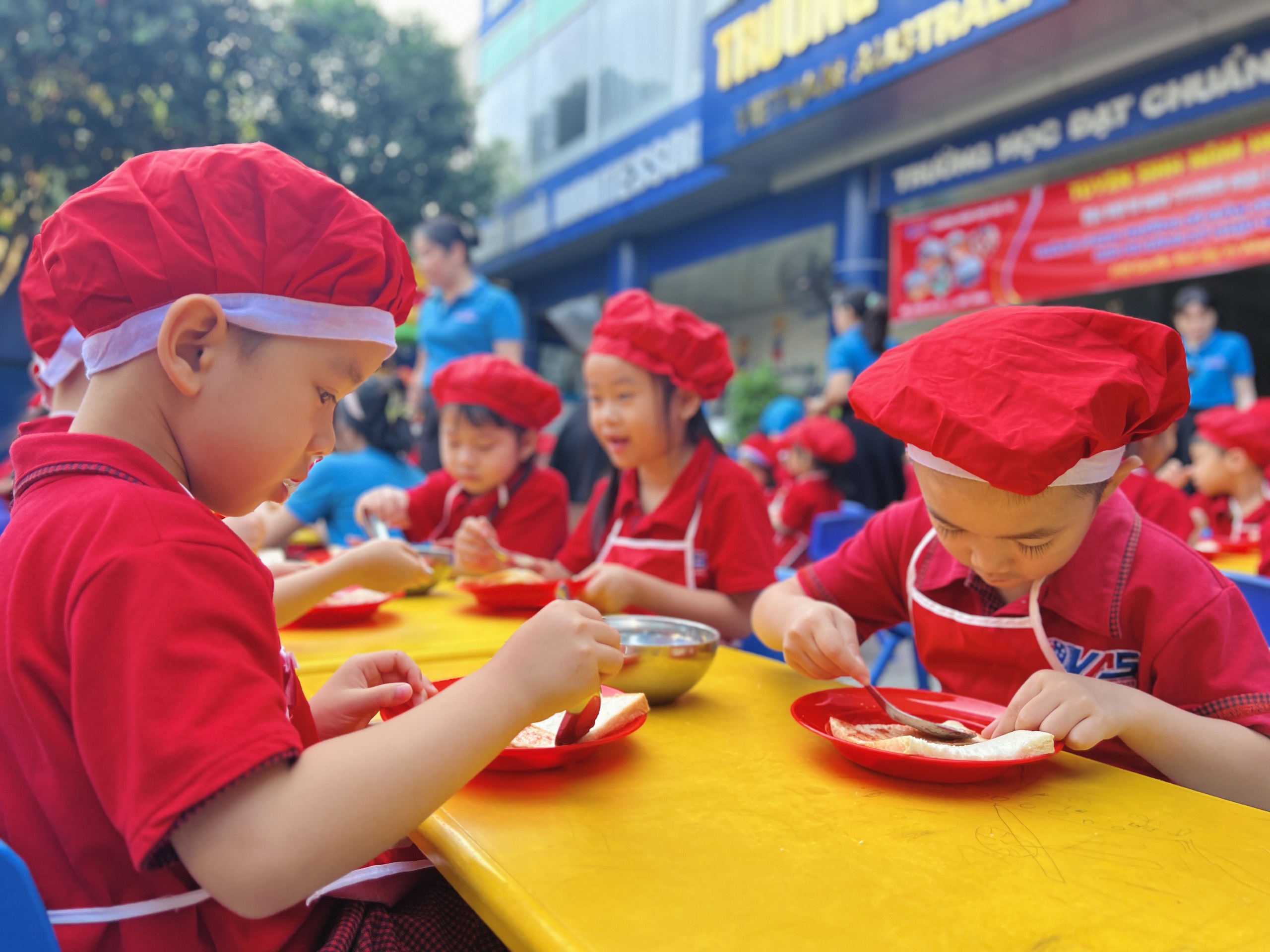 Một buổi trải nghiệm vô cùng thú vị với hoạt động làm bánh mì sandwich phết mứt dâu của các đầu bếp nhí