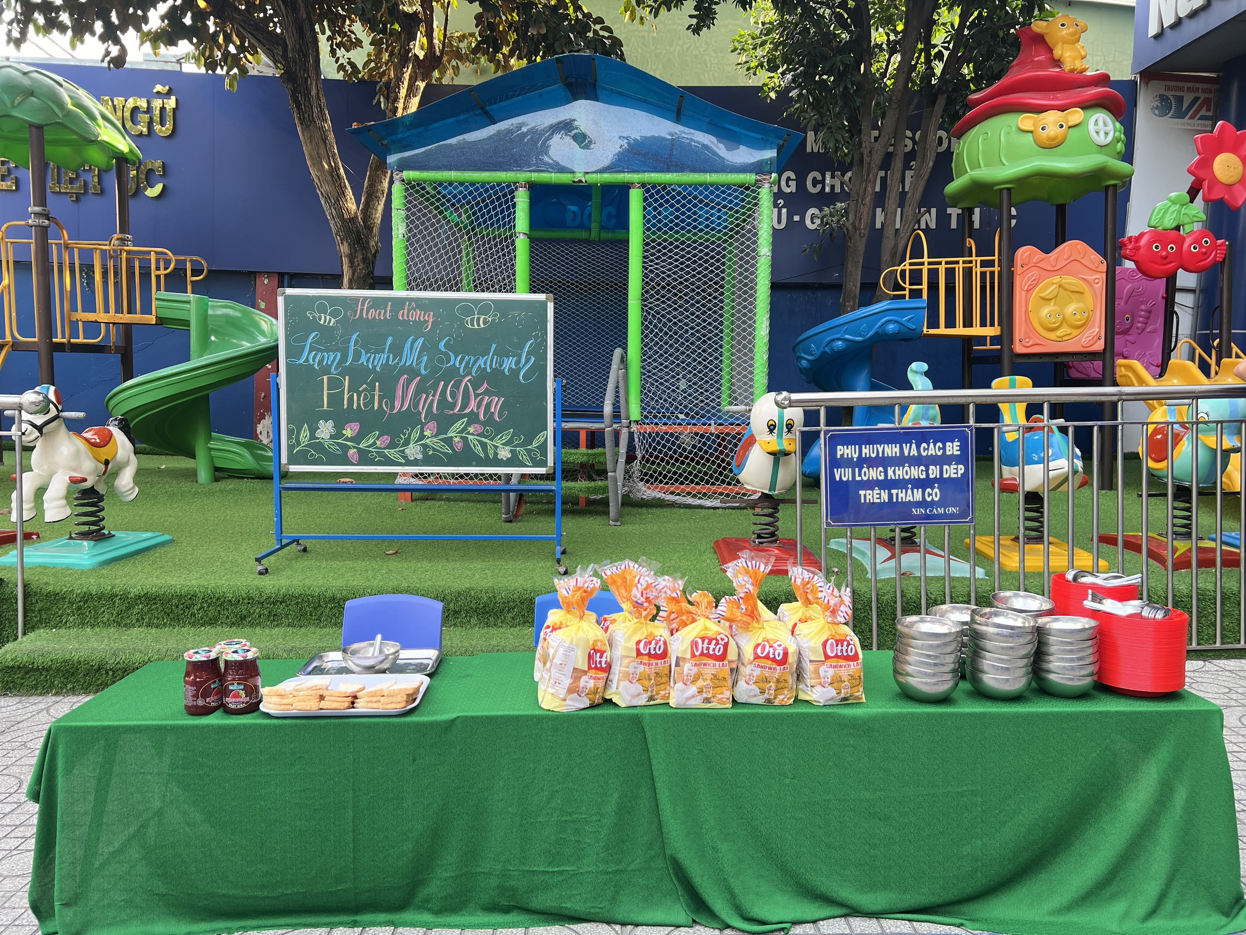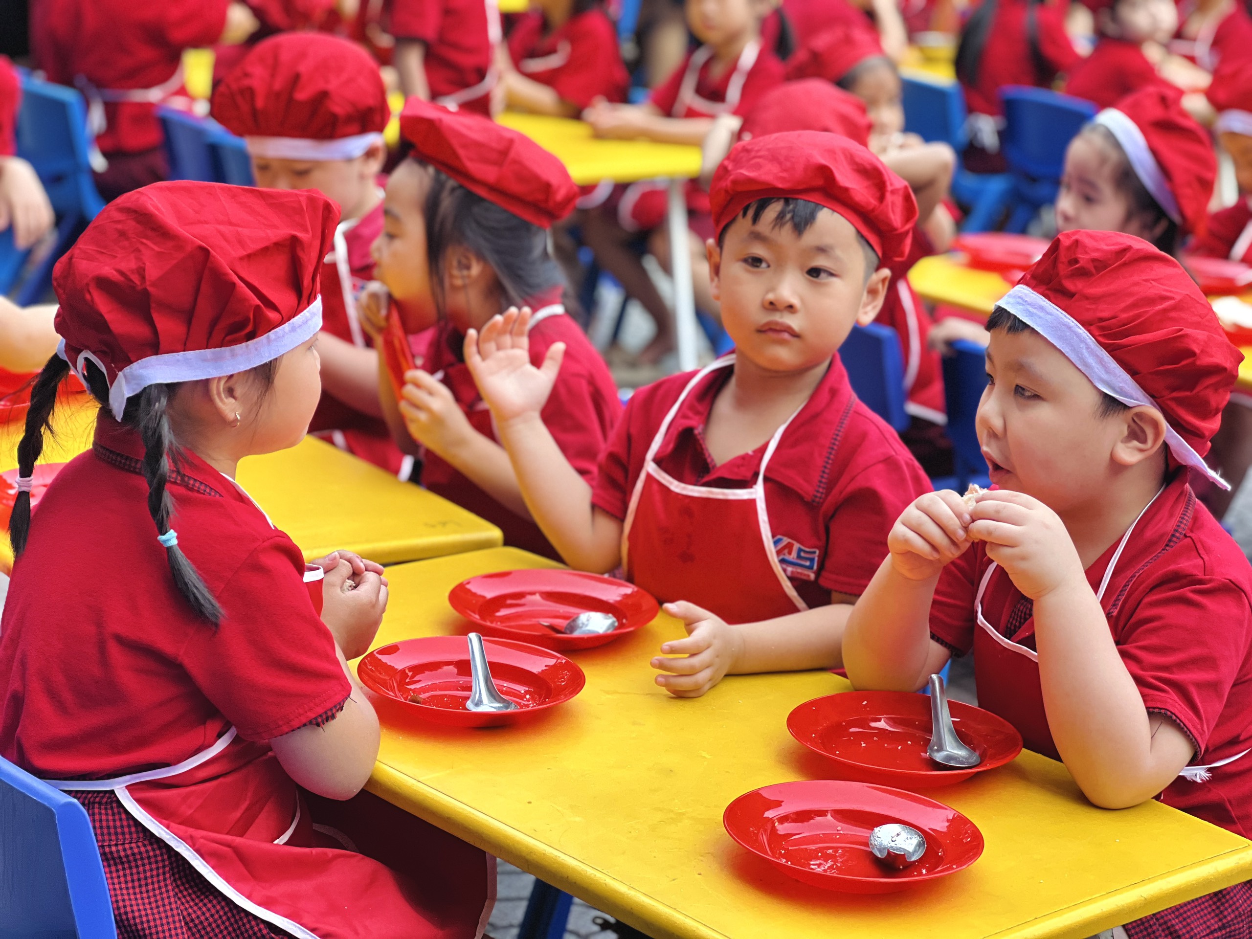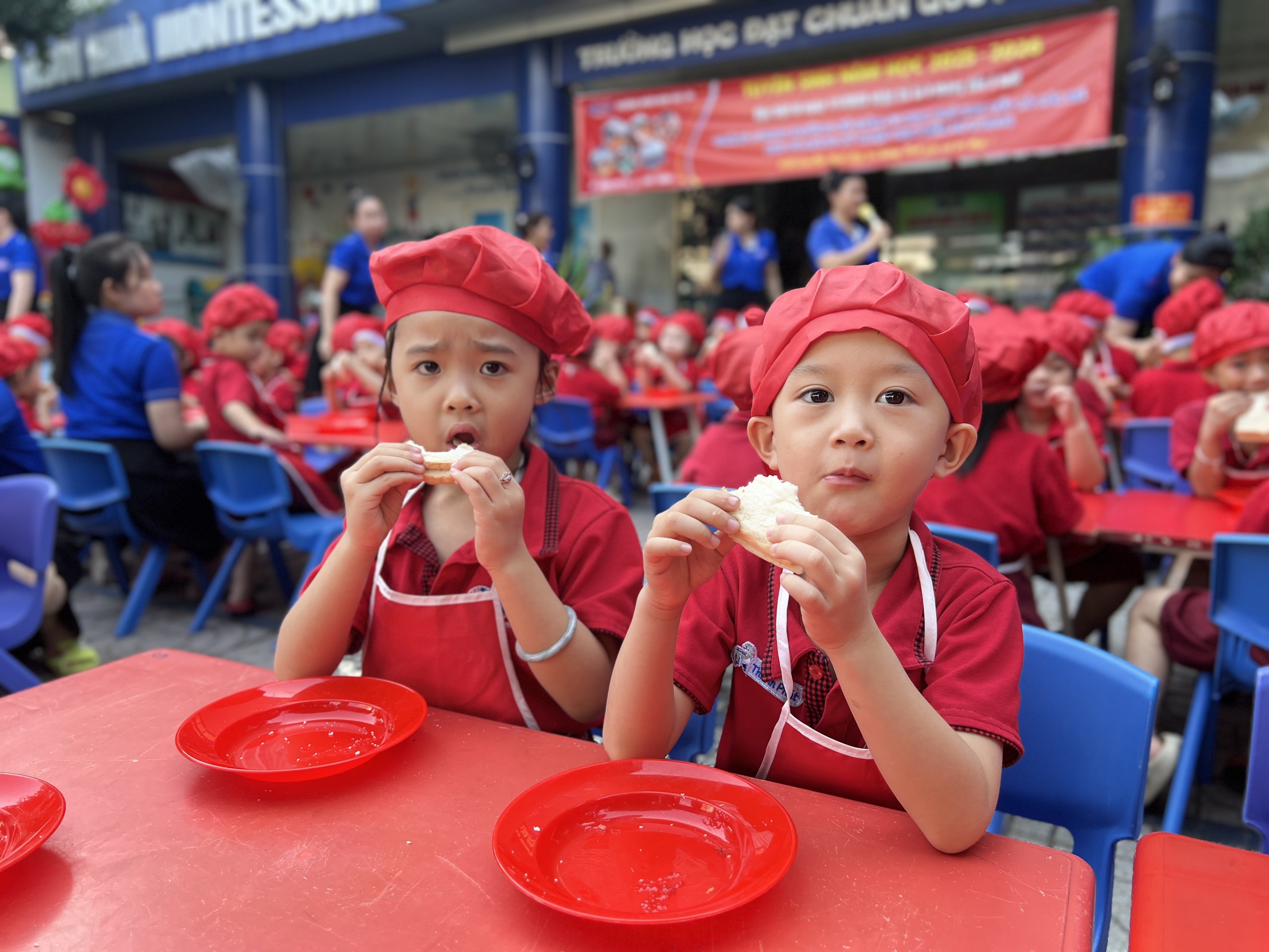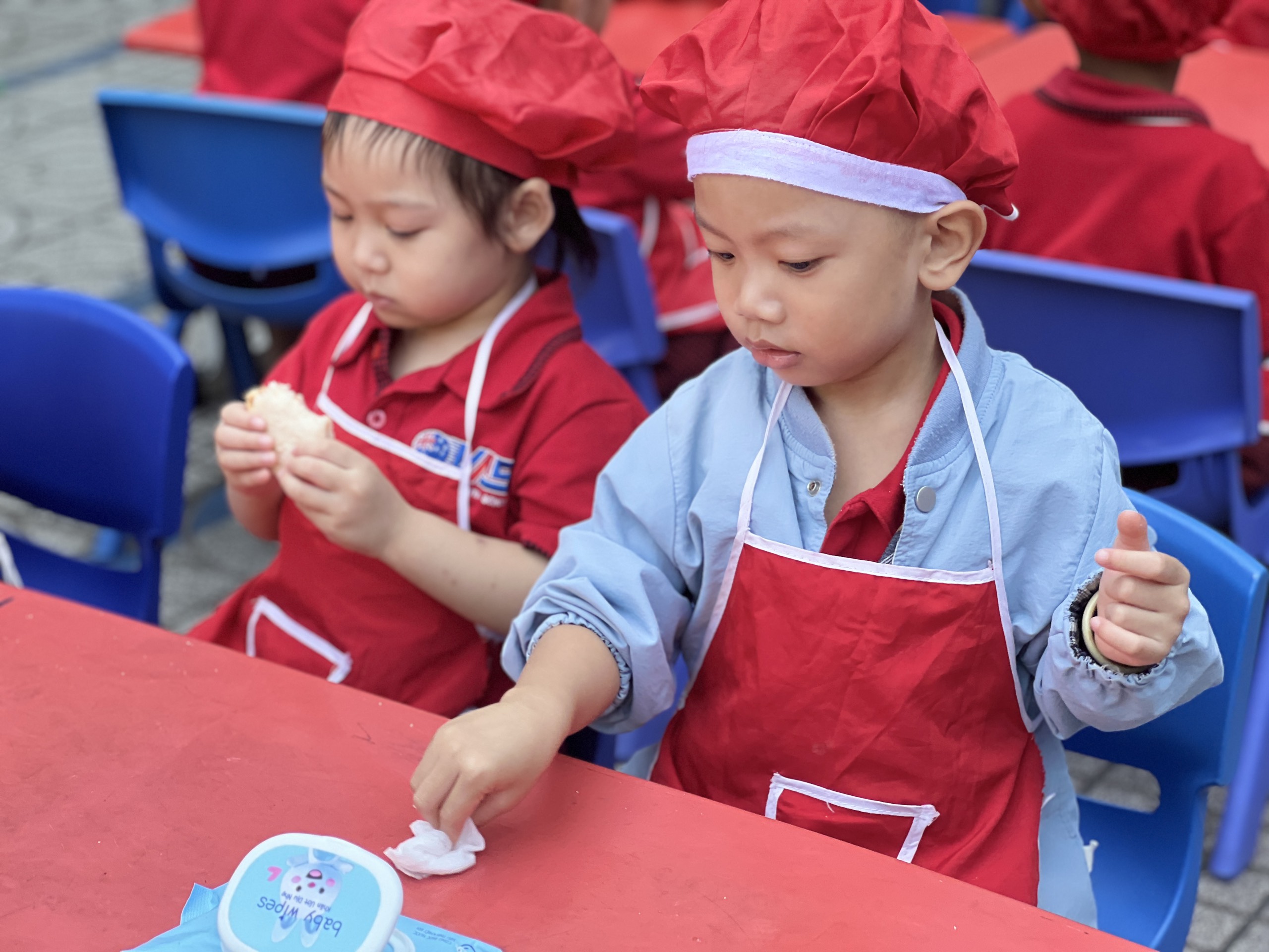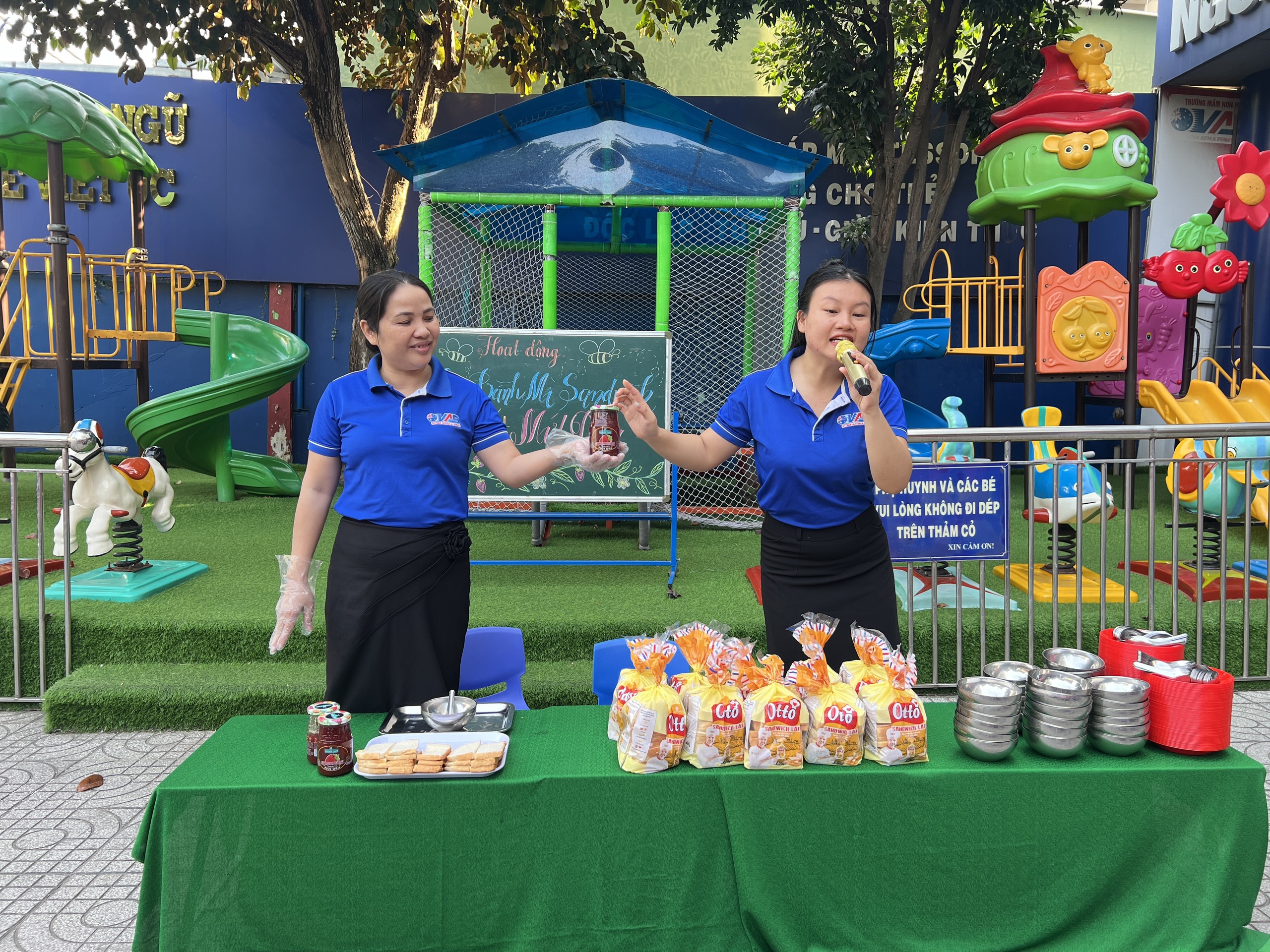 Một buổi trải nghiệm vô cùng thú vị với hoạt động làm bánh mì sandwich phết mứt dâu của các đầu bếp nhí