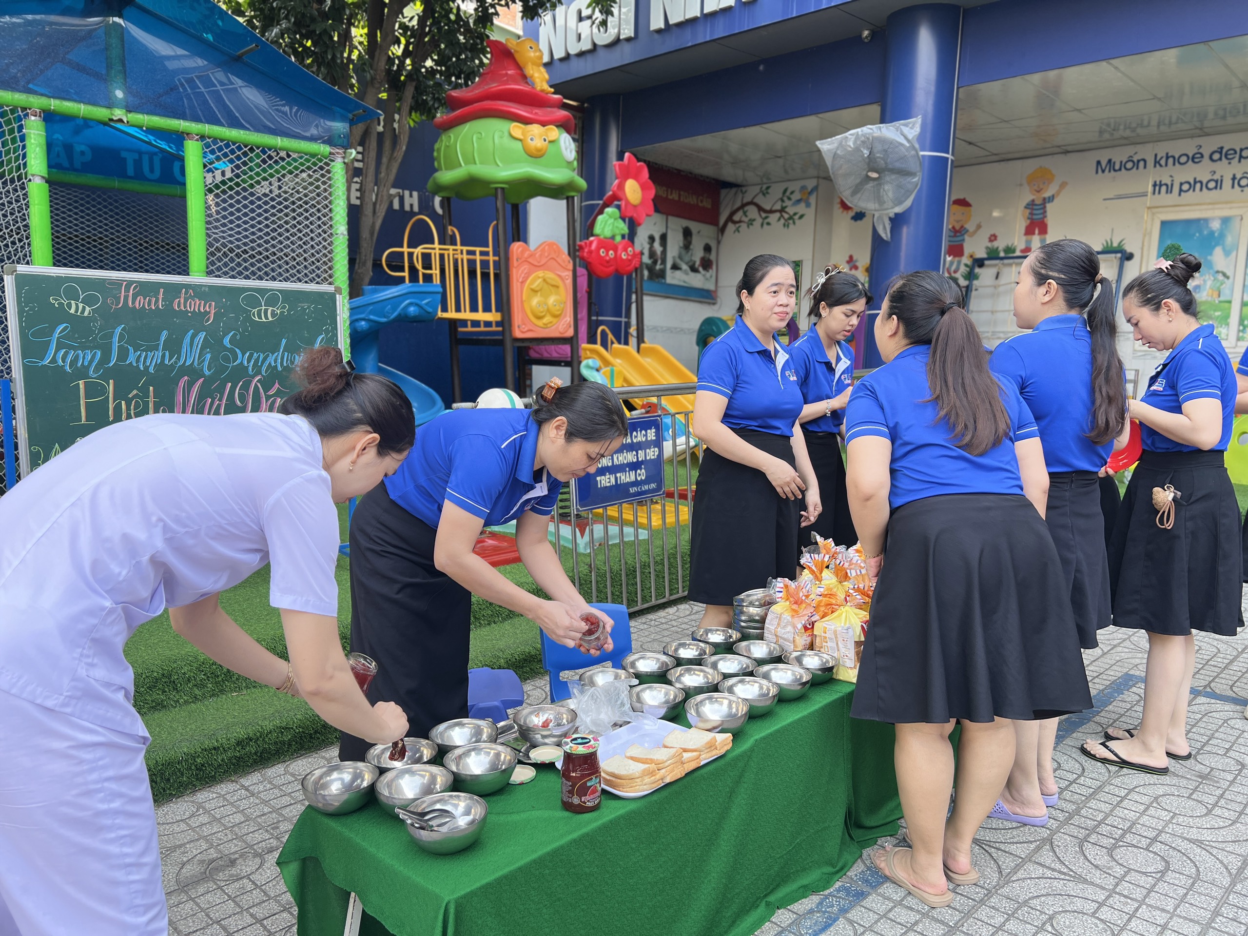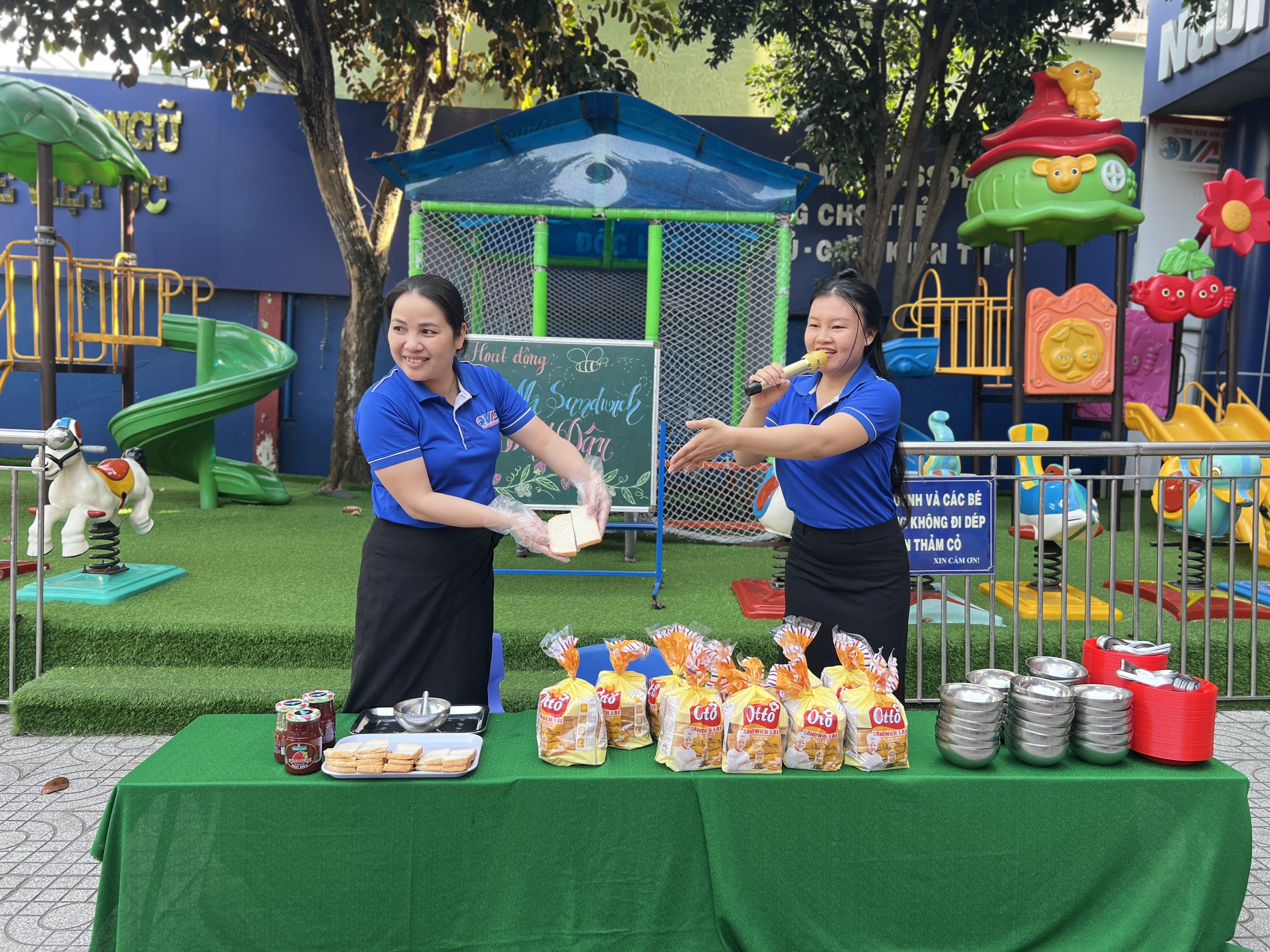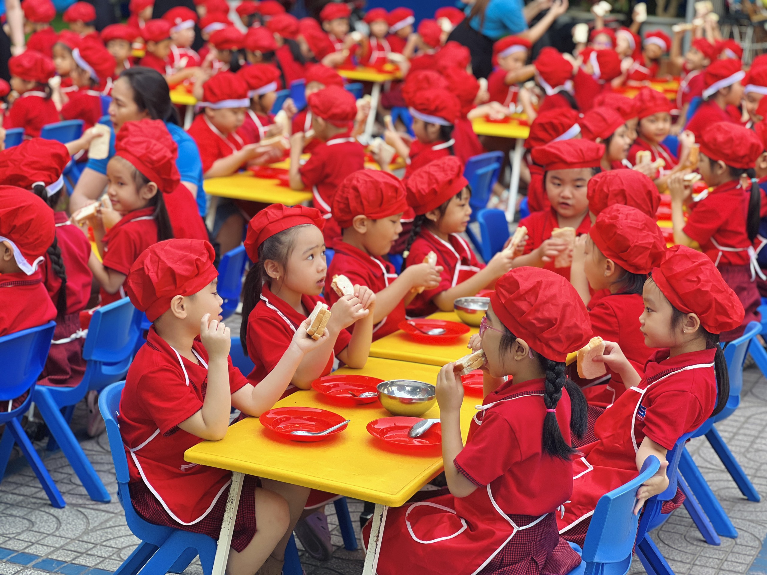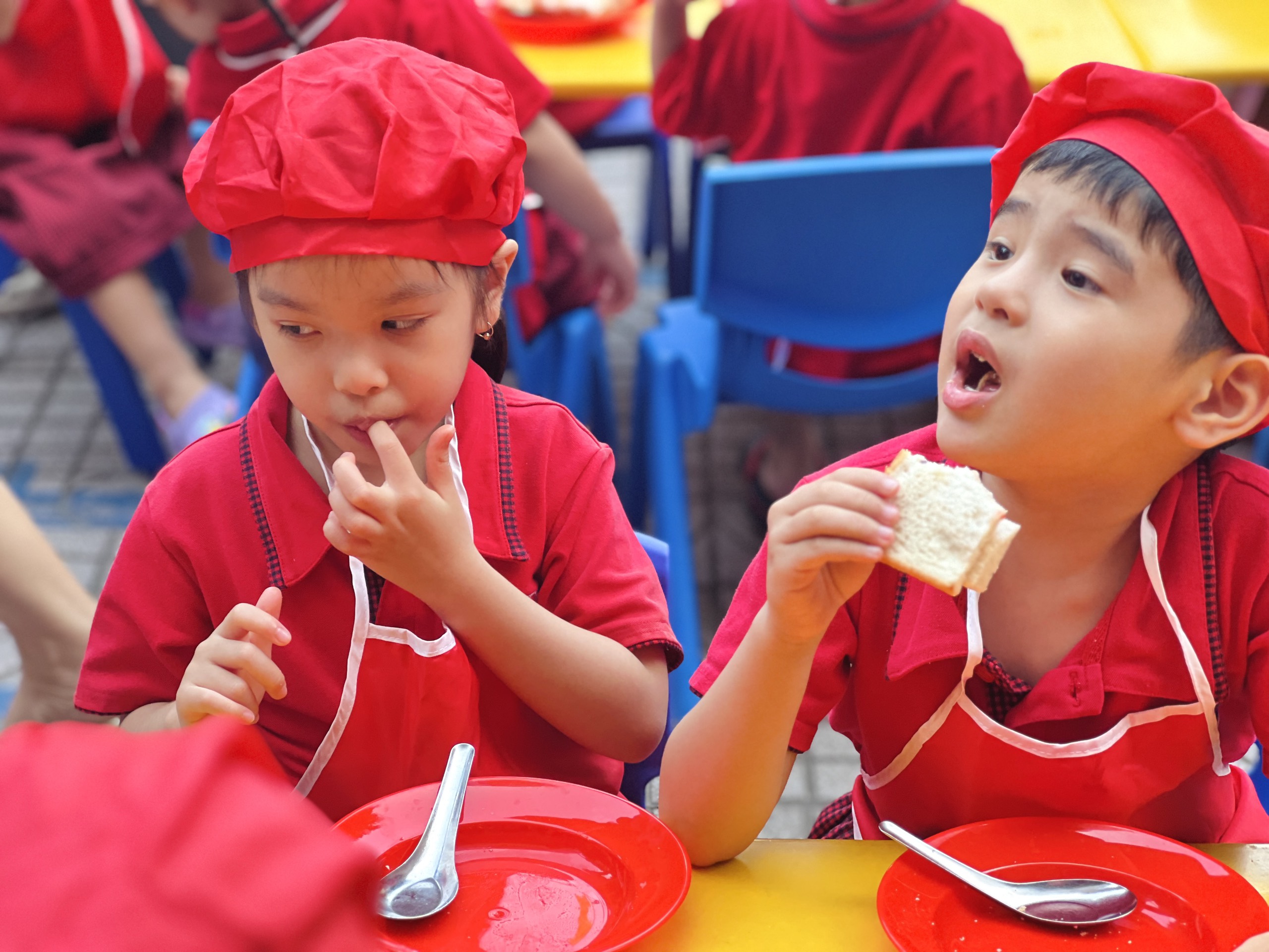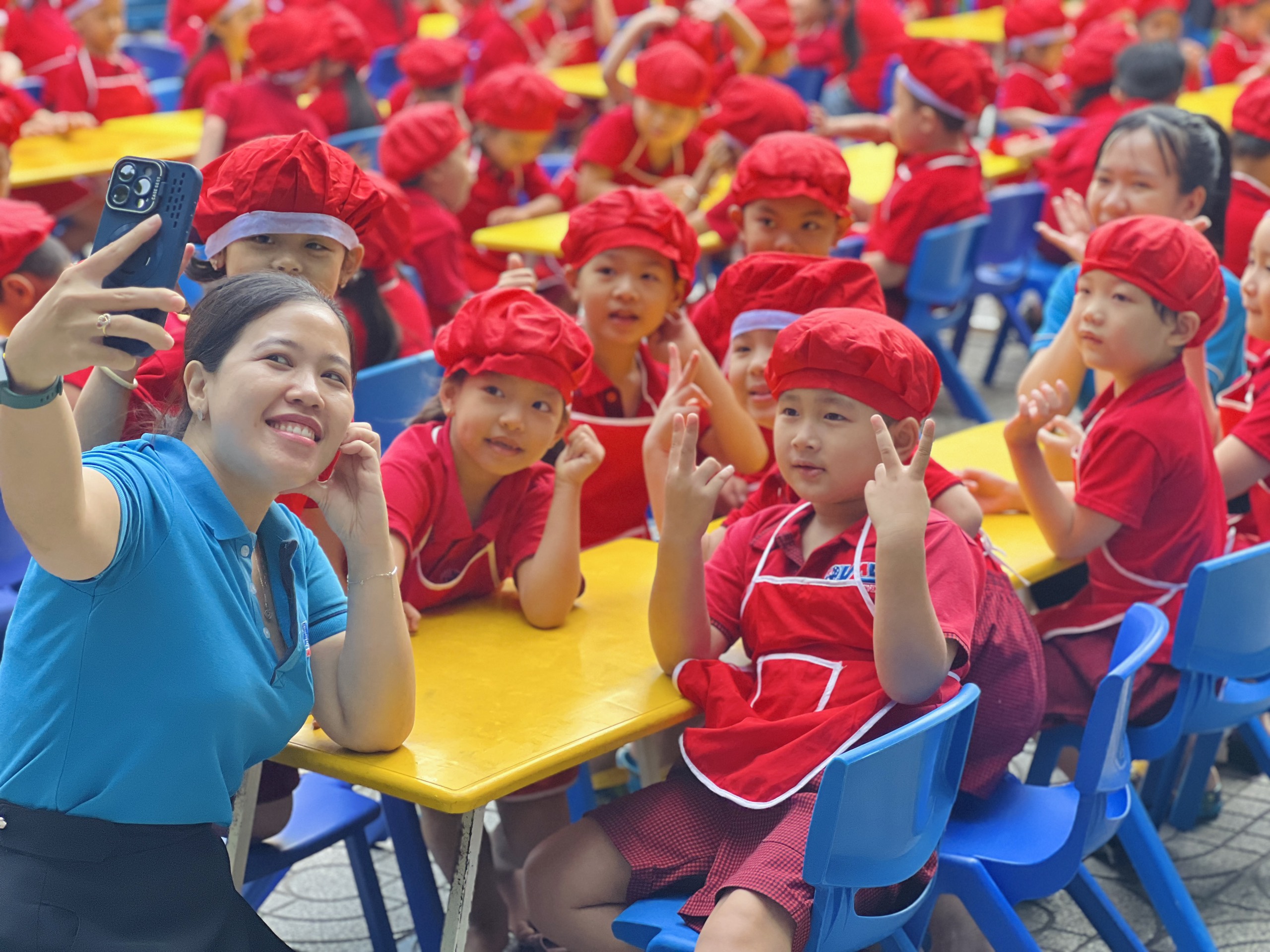 Một buổi trải nghiệm vô cùng thú vị với hoạt động làm bánh mì sandwich phết mứt dâu của các đầu bếp nhí