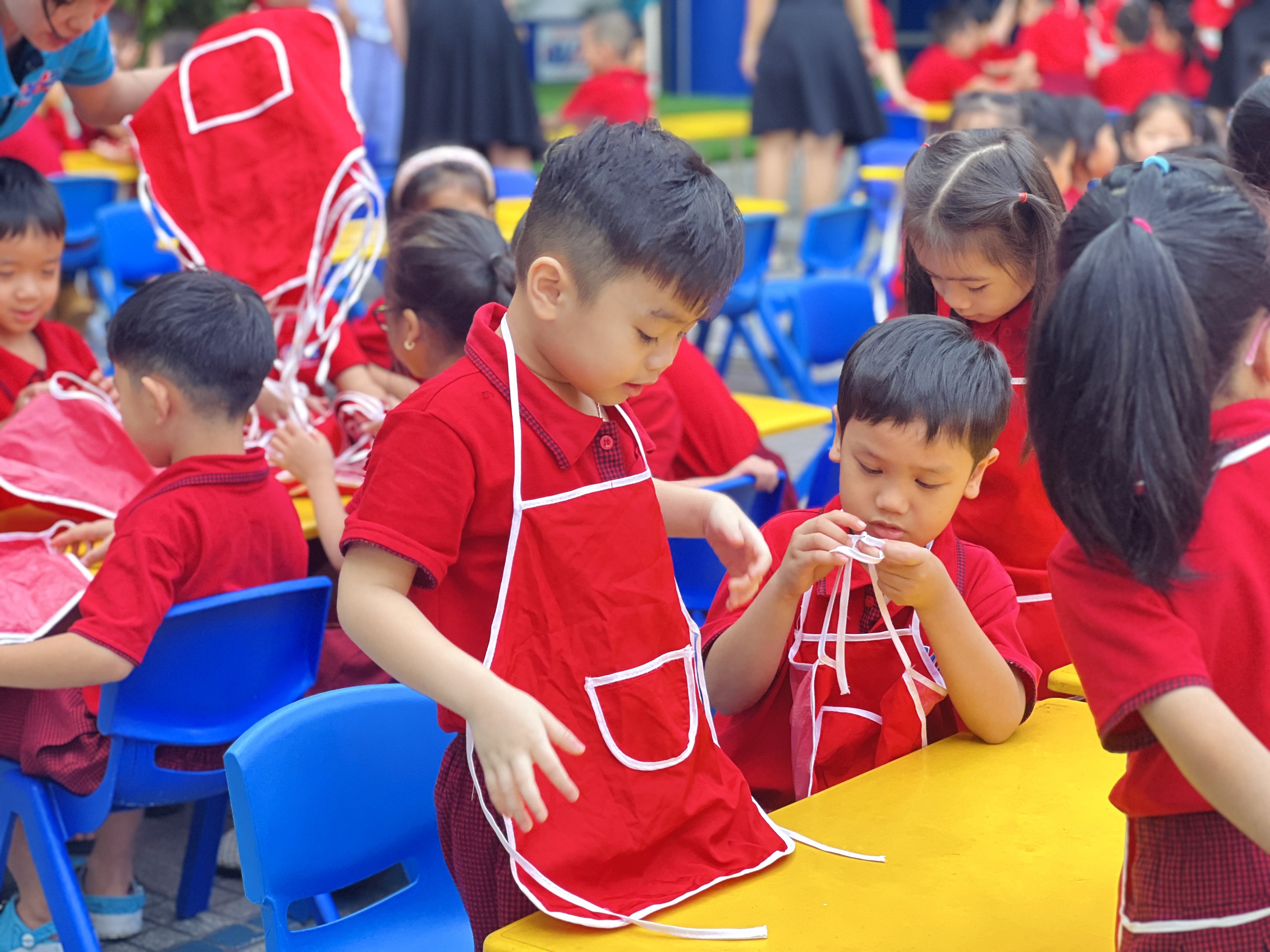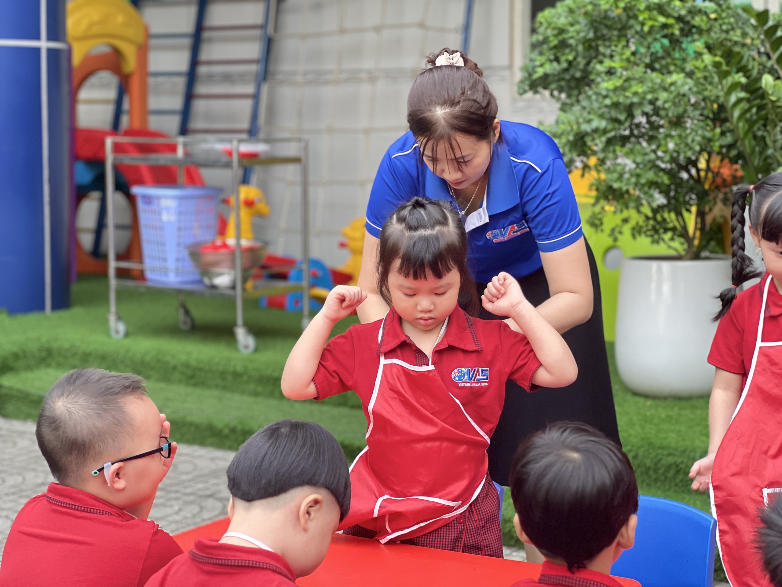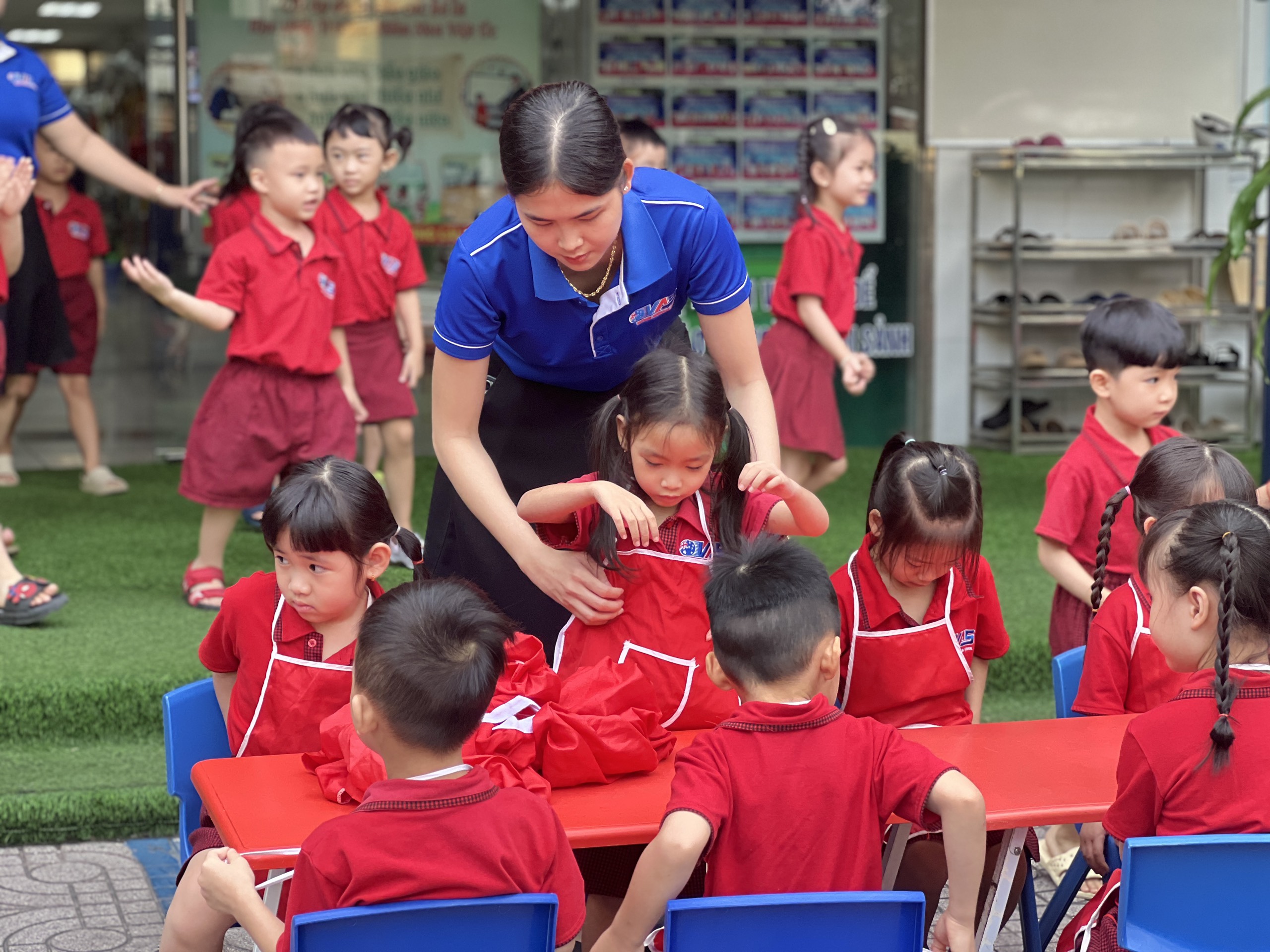 Qua hoạt động này, các con không chỉ học được cách tự phục vụ bản thân mà còn rèn luyện sự kiên nhẫn và đôi tay khéo léo.