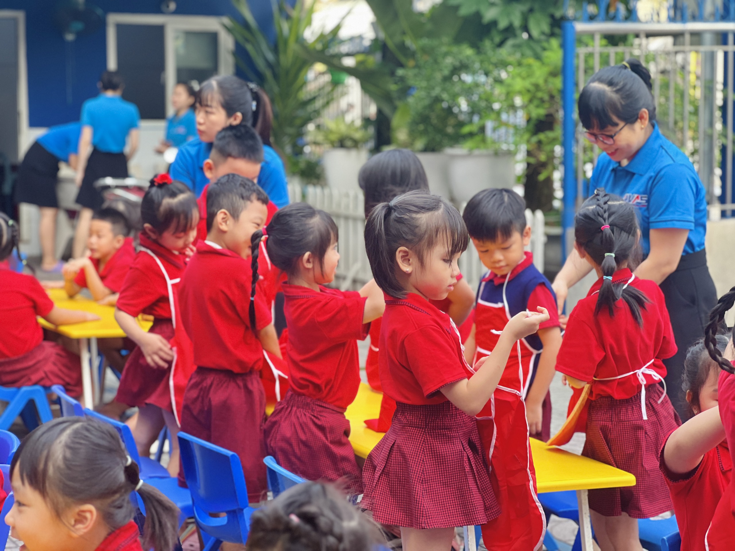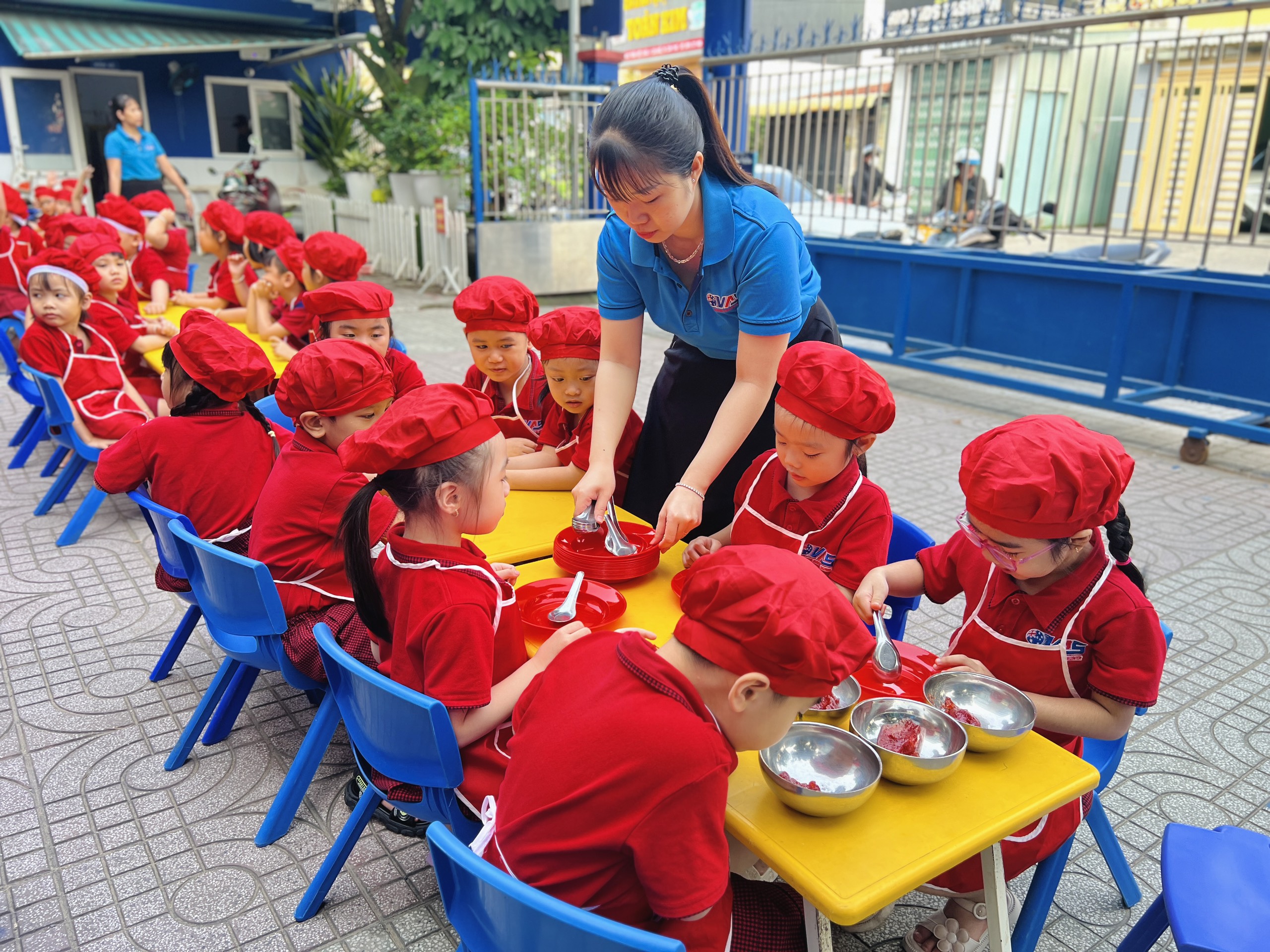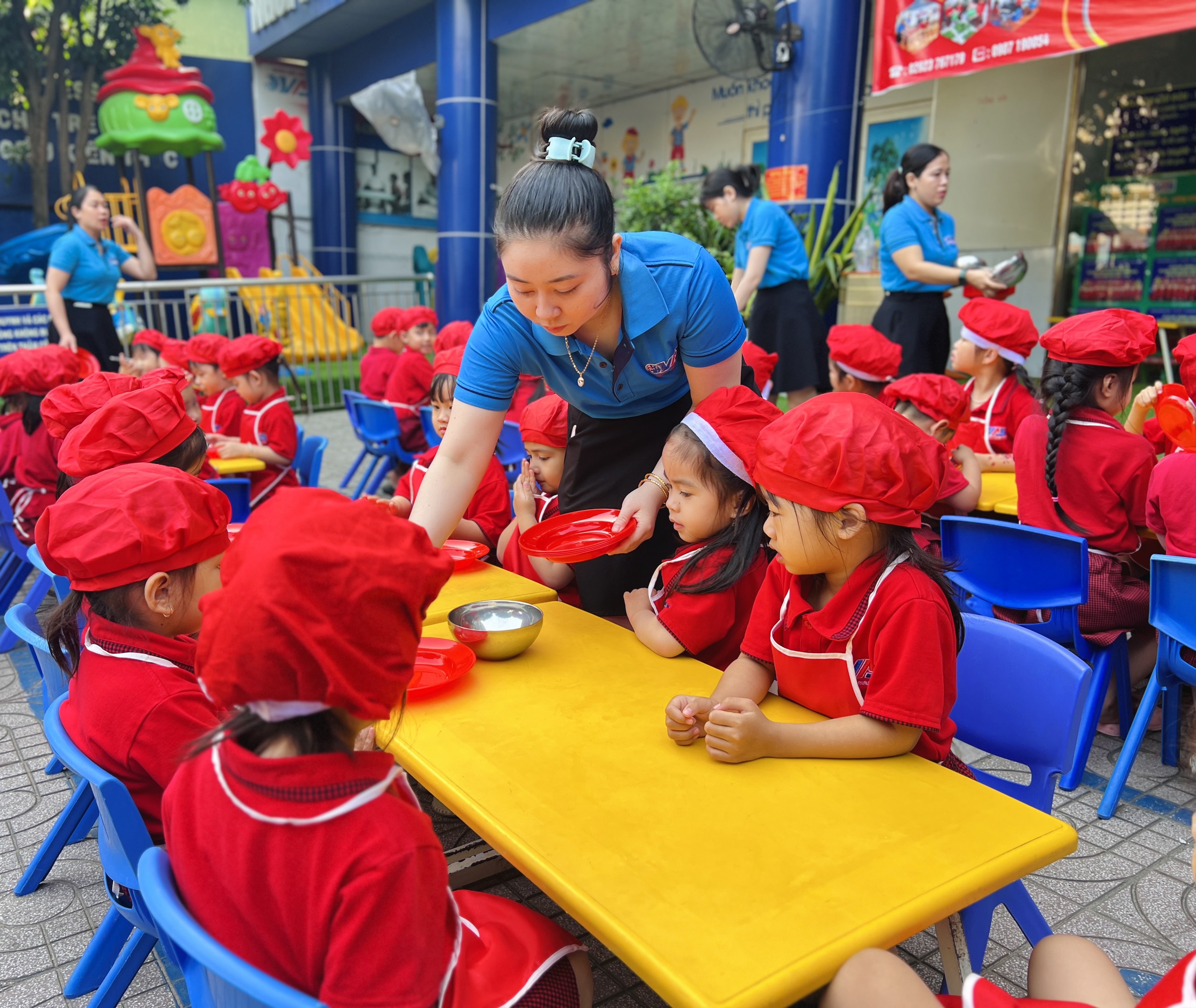 Qua hoạt động này, các con không chỉ học được cách tự phục vụ bản thân mà còn rèn luyện sự kiên nhẫn và đôi tay khéo léo.