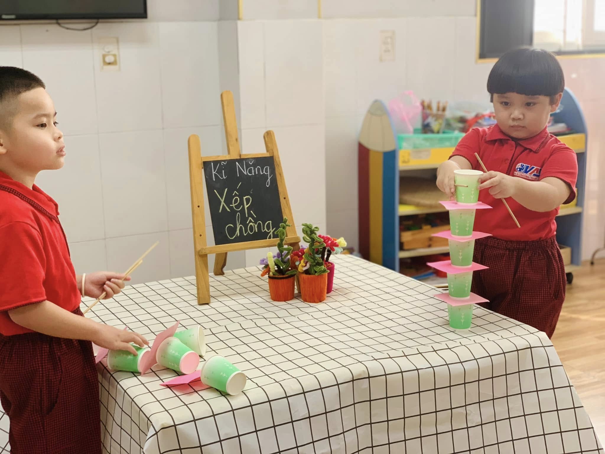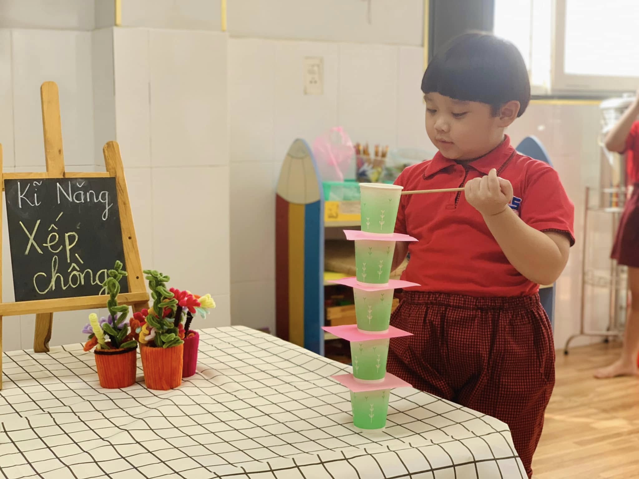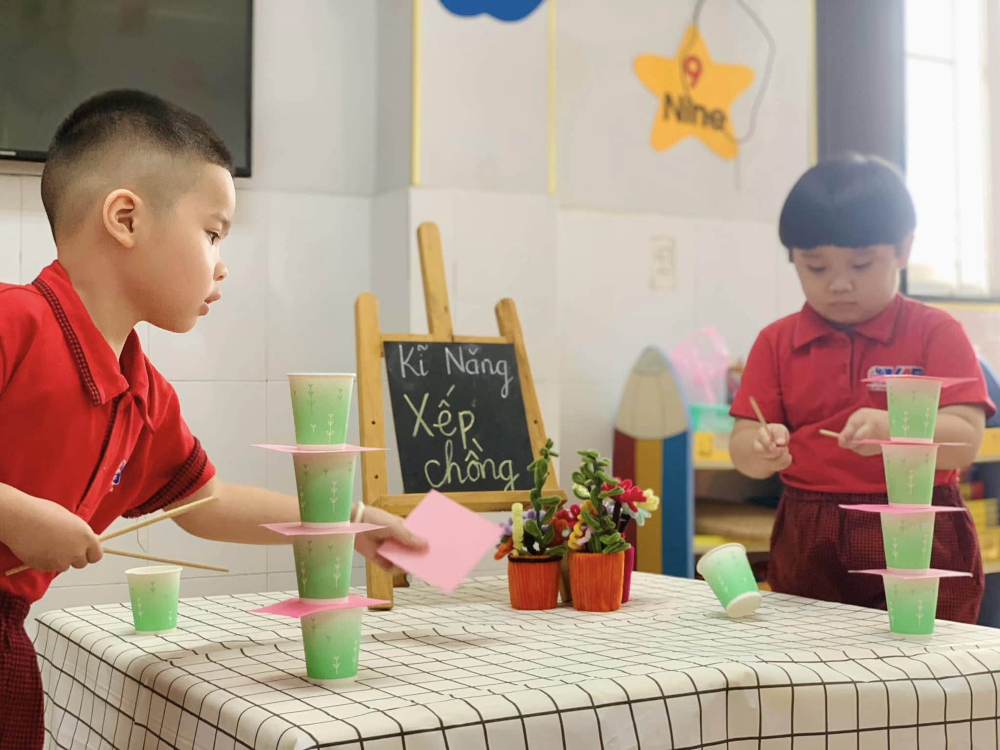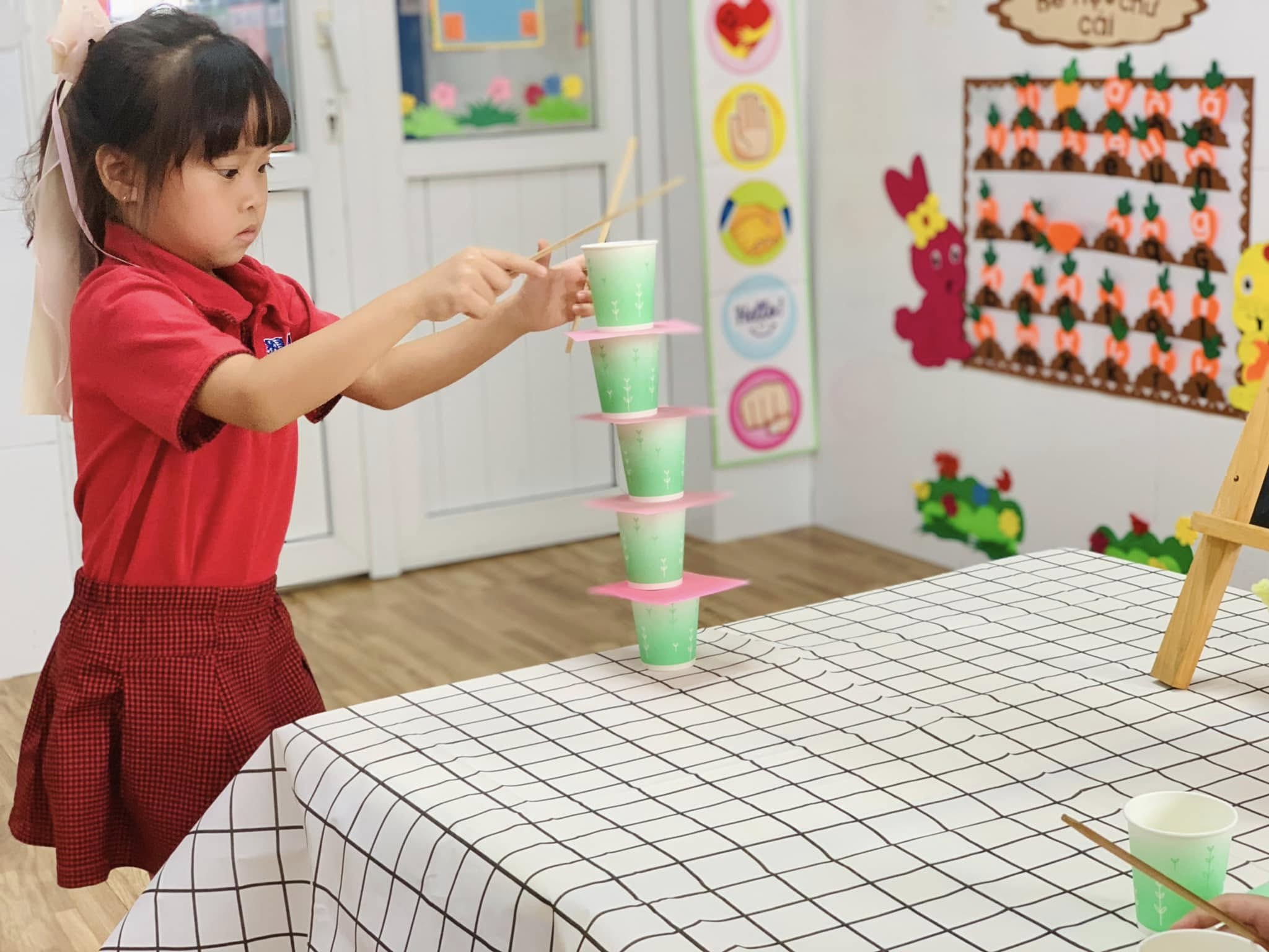 Không chỉ là trò chơi vui nhộn, mà đây còn là một hoạt động rèn luyện sự khéo léo của đôi tay, khả năng tập trung, tư duy sắp xếp và tinh thần kiên nhẫn cho các bé.