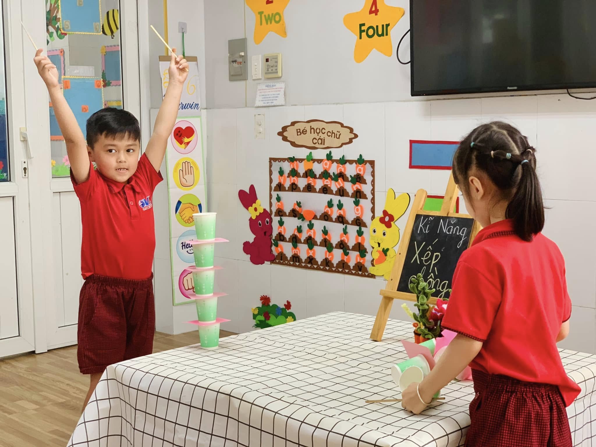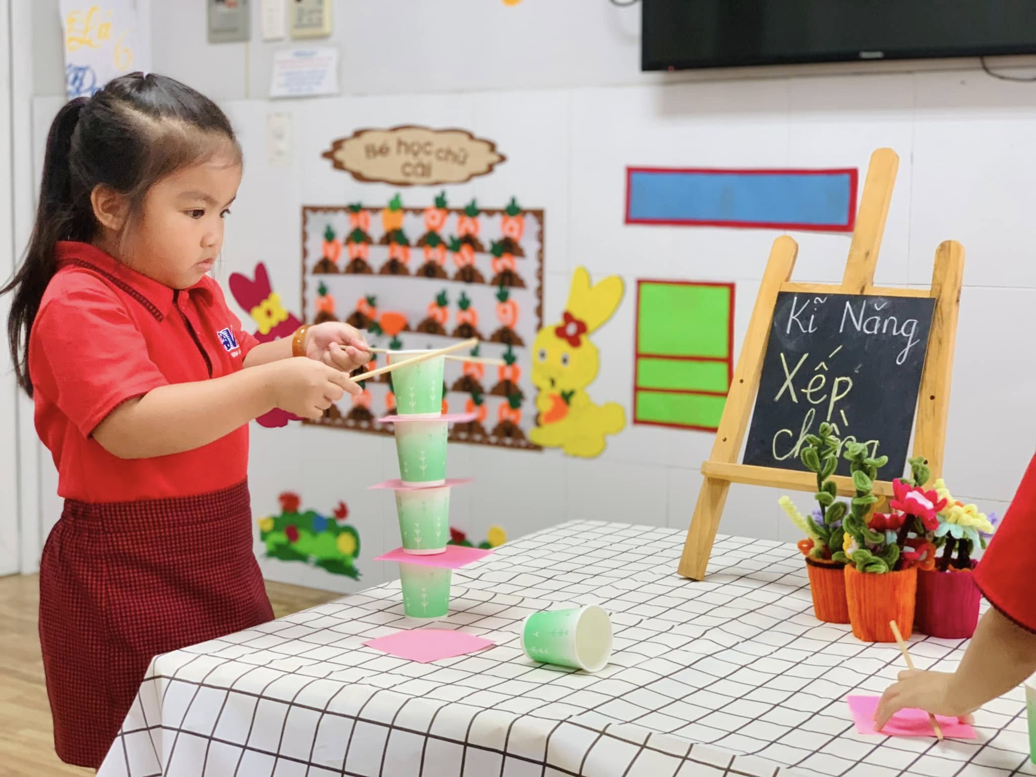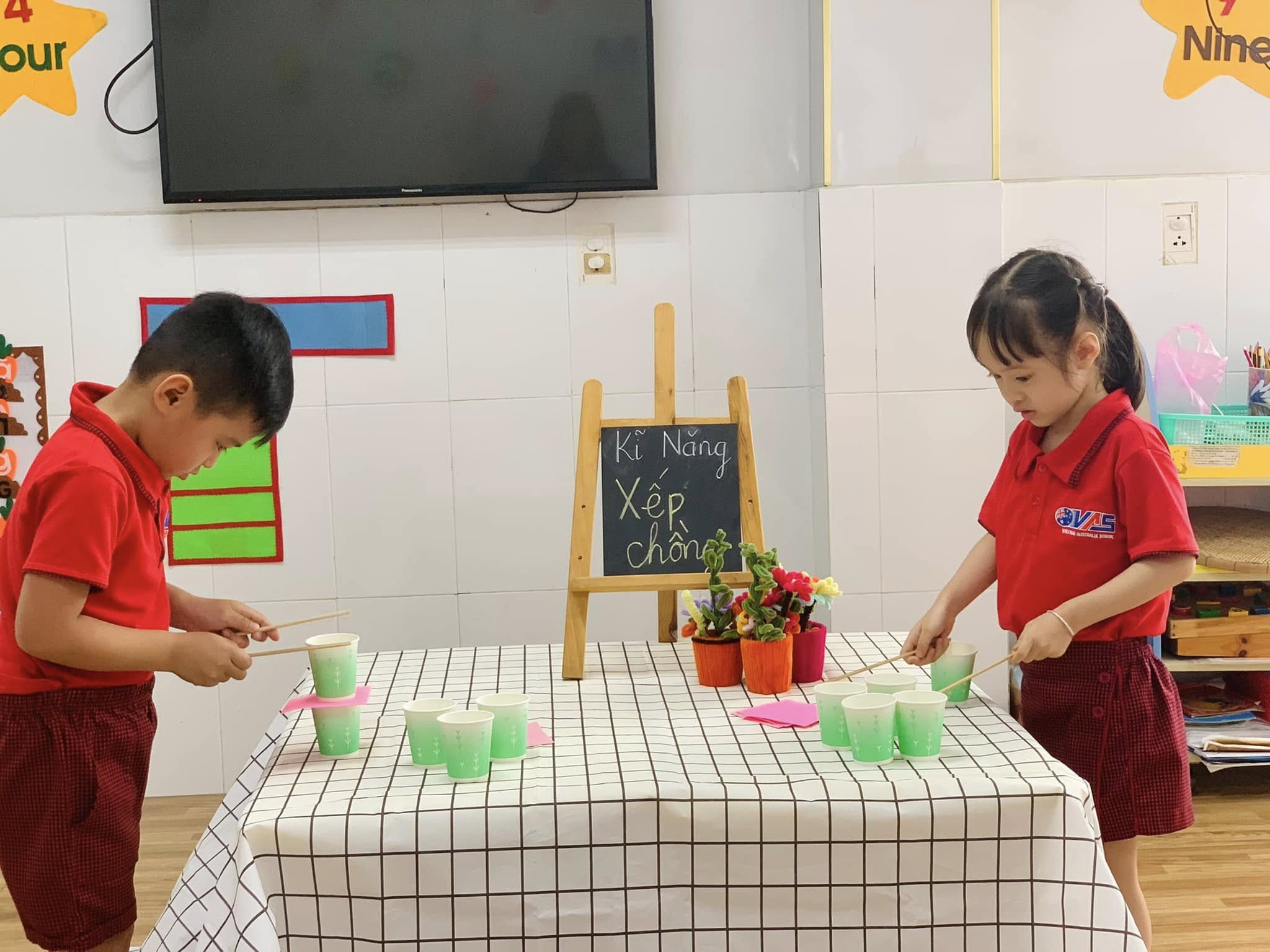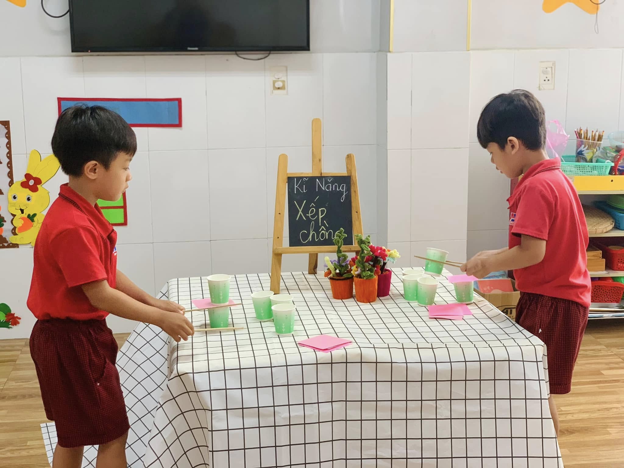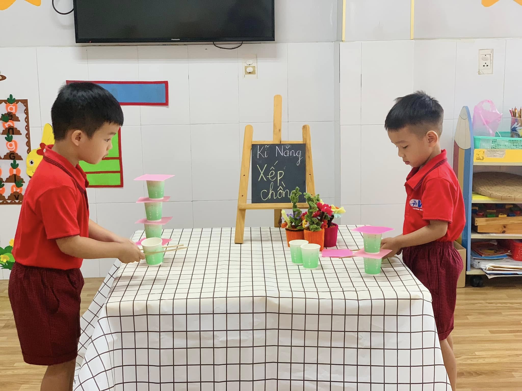 Không chỉ là trò chơi vui nhộn, mà đây còn là một hoạt động rèn luyện sự khéo léo của đôi tay, khả năng tập trung, tư duy sắp xếp và tinh thần kiên nhẫn cho các bé.