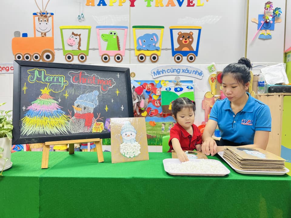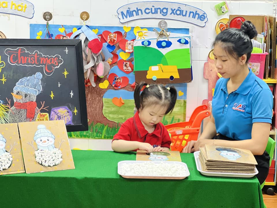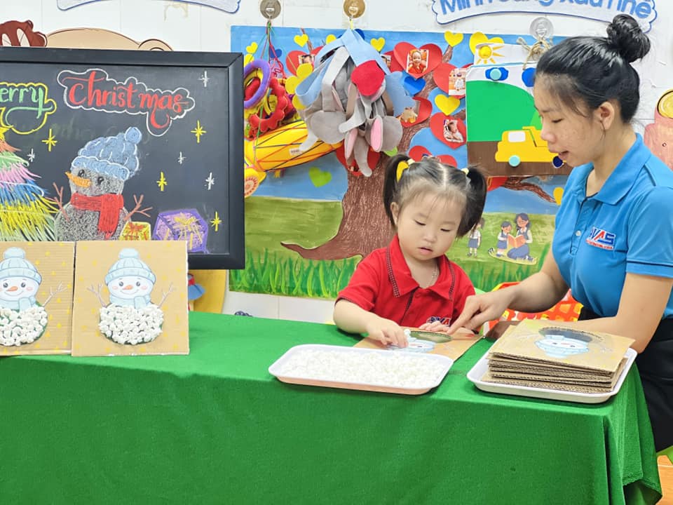 Hoạt động không chỉ giúp bé rèn sự khéo léo, kiên nhẫn mà còn mang đến niềm vui tràn đầy khi tự tay tạo nên món quà Giáng sinh thật ý nghĩa!