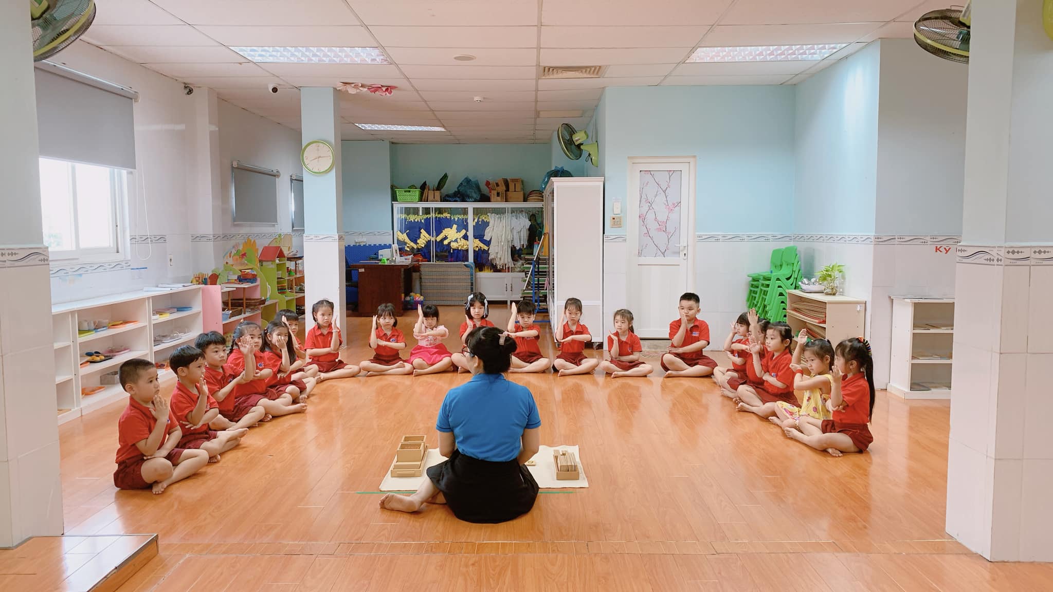 Hôm nay, các bé yêu lớp lá Đoremi được làm quen với bộ giáo cụ “Hệ số thập phân” – một bài học thật thú vị trong lớp Montessori