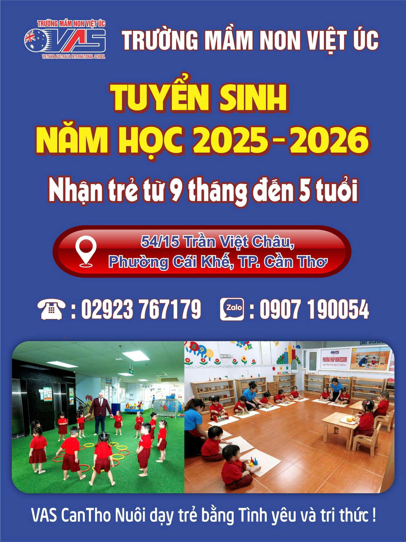 - Địa điểm: Trường Mầm non Việt Úc – 54/15 Trần Việt Châu, Phường Cái khế, TPCT.